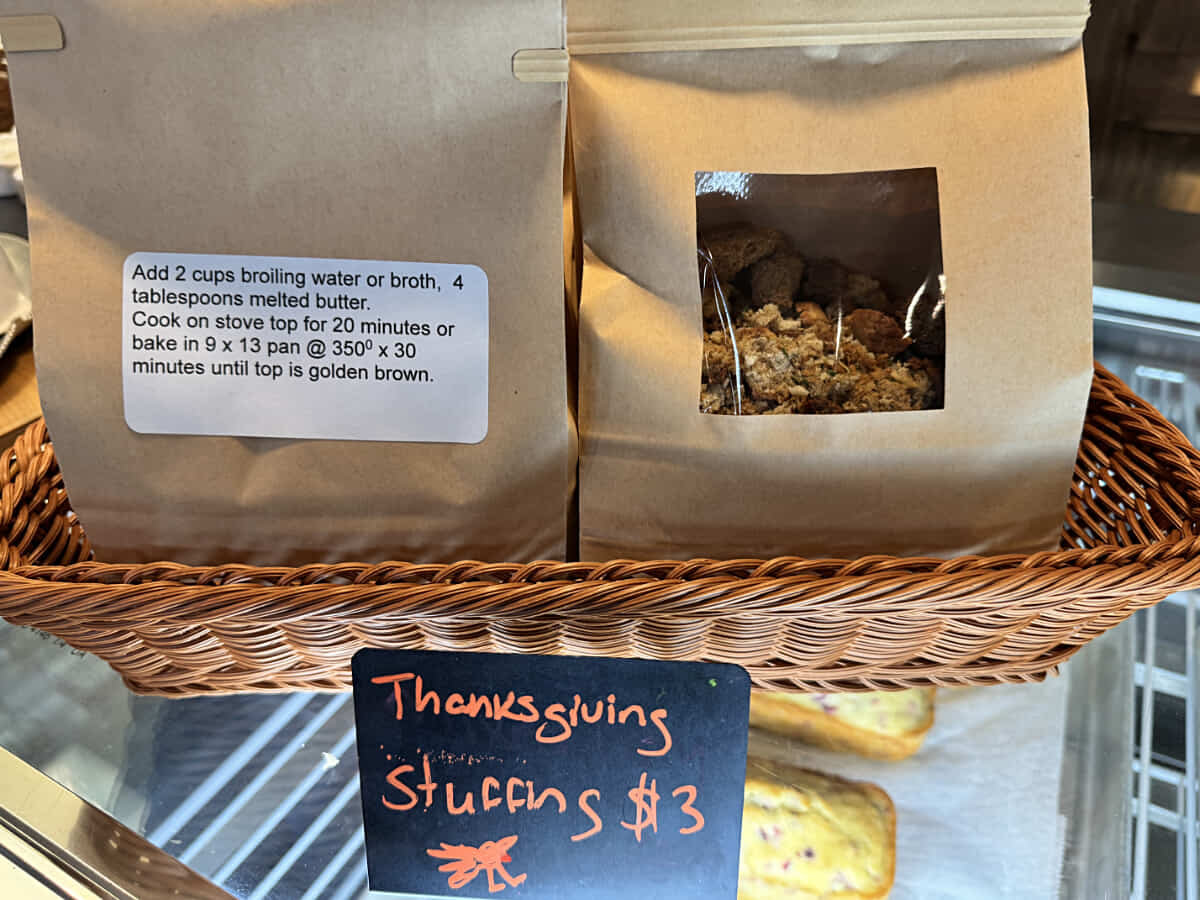 7:56a Step up your game… thanksgiving stuffing from a bakery. Spotted @ Mariposa this morning: