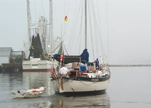 Rabbit, a Westsail32 out of Savannah, departs after backing