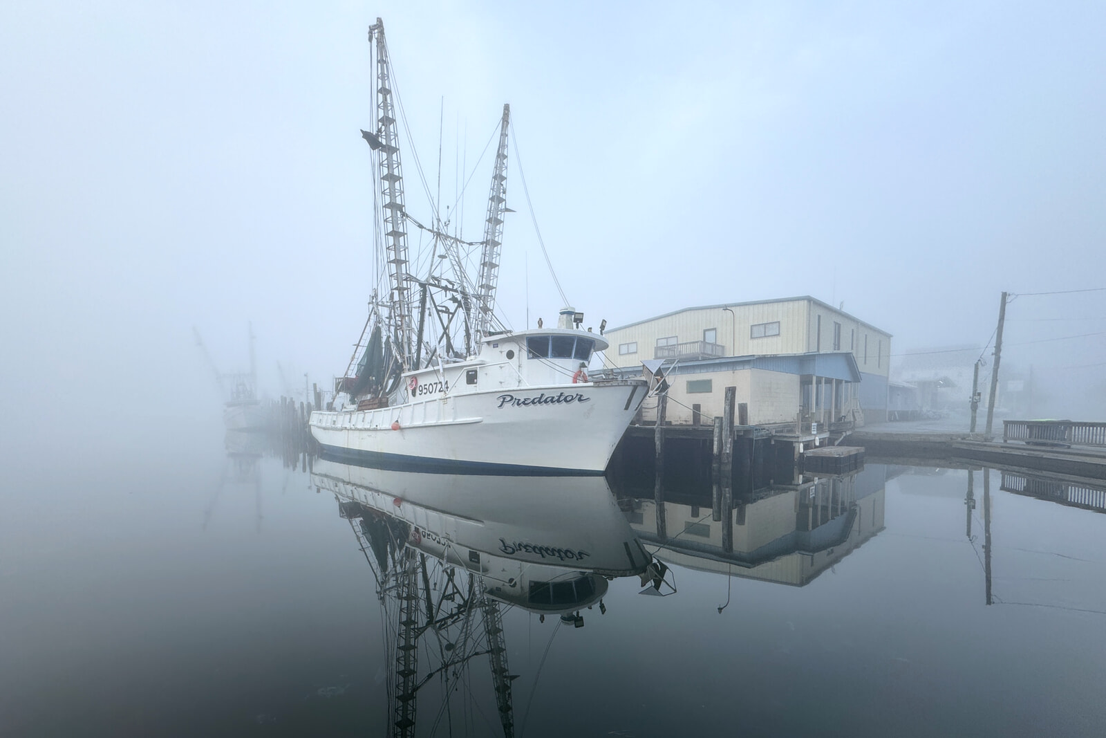 It’s the view from across the creek: A foggy morning at Whittaker Pointe Marina. (Ann Frederick photo)