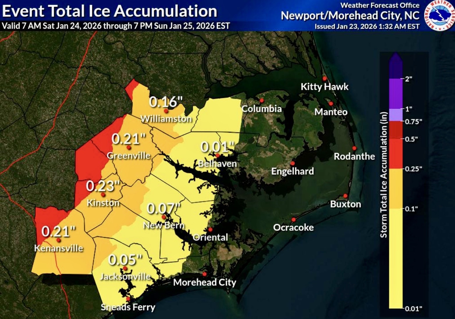 Freezing Rain Forecast Still Staying West Of Oriental | January 23, 2026