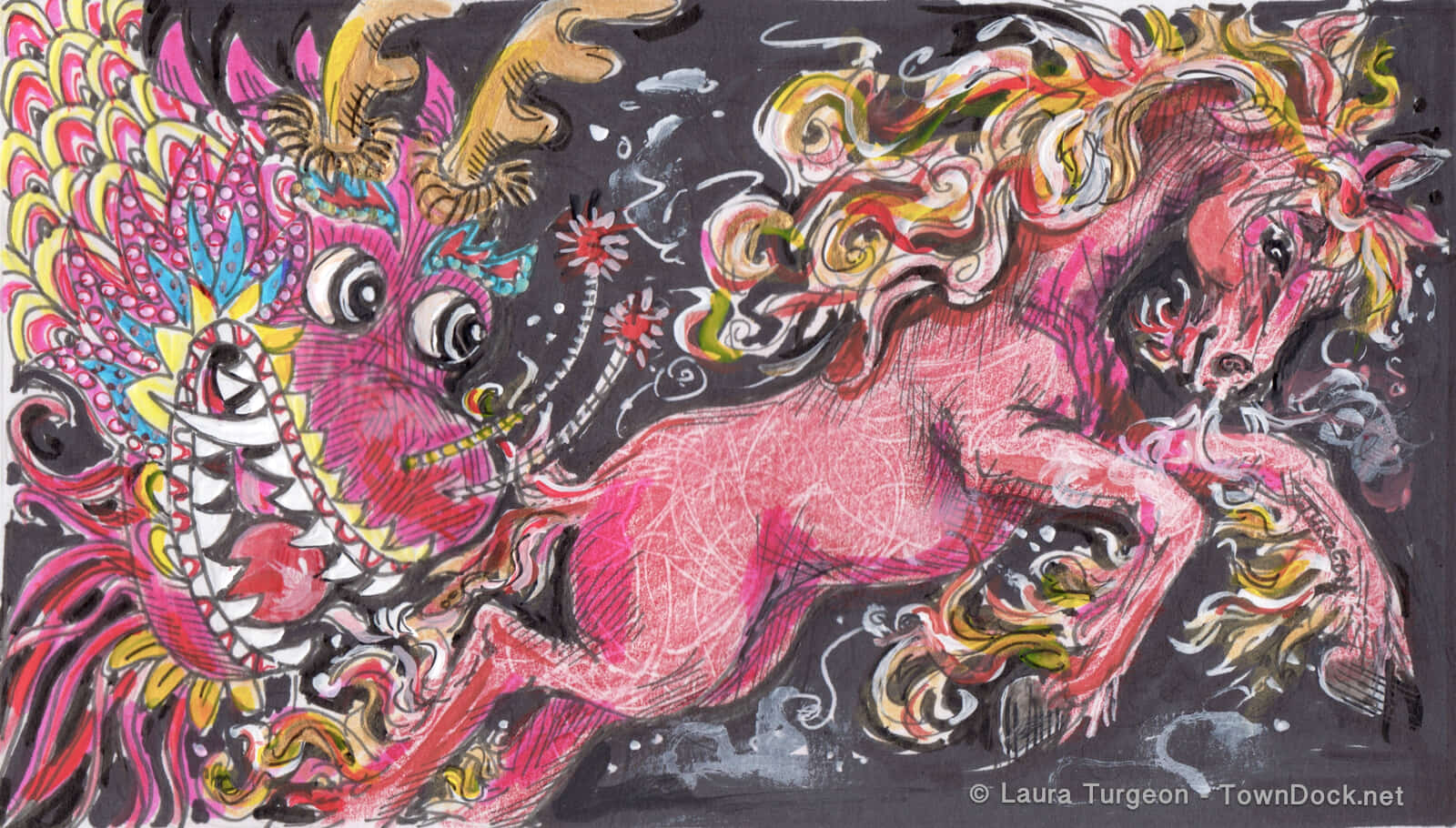 Tuesday Feb 17 marks the 2026 Chinese New Year, celebrating the year of the Fire Horse. Artist Laura Turgeon marks the new year with this drawing. The year of the Fire Horse symbolizes energy, freedom, and rapid, forward momentum. In Oriental, celebrations for Chinese New Year include a Dragon Run on Hodges Street – it’s this Saturday Feb 21 at 2p.