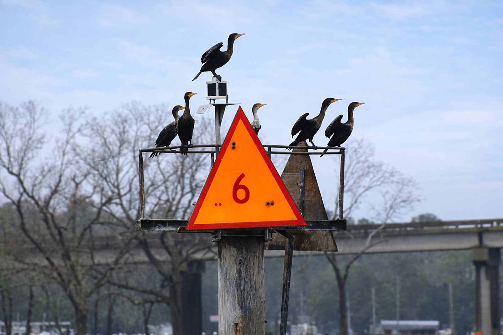 Marker 6 is supposed to look like this. It’s gone. Just a stub remains. Something big must have hit it – the piling is (was) a large metal pipe. Click photo for more views… of the stub… and where it is on a nautical chart.
