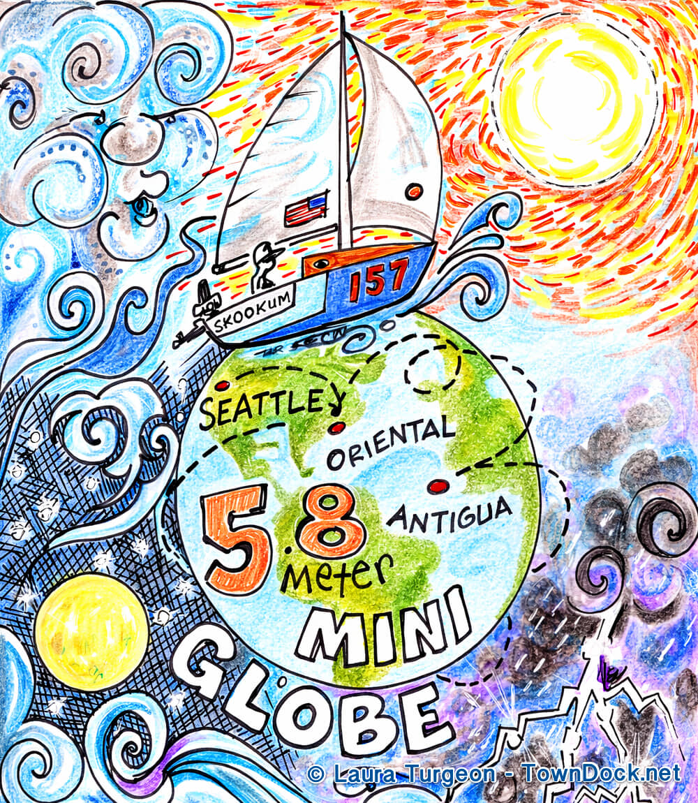 Josh Kali completed the MiniGlobe round-the-world race Tuesday, finishing in Antigua (where the race started) just over a year ago. He sailed 24,000 miles on his 19 ft boat, Skookum.