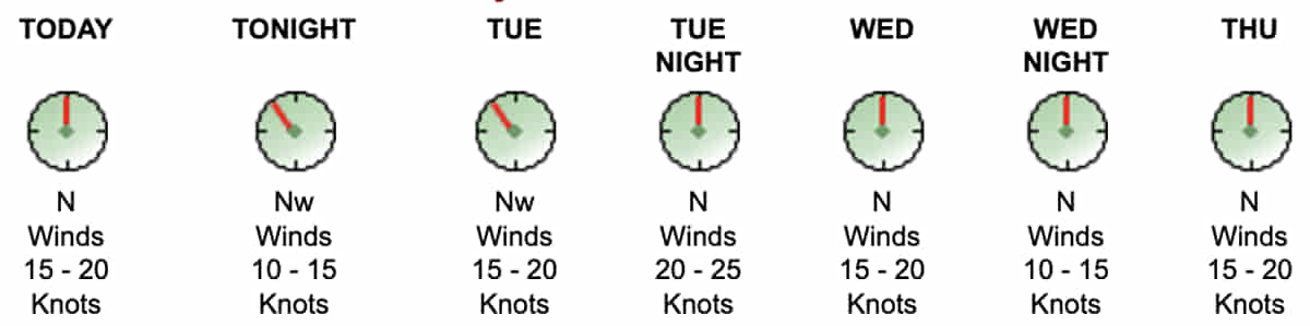 The winds begin tonight, then Thursday ~ Friday back to 20-25 northeast winds. Water levels will be rising (again).