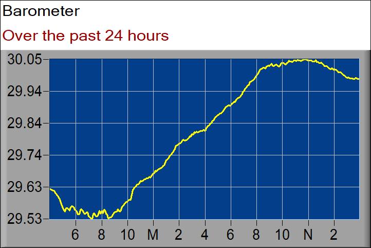 4:45p The barometer is diving. “Interesting” weather is incoming.