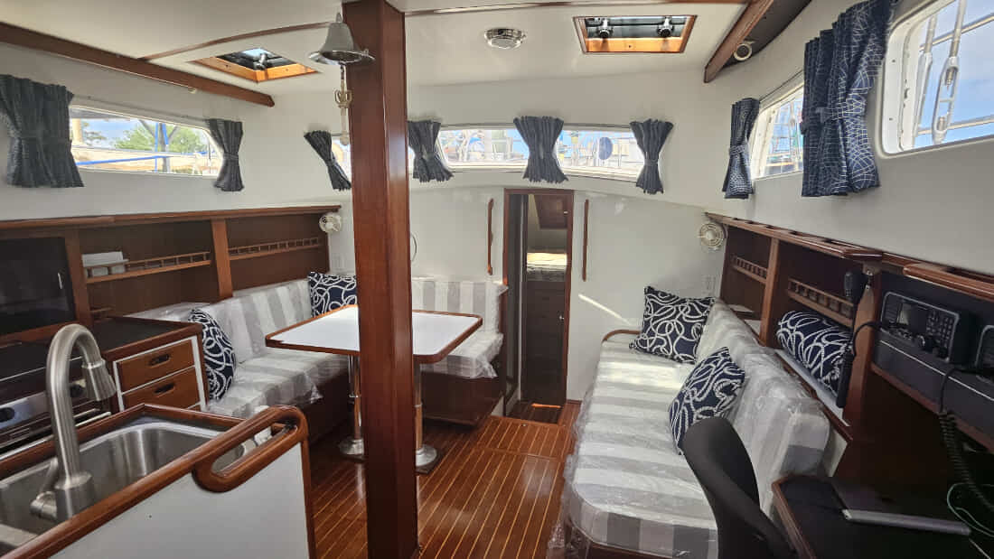 Wonder, a Wellington 44, Hull #5 of 9. Designed and manufactured by Bill Wellington, in Jacksonville FL... Wellington produced world class sailing custom finished yachts from 44 to 57 ft. Latest survey 2023 - available to serious buyers. Wonder is a one of a kind, Cutter Rigged Wellington 44, built in 1980 and totally refit between 2017 and 2023. Her Deck Salon, modified full keel w/centerboard, and being rigged for single-handed sailing with all lines led to the cockpit, she can take you anywhere safely in style and comfort. She is hull #5 of 9. The Wellington 44s are built with classic lines and heavy weather structure. Her deck salon, moderate draft, and balanced sail plan are designed and built for coastal cruising and extended offshore passages. The spacious interior features 2 ensuite cabins to include showers and heads, a midship ventilated galley with 3 12V/110V refrigerator/freezer and generous storage, making her well-suited for liveaboard sailors and/or long-distance voyaging. For more information about s/v "Wonder", go to: https://www.curtisstokes.net/center-cockpit-for-sale-wellington-44-wonder-2841567.html Or Call Jim Edwards at 252 474 6000 to schedule an appointment. |