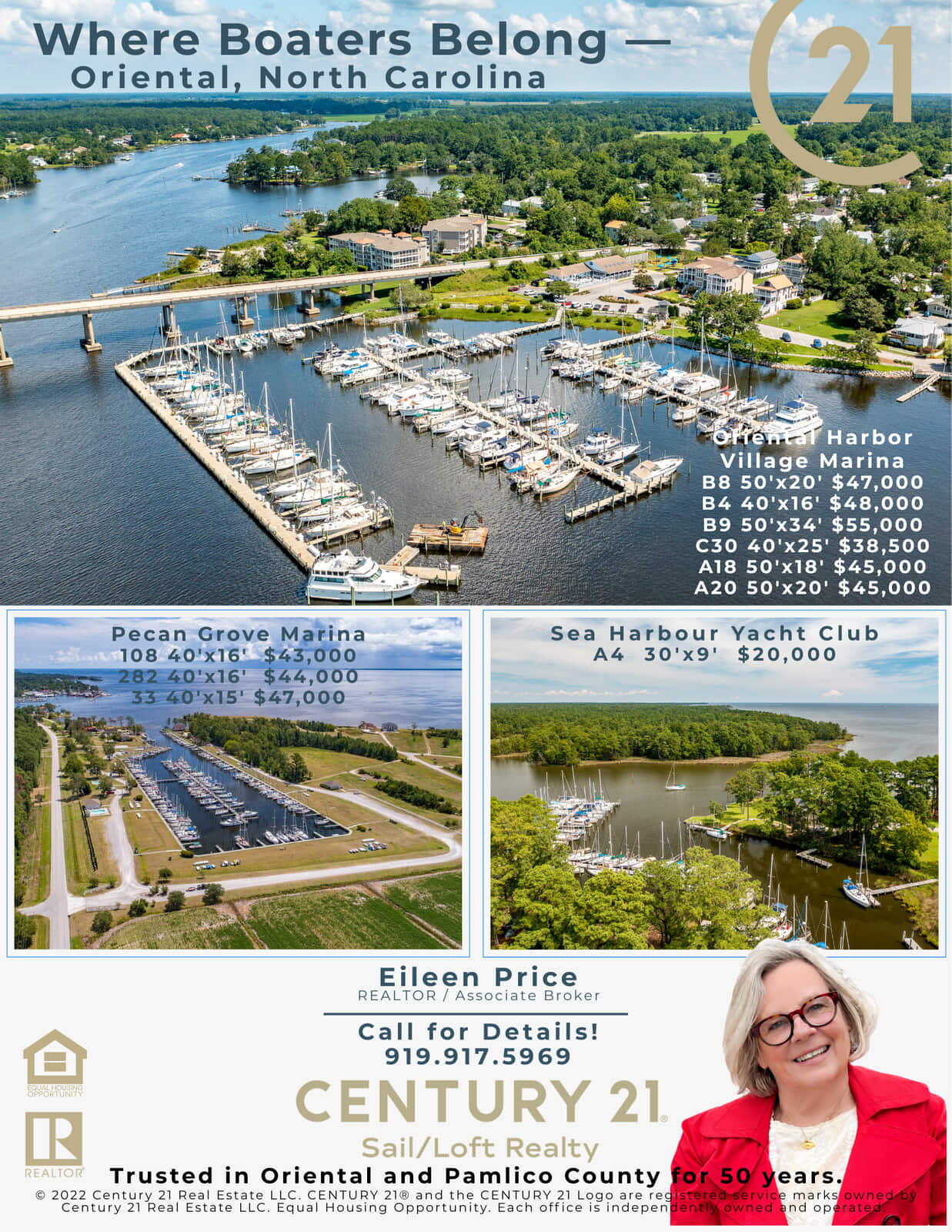 Call Eileen Price, RealtorĀ®/Associate Broker at 919-917-5969 for more information. Visit our website at www.sailloftrealty.com to view more details about these listings. |