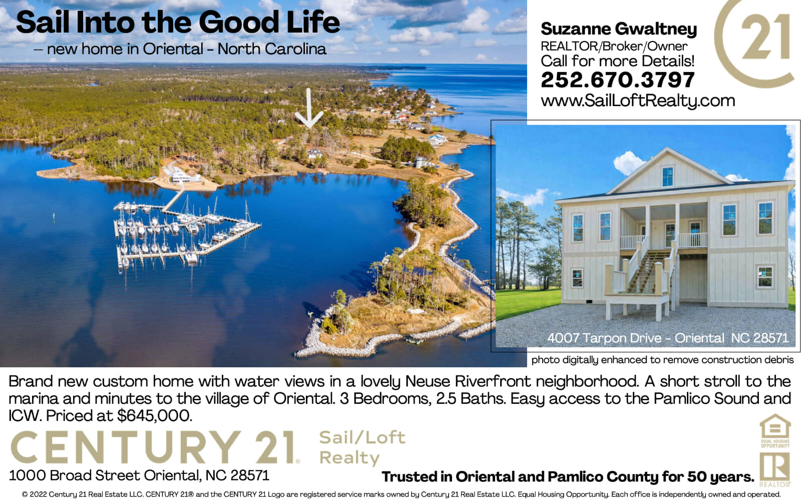 Call Suzanne Gwaltney, CRS, SRES, REALTORĀ®/Broker/Owner at 252-670-3797 to schedule an appointment. Visit our website at www.sailloftrealty.com. |