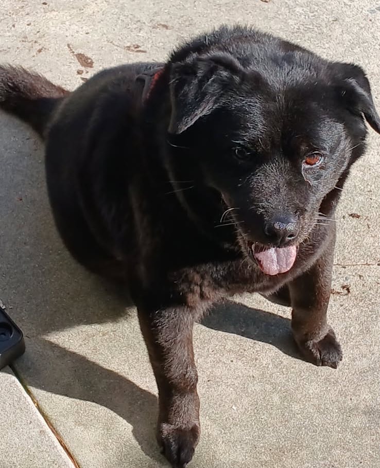 Logan a mixed breed, medium size, furry, black, senior dog is missing. Logan has wandered off. He has never left his home in Buccaneer Bay West before. \