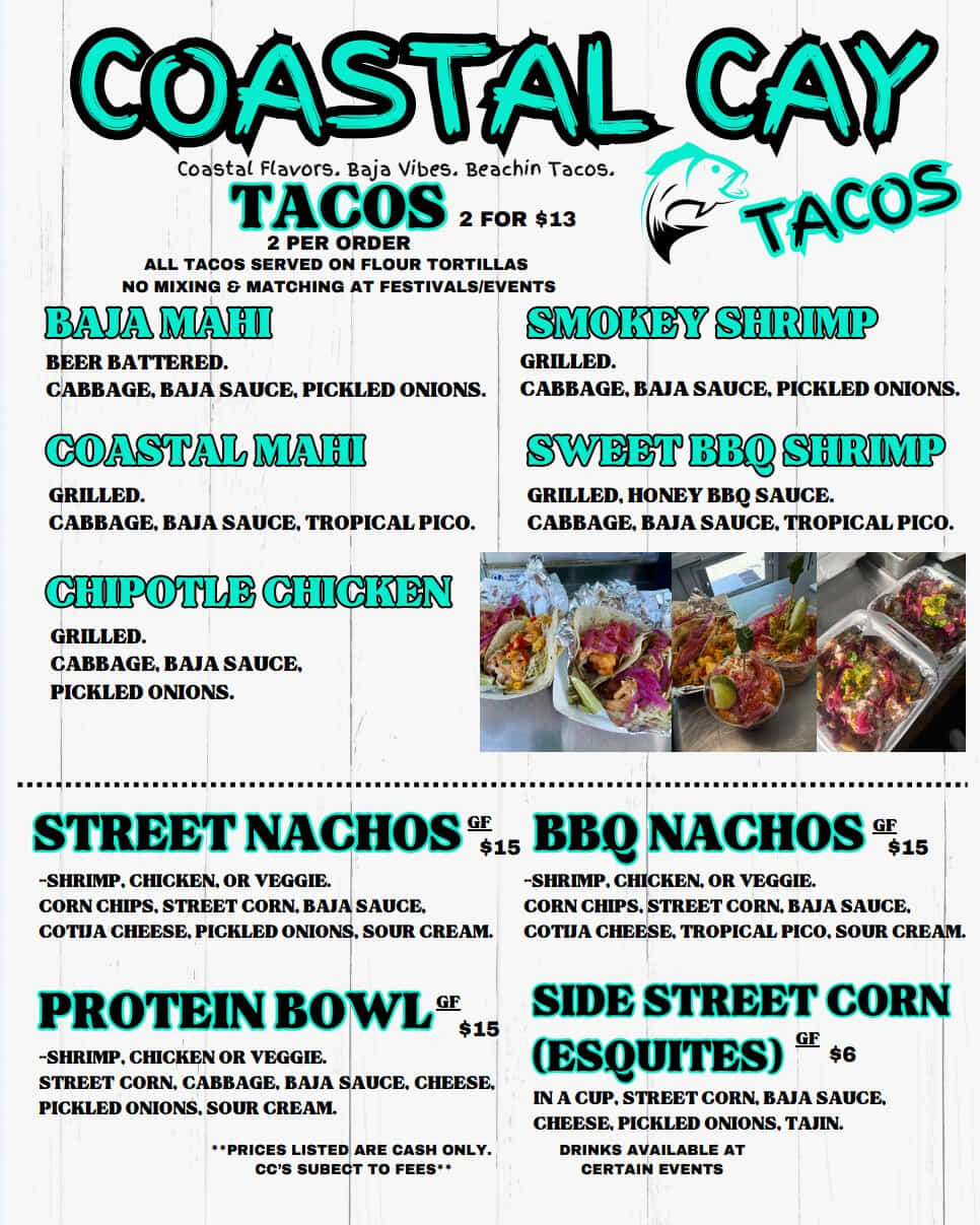 Thur 10/23: new food truck – Coastal Cay Fish Tacos, 4-8p, click here for menu