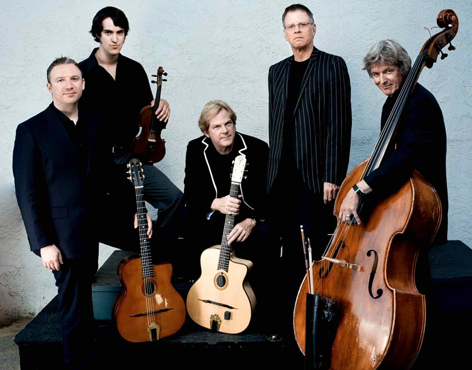 John Jorgenson, a longtime touring guitarist for Elton John, is a pioneer of the American gypsy jazz movement and renowned for his virtuosic technique and stylistic versatility. He leads the John Jorgenson Quintet, consisting of five musicians: John Jorgenson (acoustic guitar, bouzouki, clarinet, vocals), Casey Driscoll (jazz violin), Rory Hoffman (guitar/piano, accordion), Simon Planting (bass), and Rick Reed (percussion).