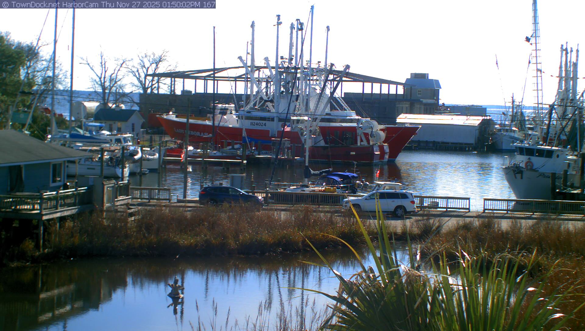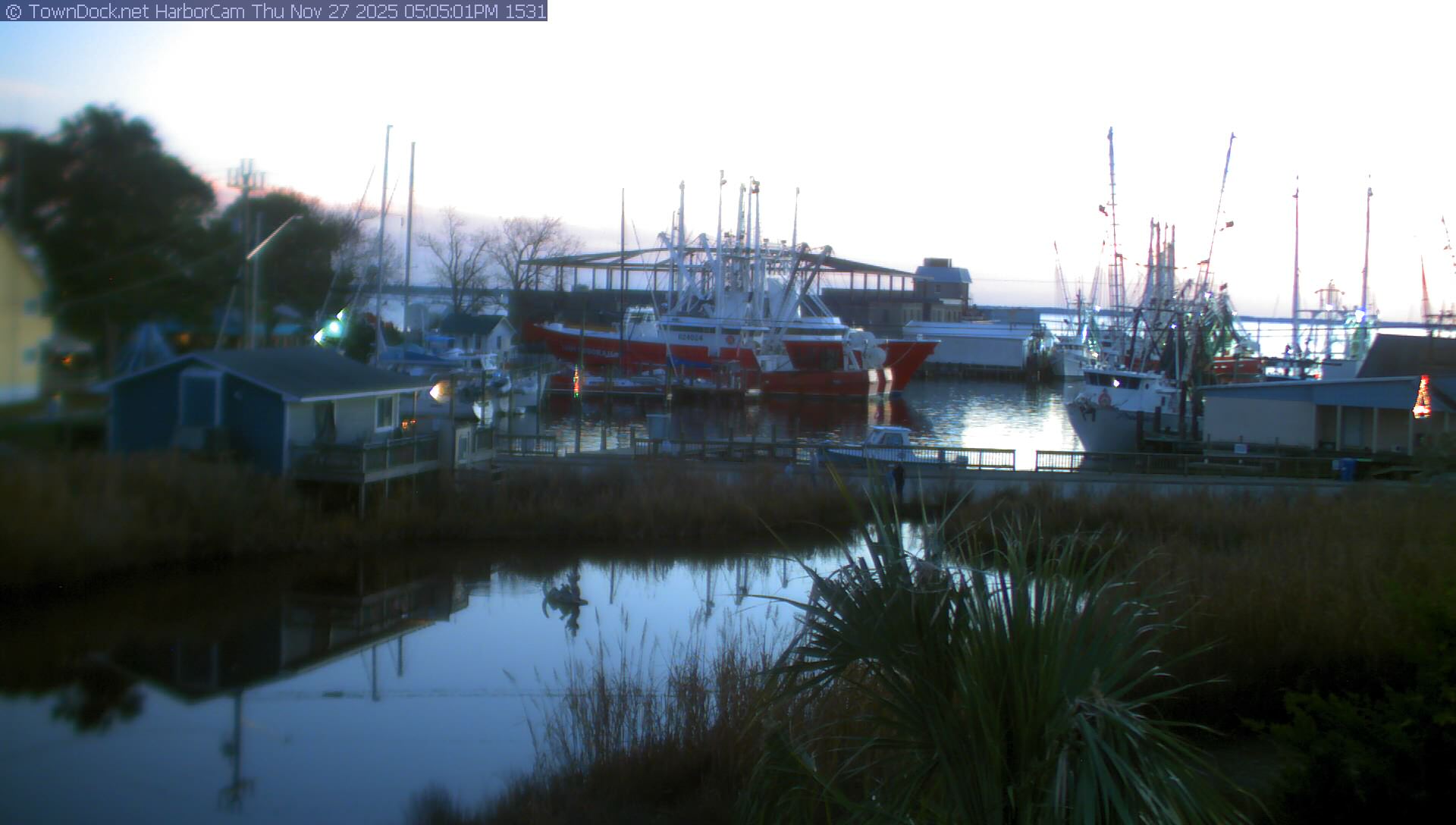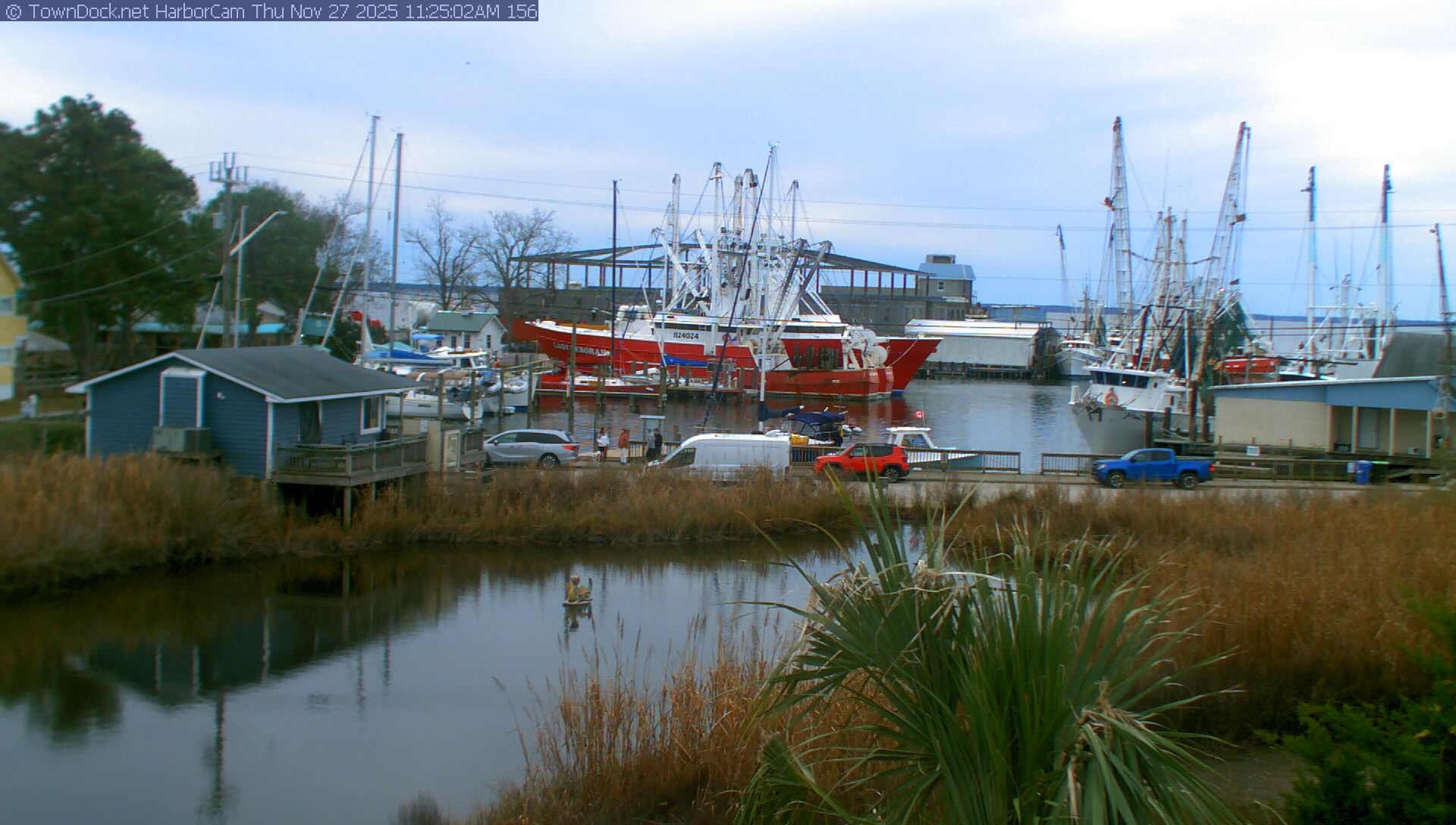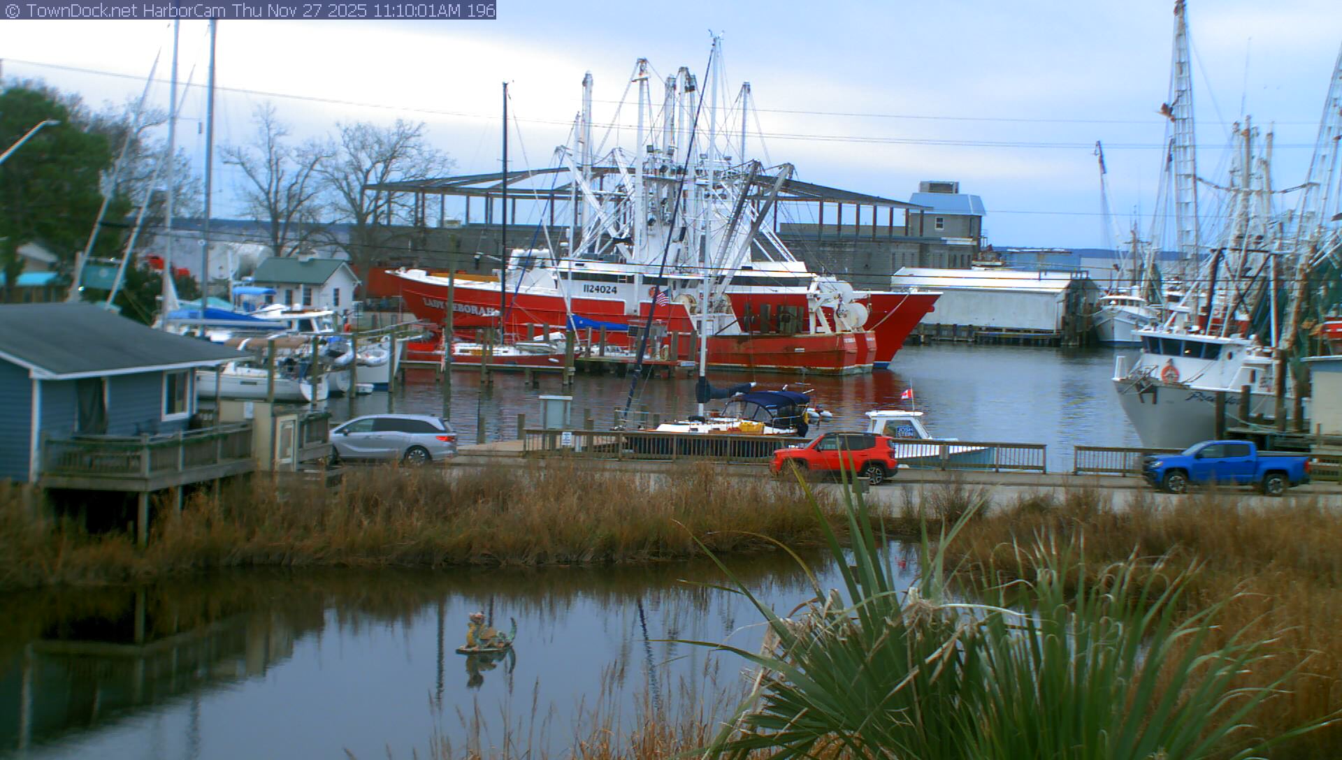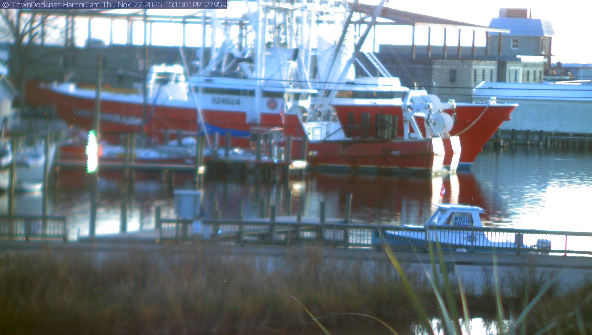 HarborCam takes a new picture of the Oriental harbor every five minutes from dawn til just before dusk. Click on the image to see a larger version. Once you see that larger version, you can click (see arrow at right) to go back in time and see recent photos. Harbor Cam currently takes photos from 6:00am to 5:00pm.