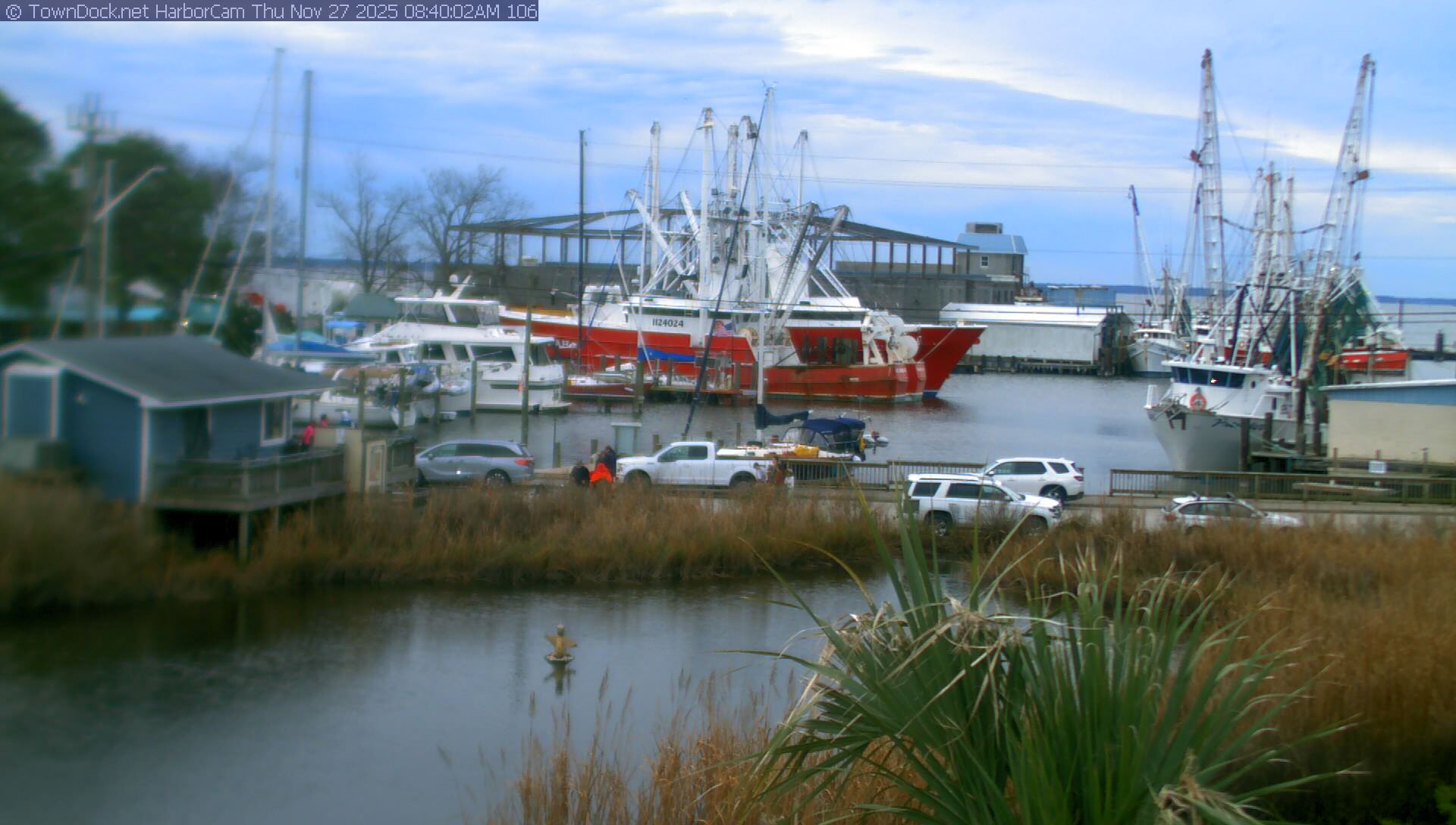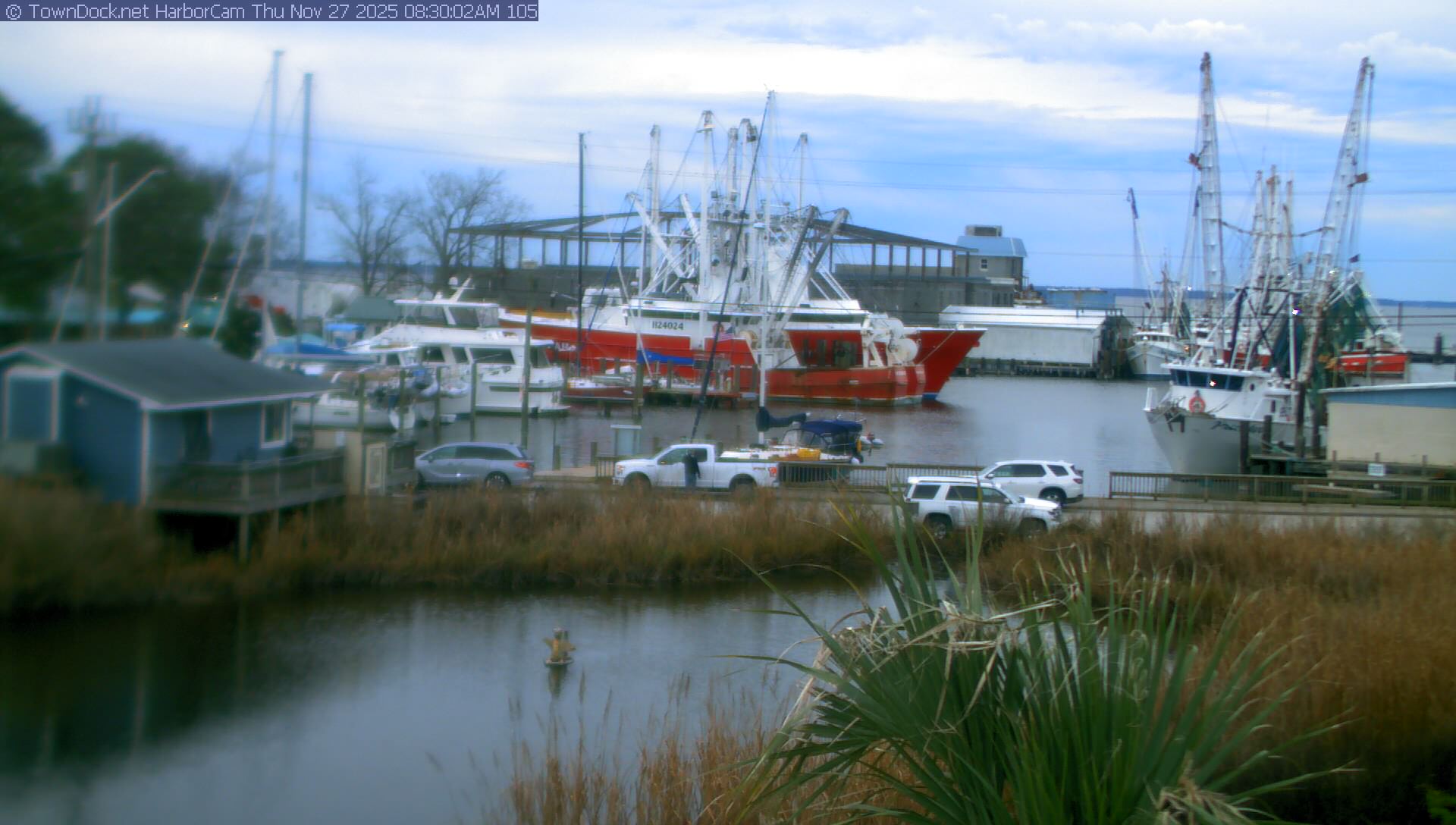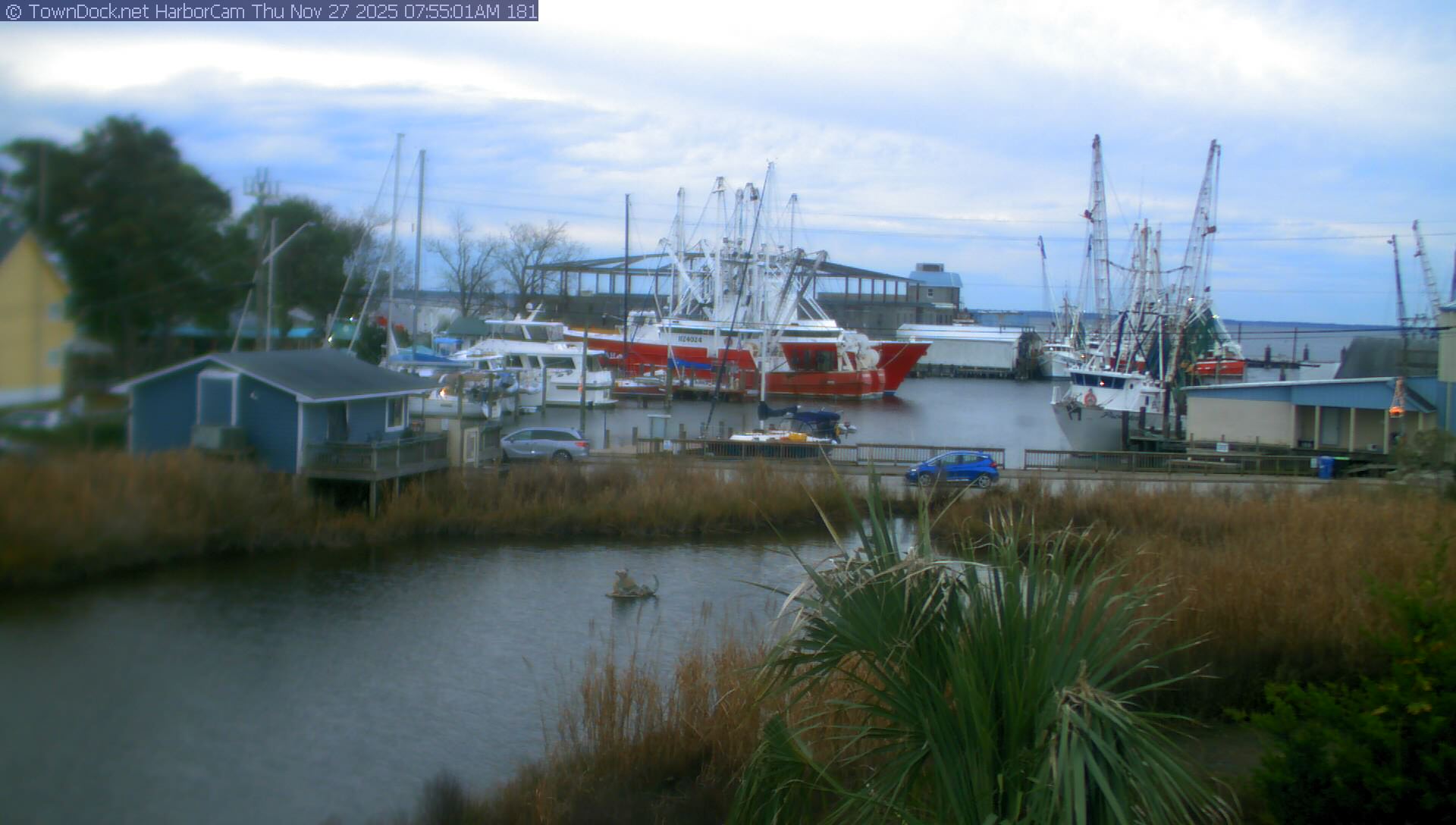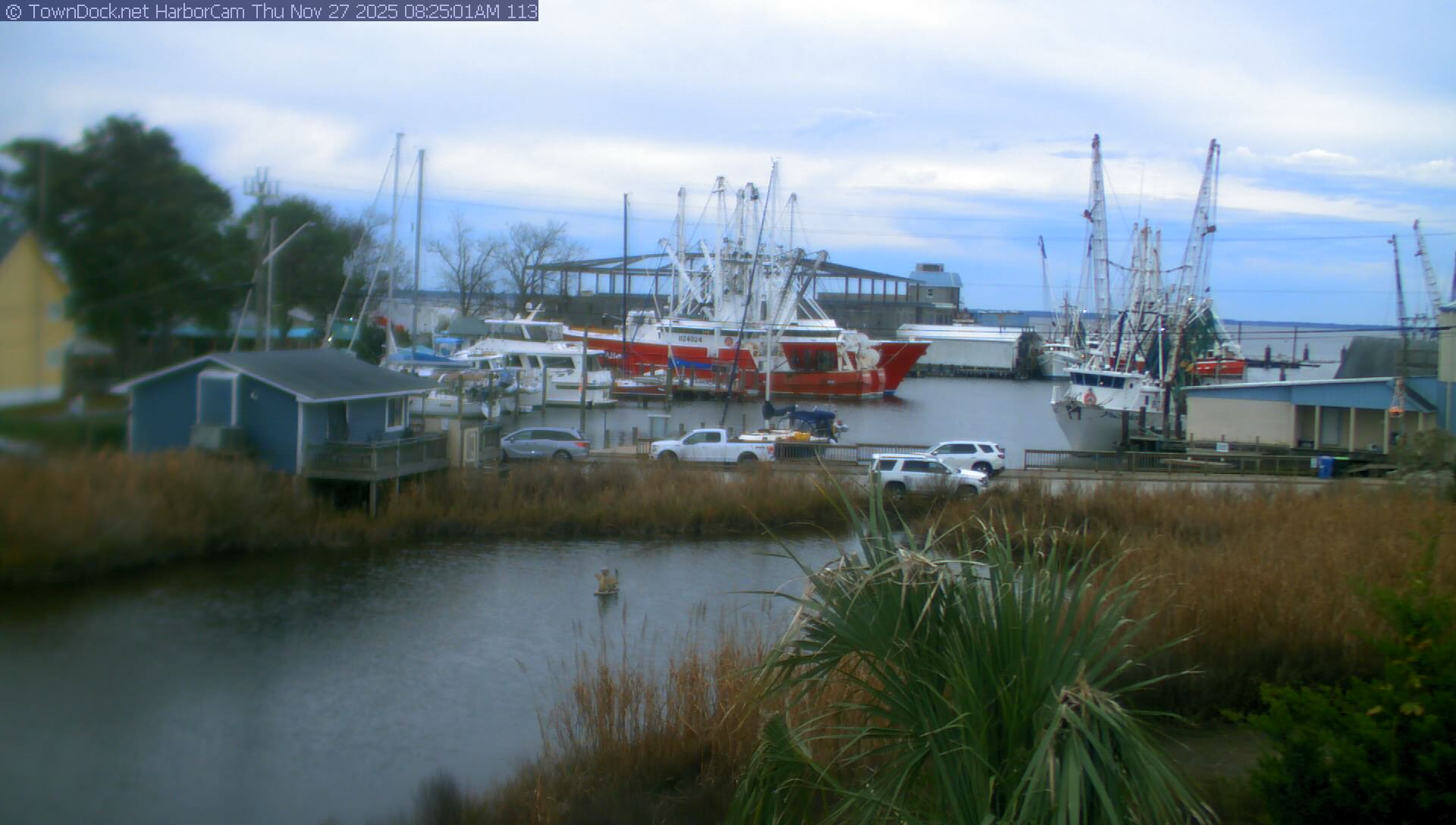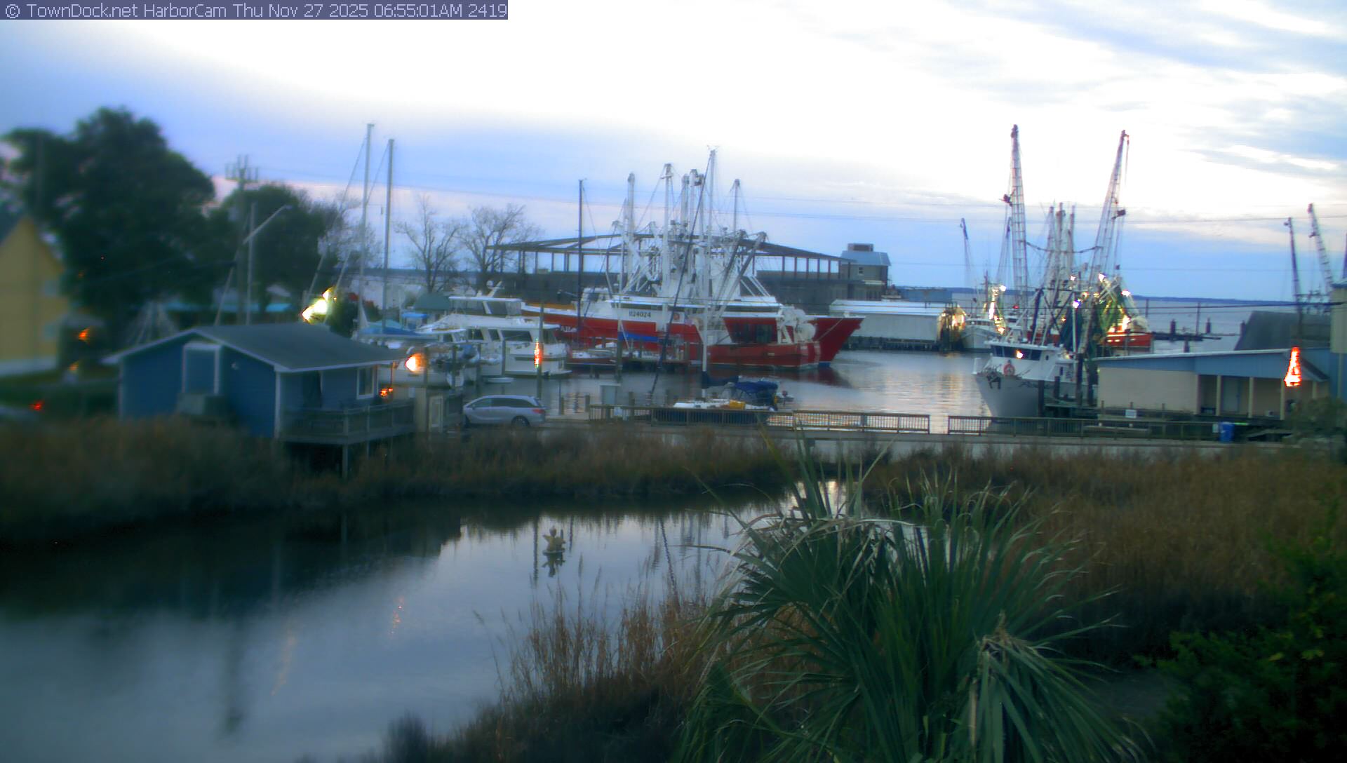 HarborCam takes a new picture of the Oriental harbor every five minutes from dawn til just before dusk. Click on the image to see a larger version. Once you see that larger version, you can click (see arrow at right) to go back in time and see recent photos. Harbor Cam currently takes photos from 6:00am to 5:00pm.
