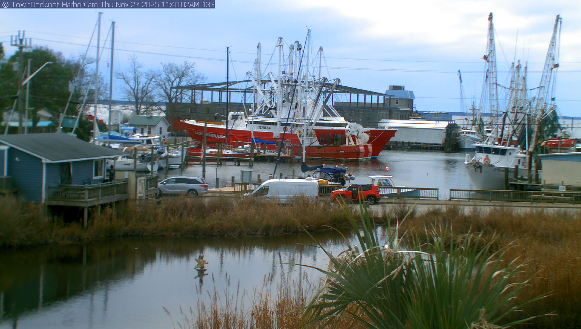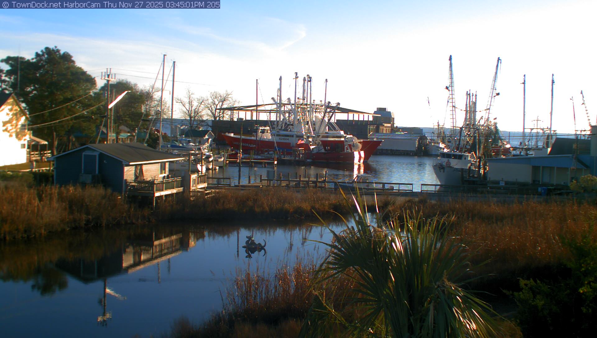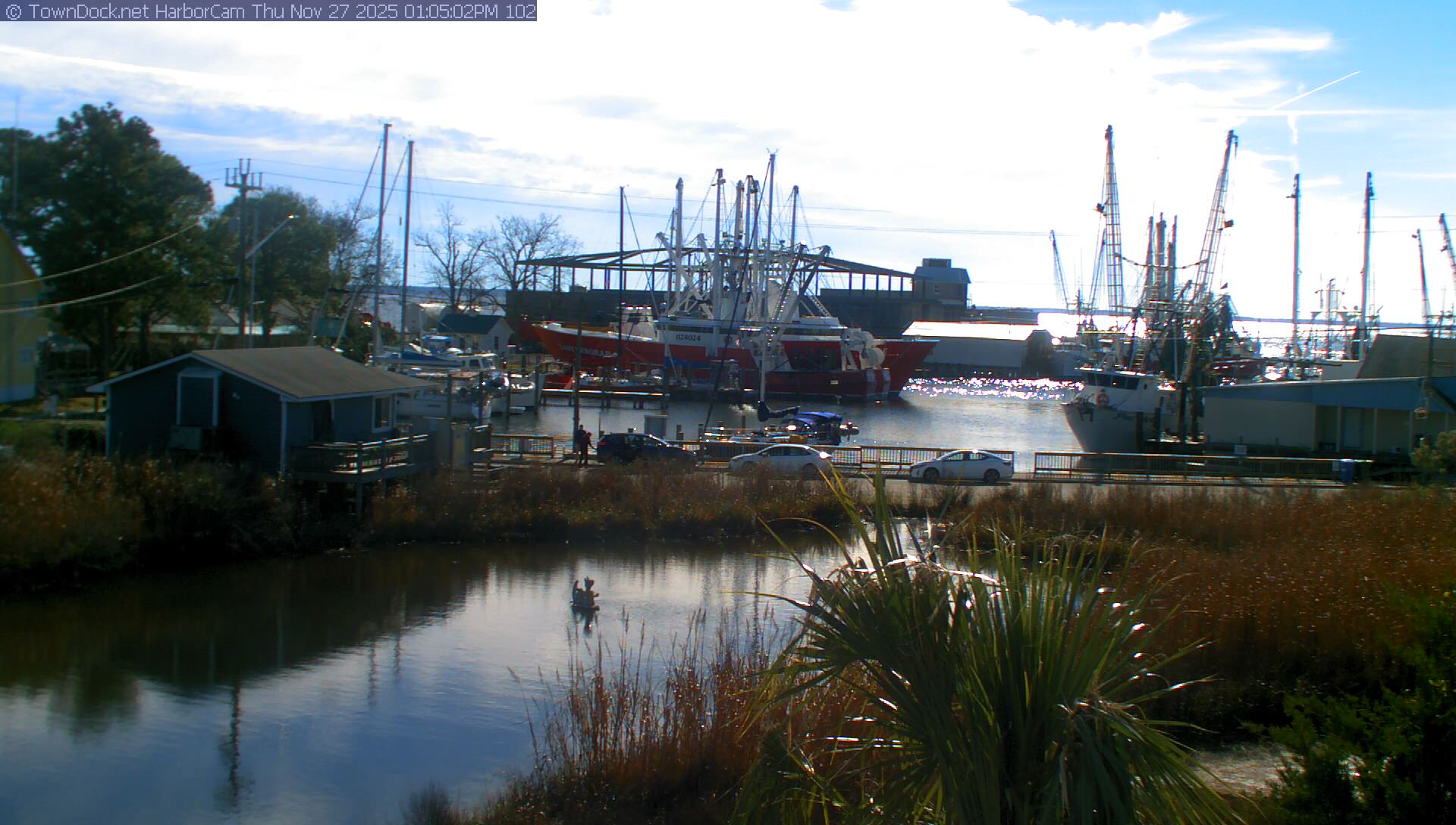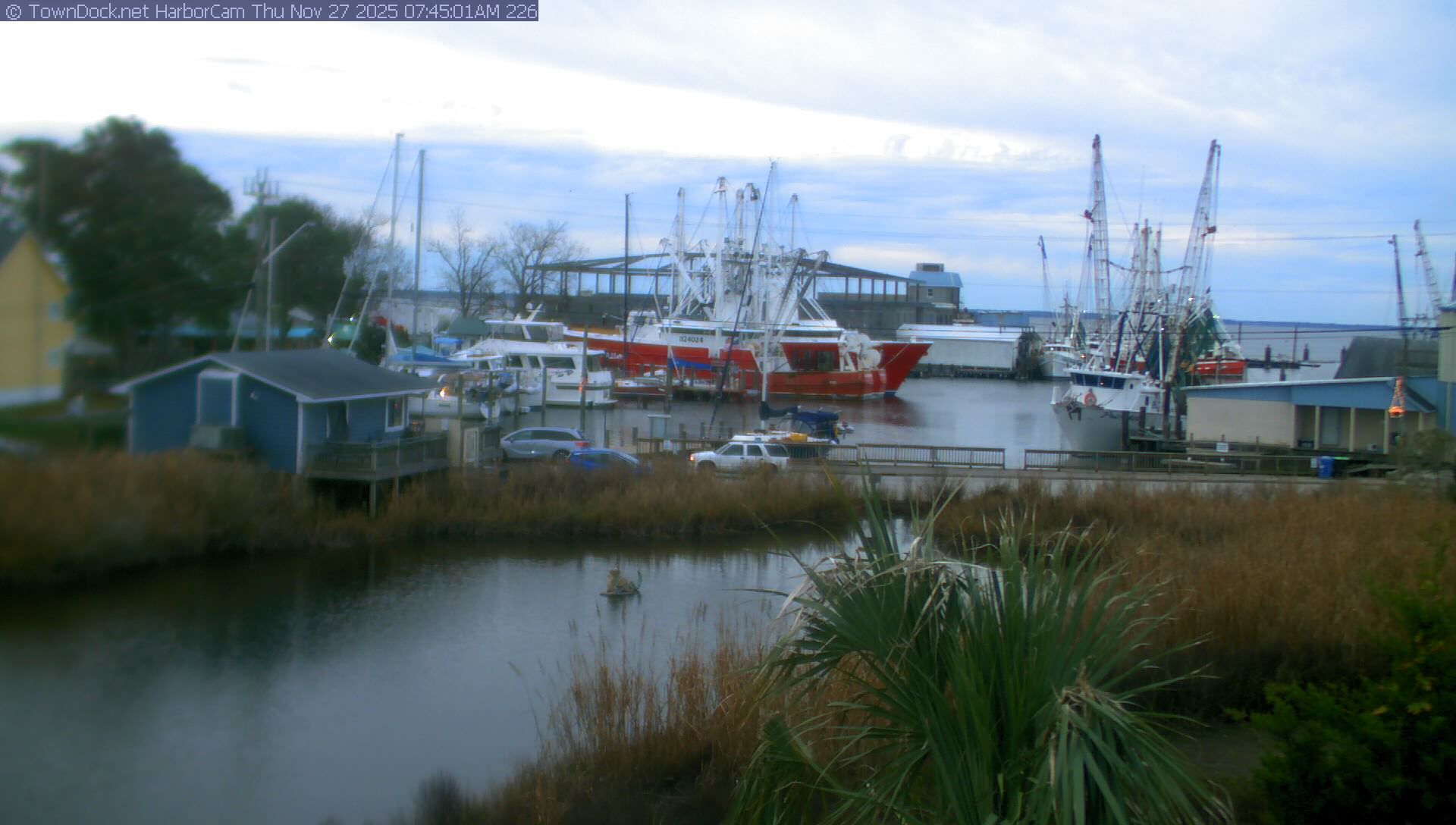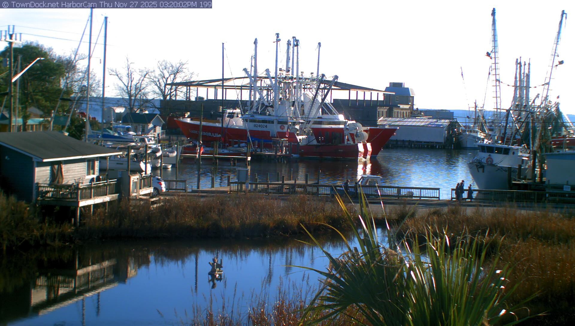 HarborCam takes a new picture of the Oriental harbor every five minutes from dawn til just before dusk. Click on the image to see a larger version. Once you see that larger version, you can click (see arrow at right) to go back in time and see recent photos. Harbor Cam currently takes photos from 6:00am to 5:00pm.