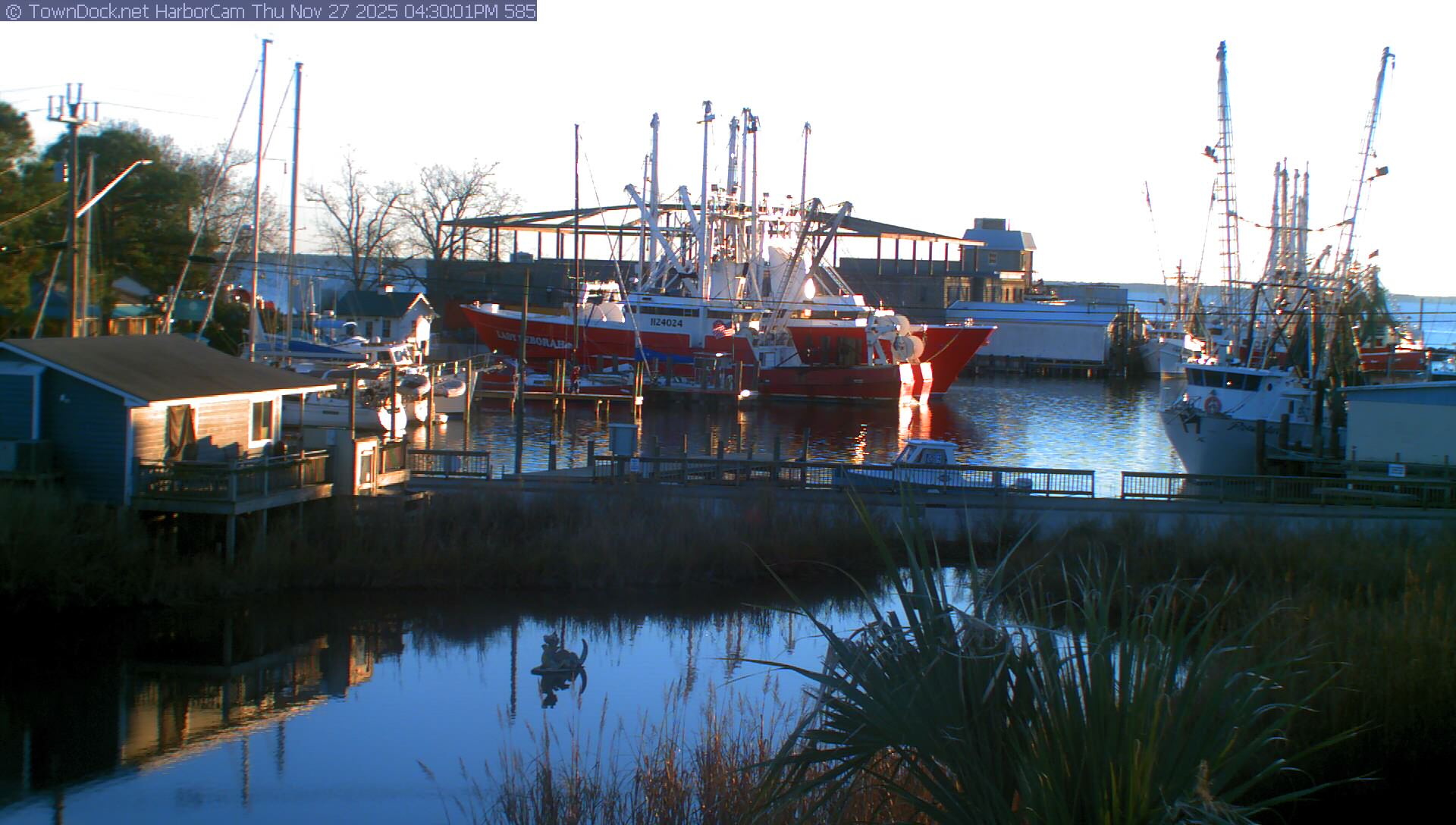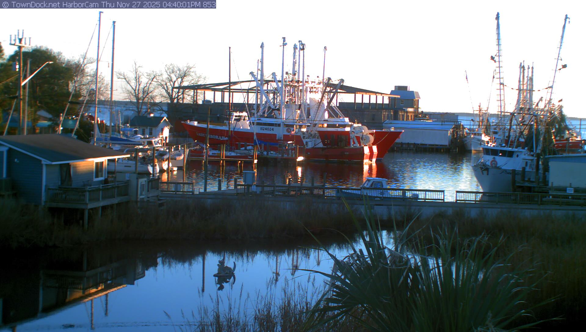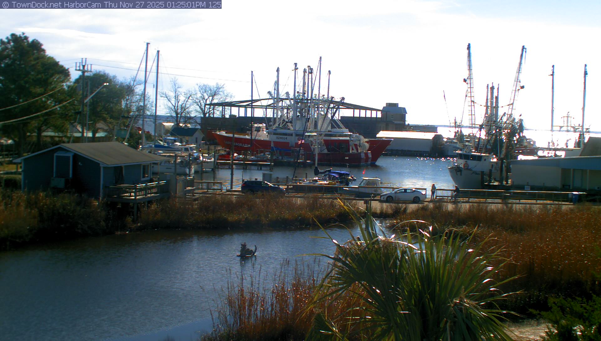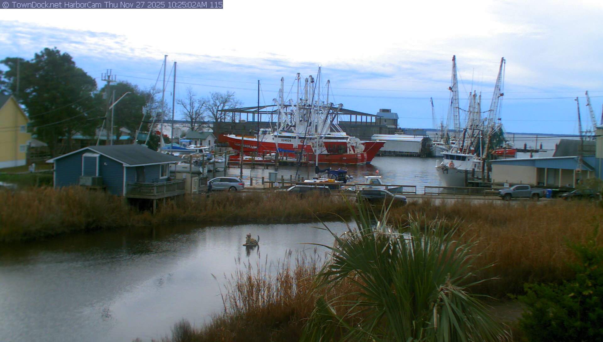 HarborCam takes a new picture of the Oriental harbor every five minutes from dawn til just before dusk. Click on the image to see a larger version. Once you see that larger version, you can click (see arrow at right) to go back in time and see recent photos. Harbor Cam currently takes photos from 6:00am to 5:00pm.