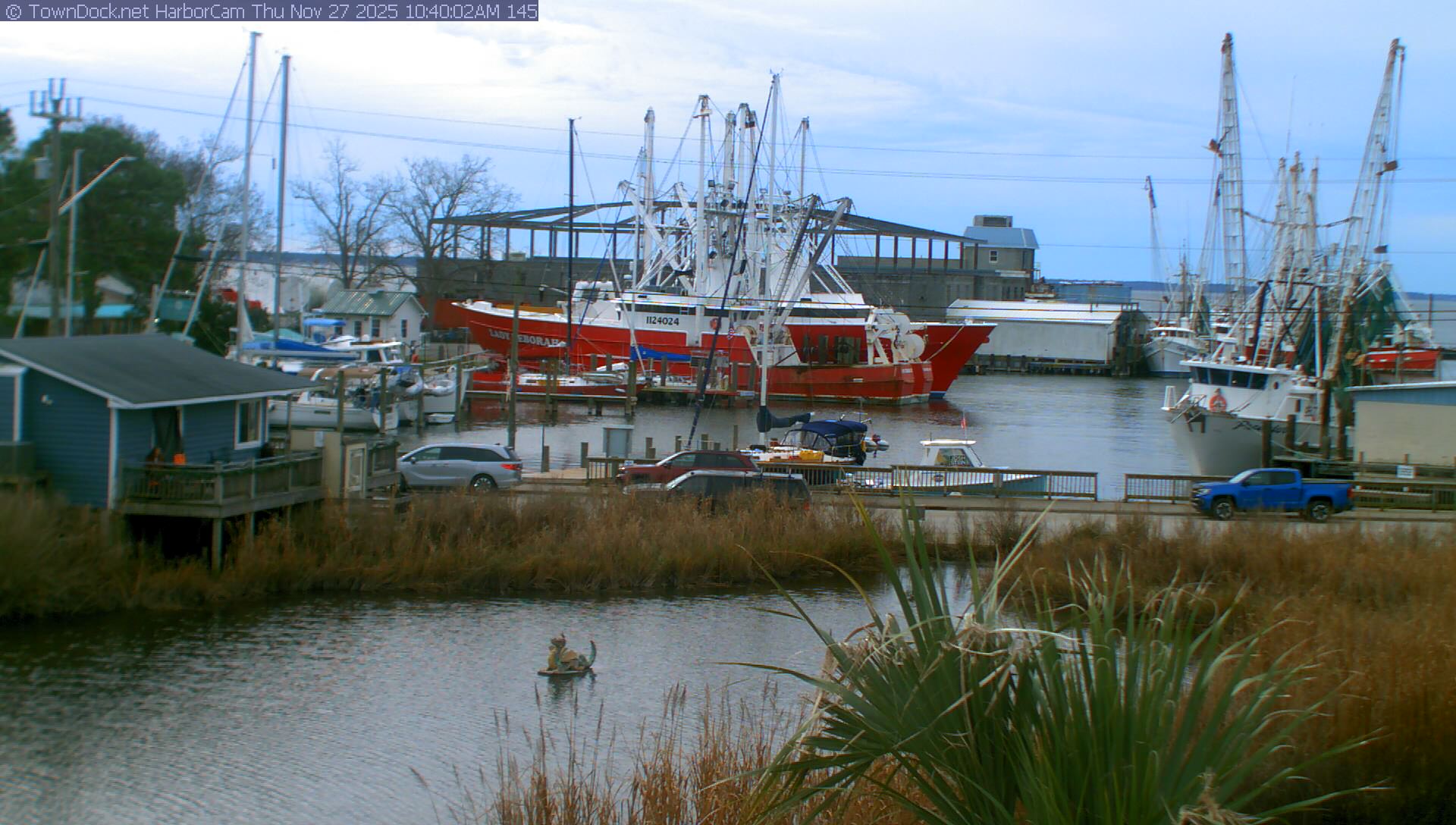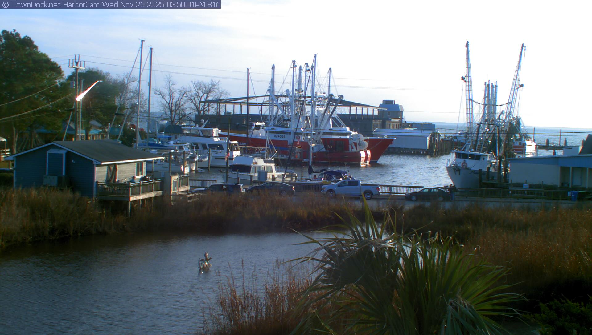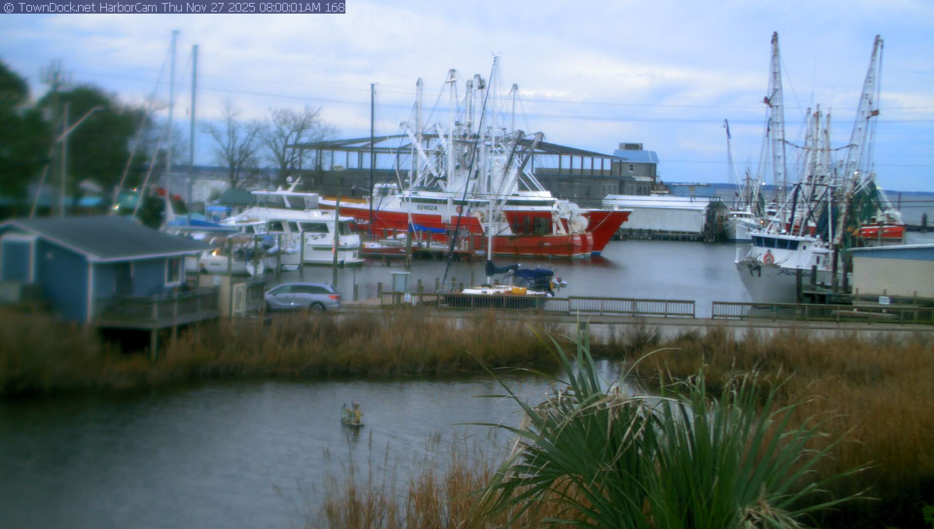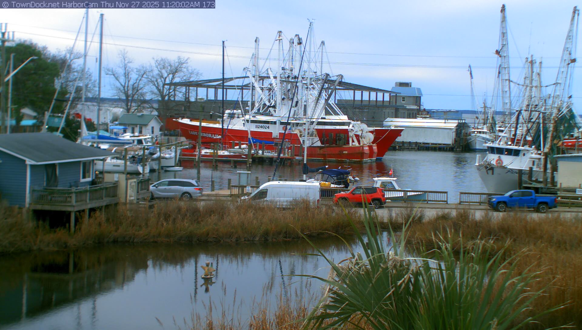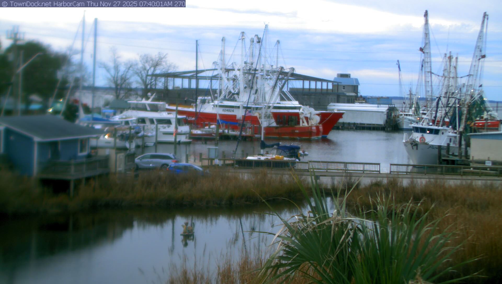 HarborCam takes a new picture of the Oriental harbor every five minutes from dawn til just before dusk. Click on the image to see a larger version. Once you see that larger version, you can click (see arrow at right) to go back in time and see recent photos. Harbor Cam currently takes photos from 6:00am to 5:00pm.