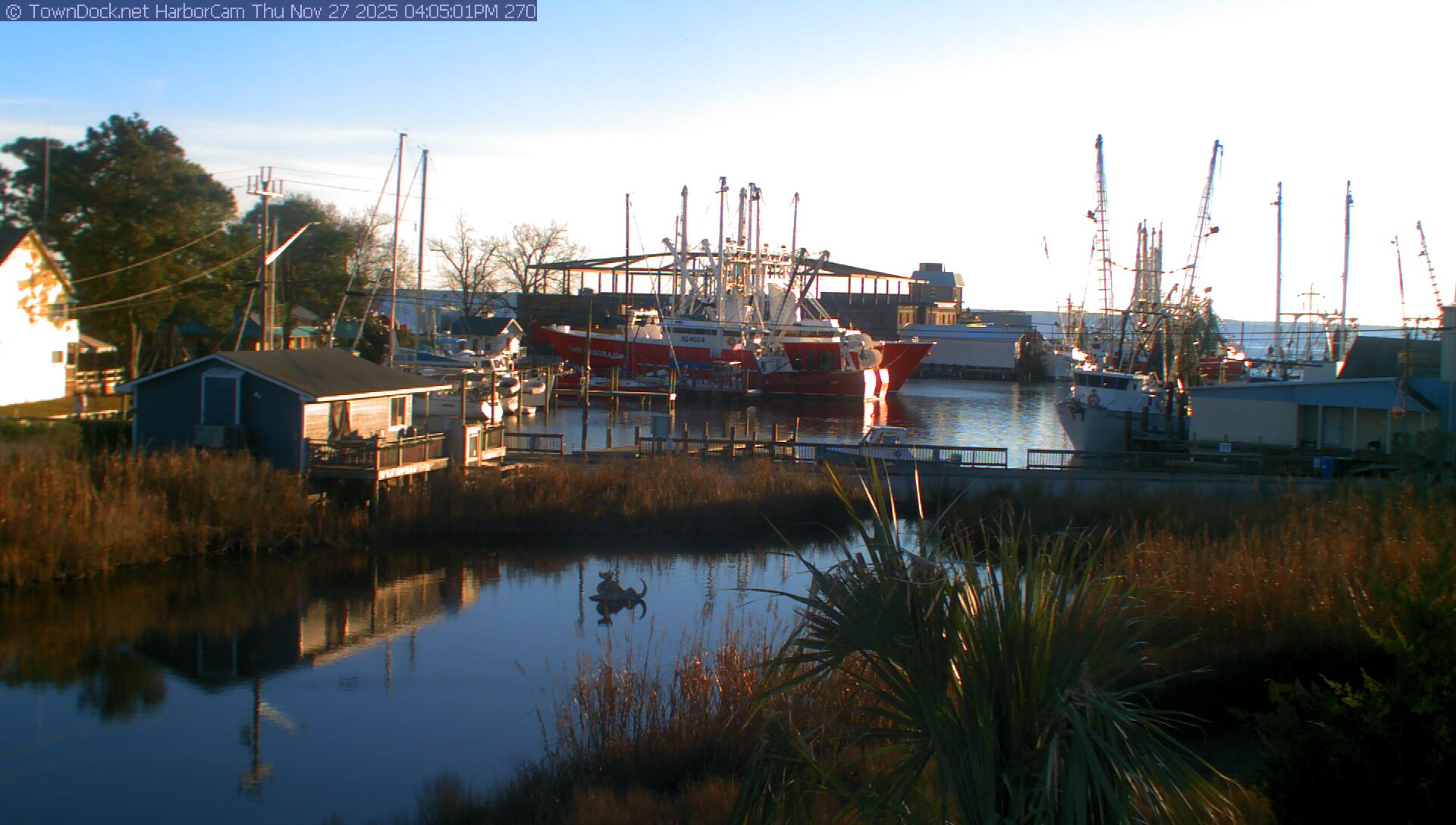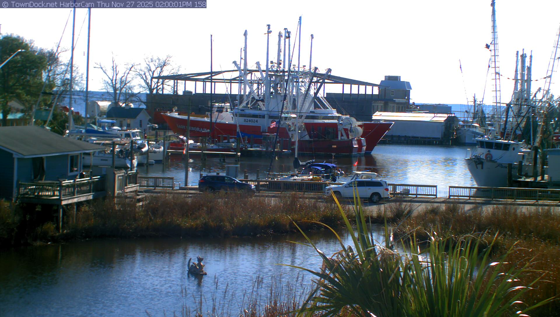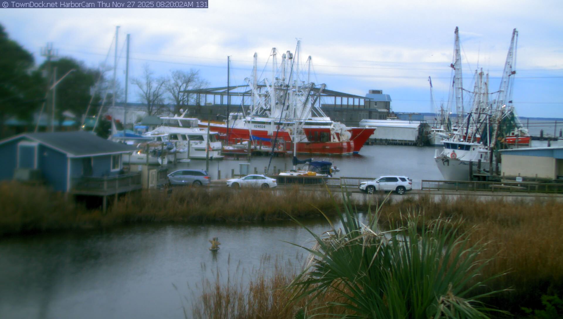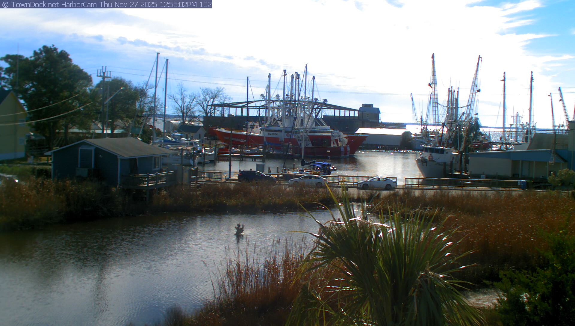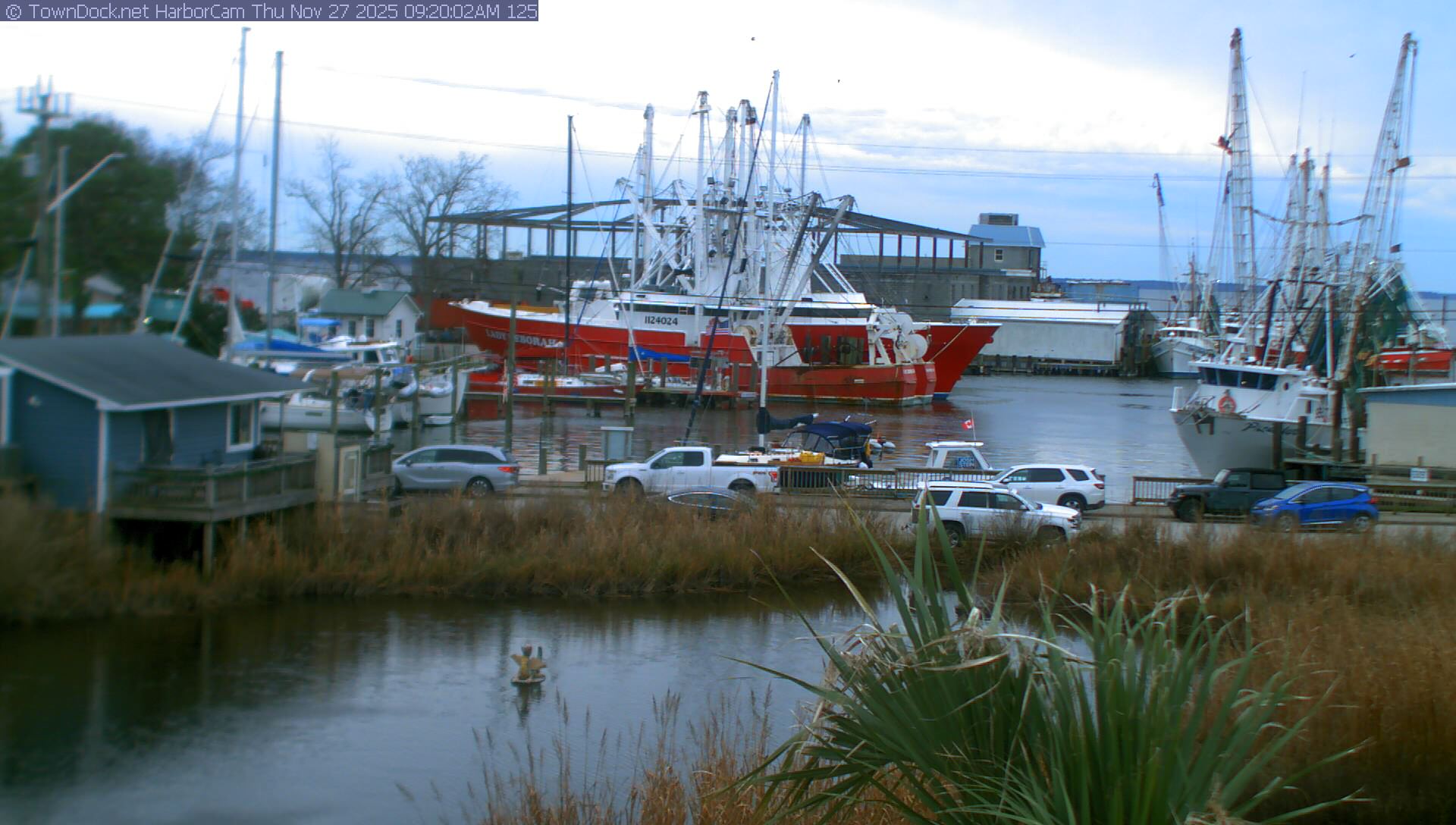 HarborCam takes a new picture of the Oriental harbor every five minutes from dawn til just before dusk. Click on the image to see a larger version. Once you see that larger version, you can click (see arrow at right) to go back in time and see recent photos. Harbor Cam currently takes photos from 6:00am to 5:00pm.