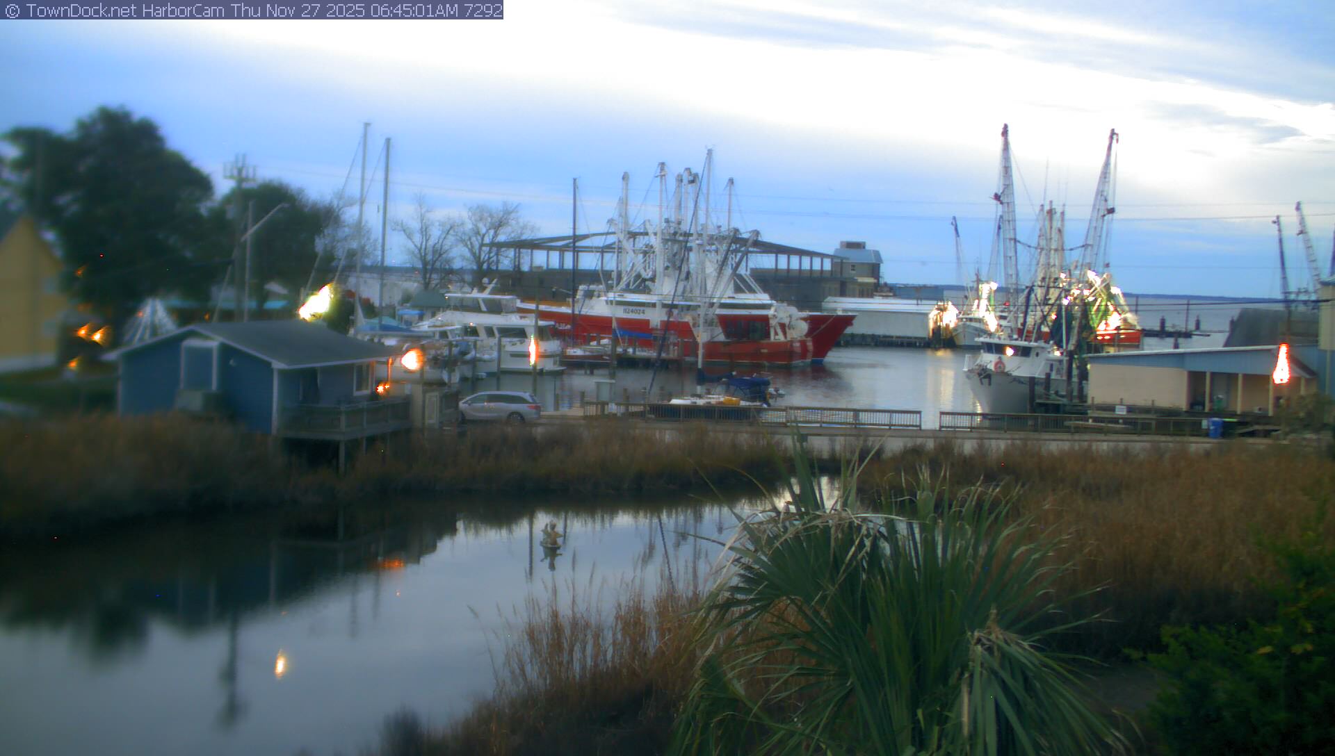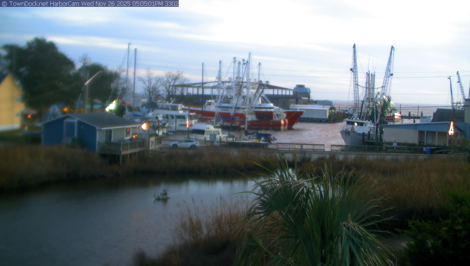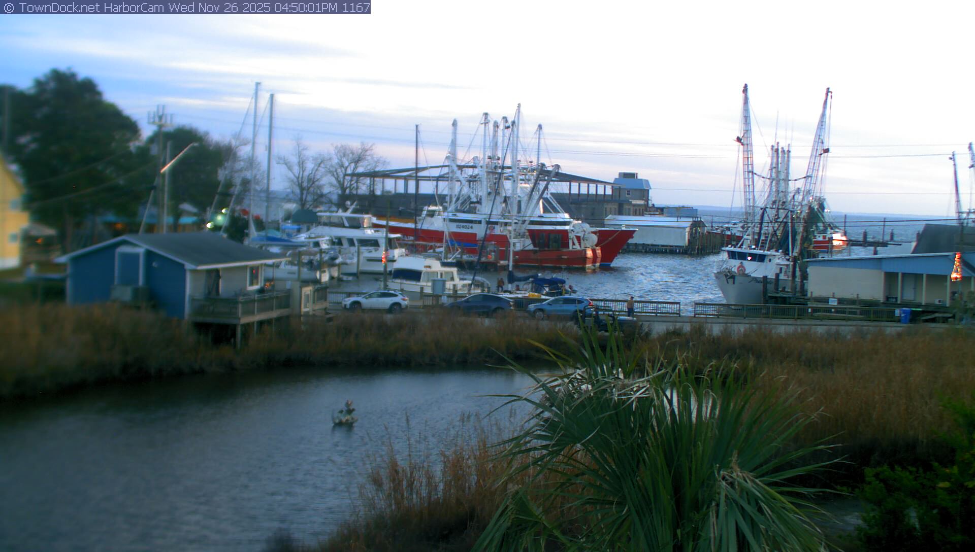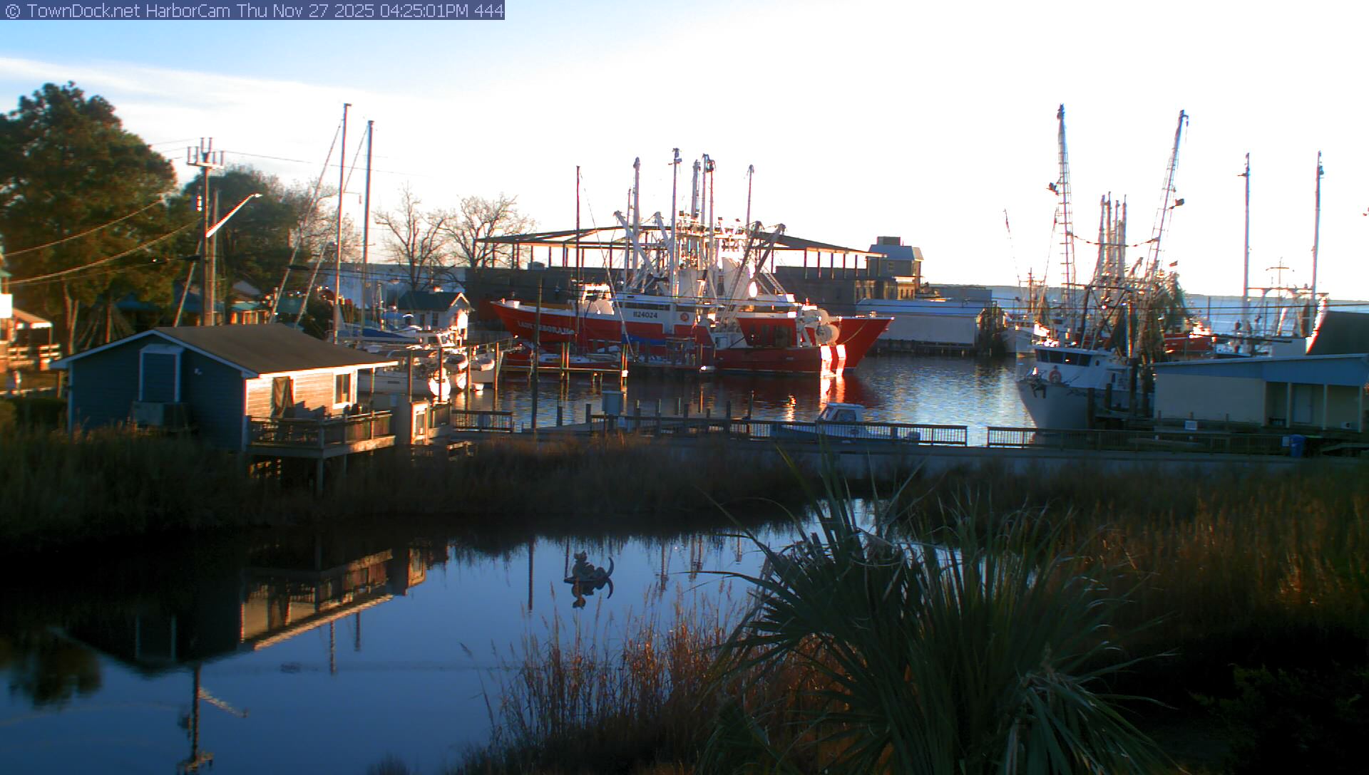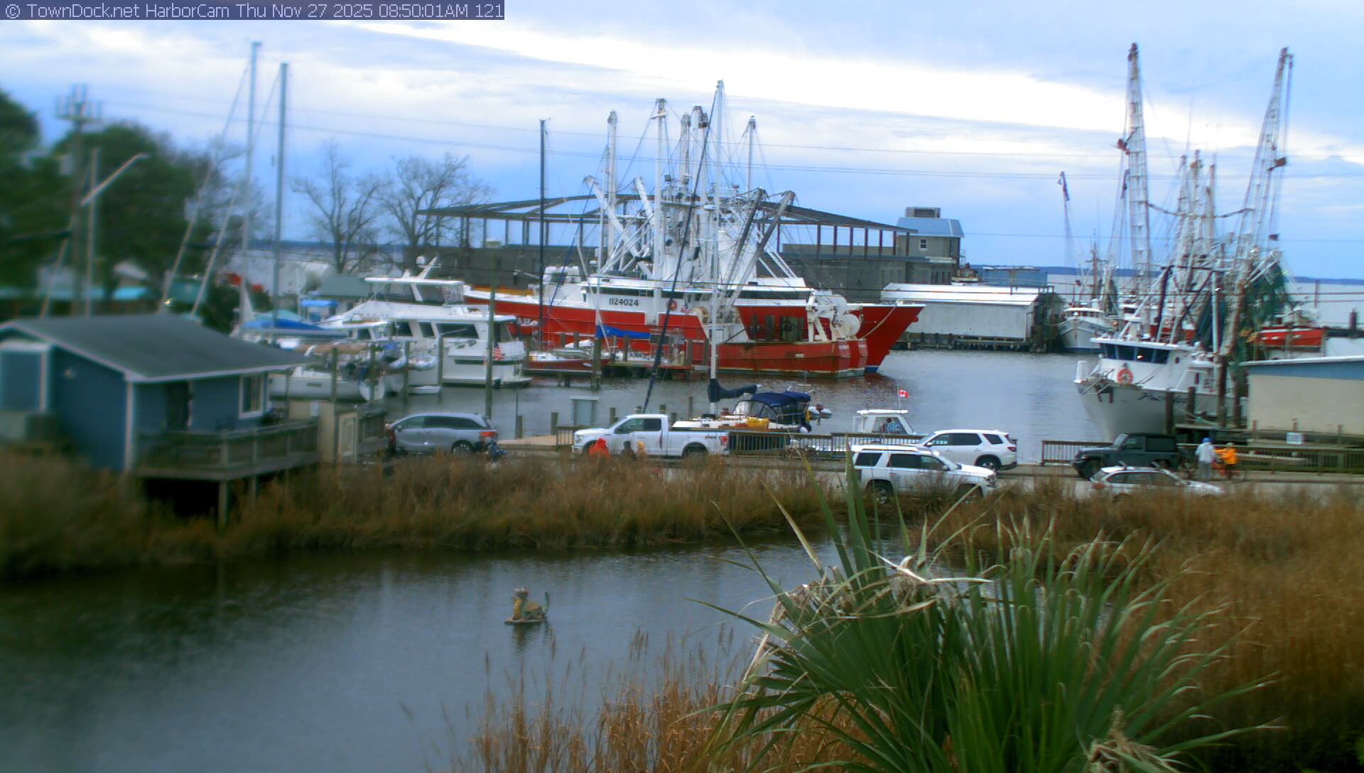 HarborCam takes a new picture of the Oriental harbor every five minutes from dawn til just before dusk. Click on the image to see a larger version. Once you see that larger version, you can click (see arrow at right) to go back in time and see recent photos. Harbor Cam currently takes photos from 6:00am to 5:00pm.