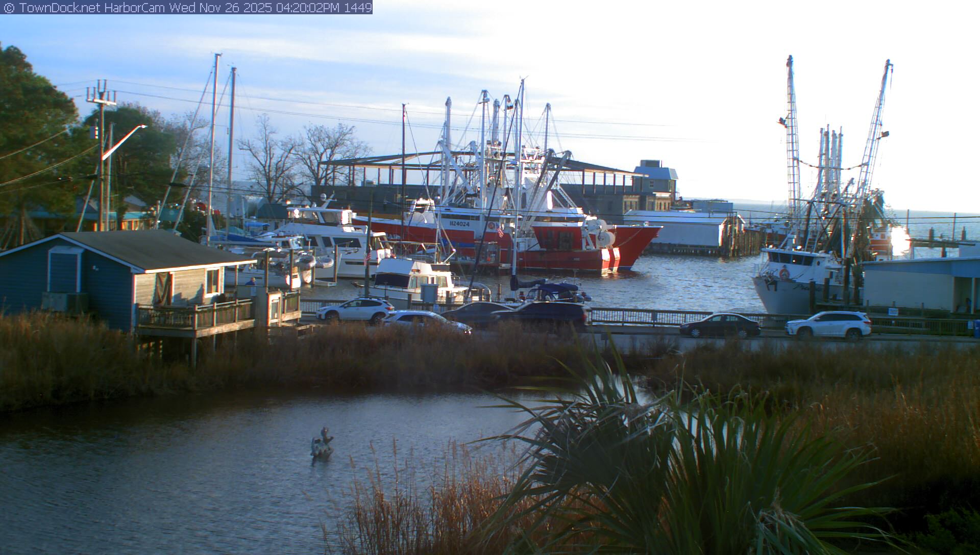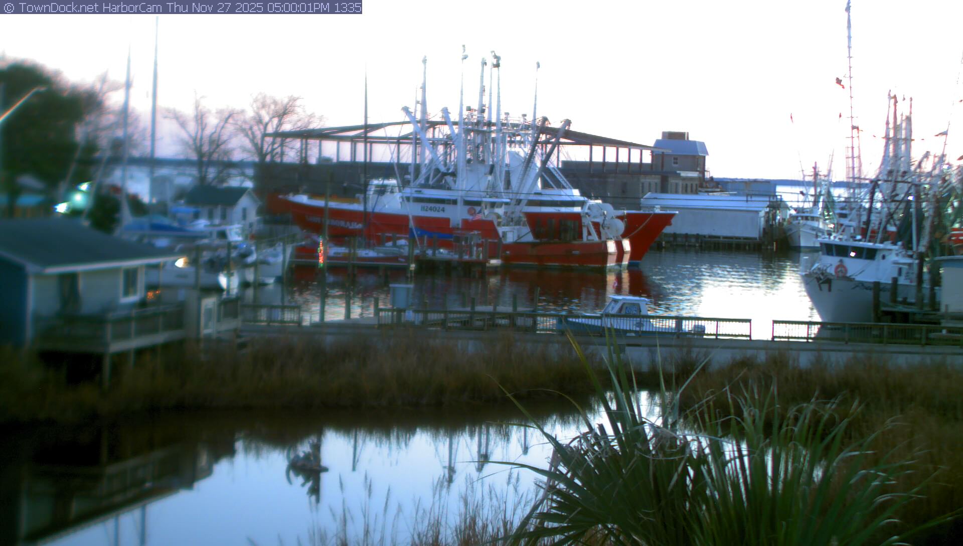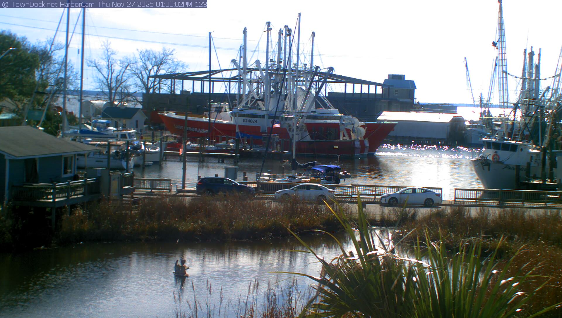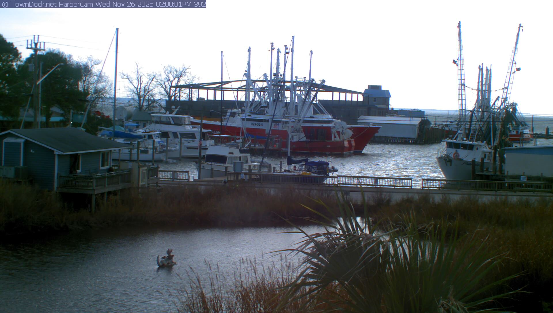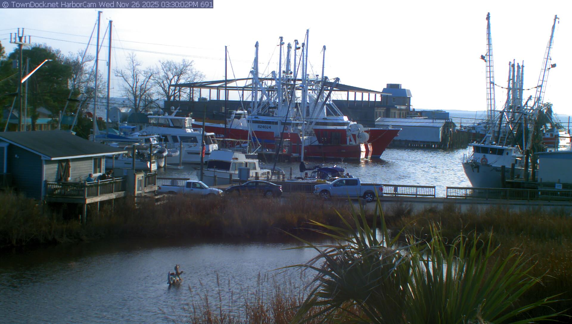 HarborCam takes a new picture of the Oriental harbor every five minutes from dawn til just before dusk. Click on the image to see a larger version. Once you see that larger version, you can click (see arrow at right) to go back in time and see recent photos. Harbor Cam currently takes photos from 6:00am to 5:00pm.