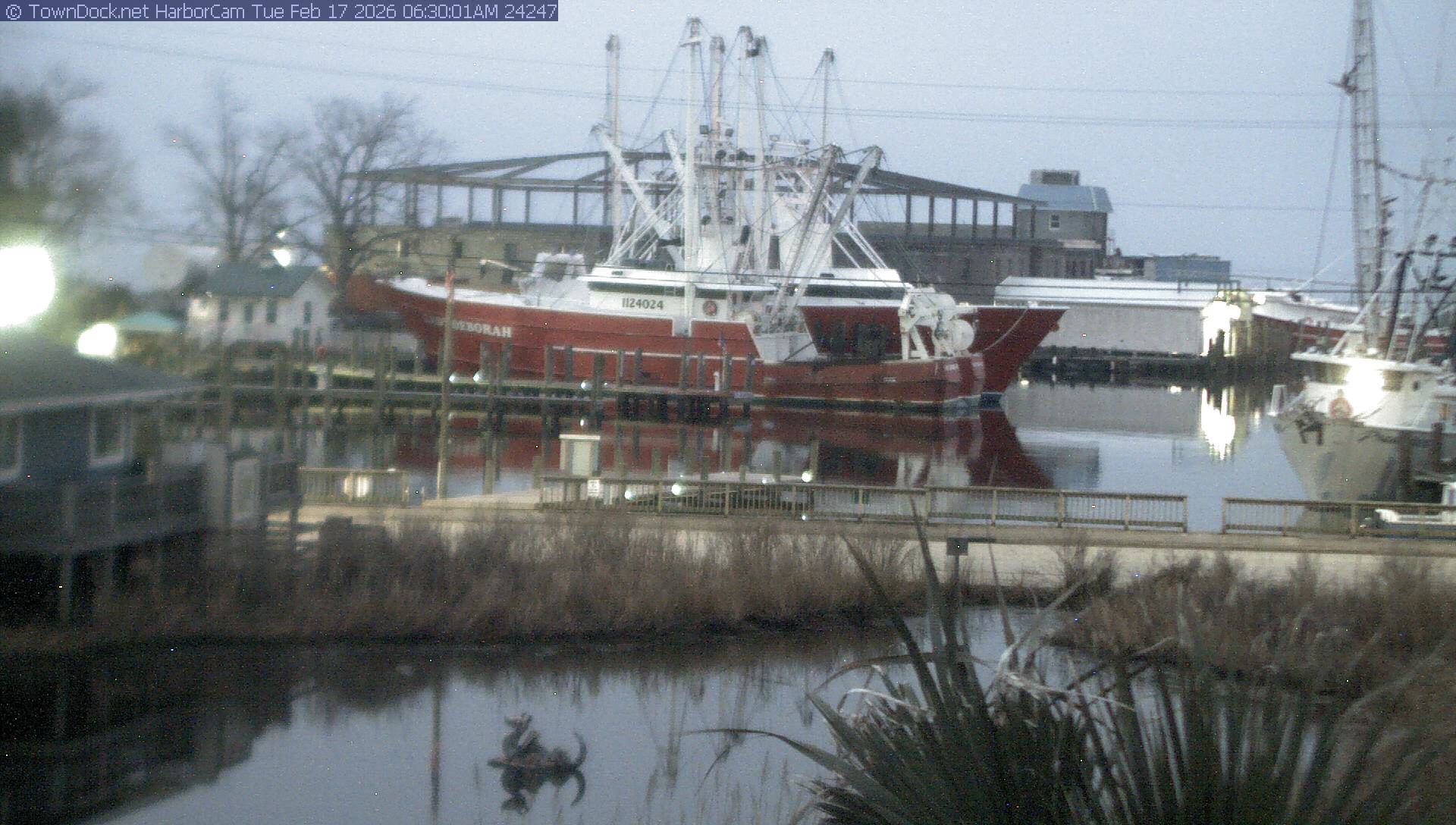 HarborCam takes a new picture of the Oriental harbor every five minutes from dawn til just before dusk. Click on the image to see a larger version. Once you see that larger version, you can click (see arrow at right) to go back in time and see recent photos. Harbor Cam currently takes photos from 6:30am to 5:30pm.