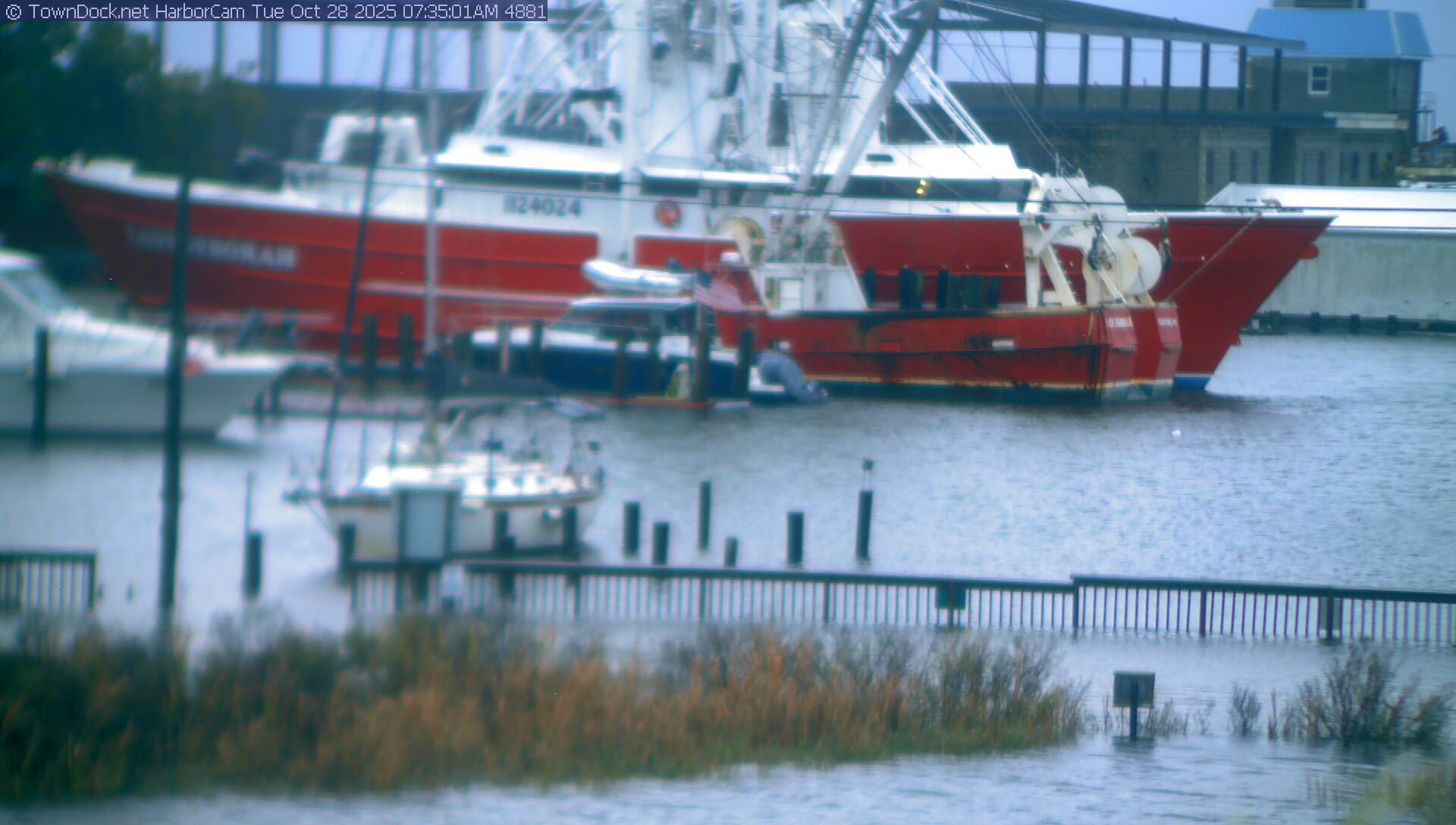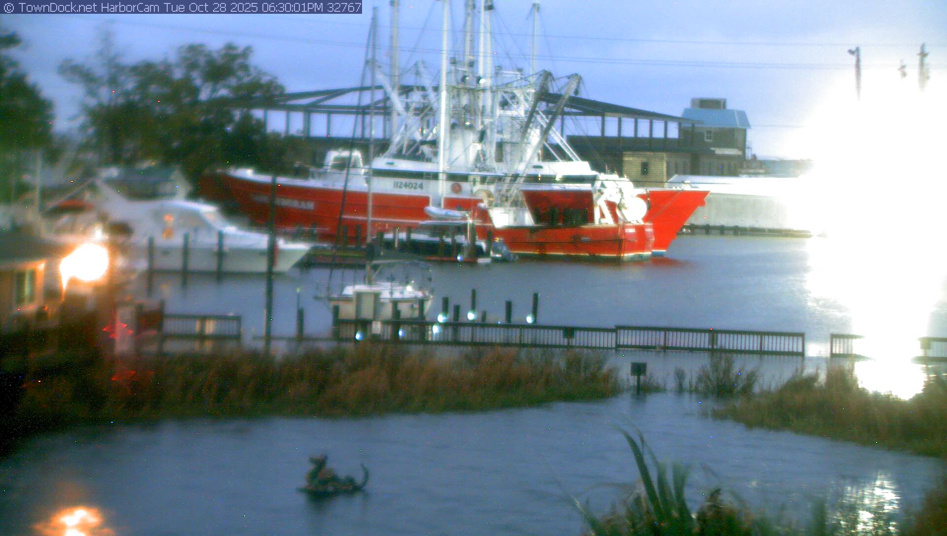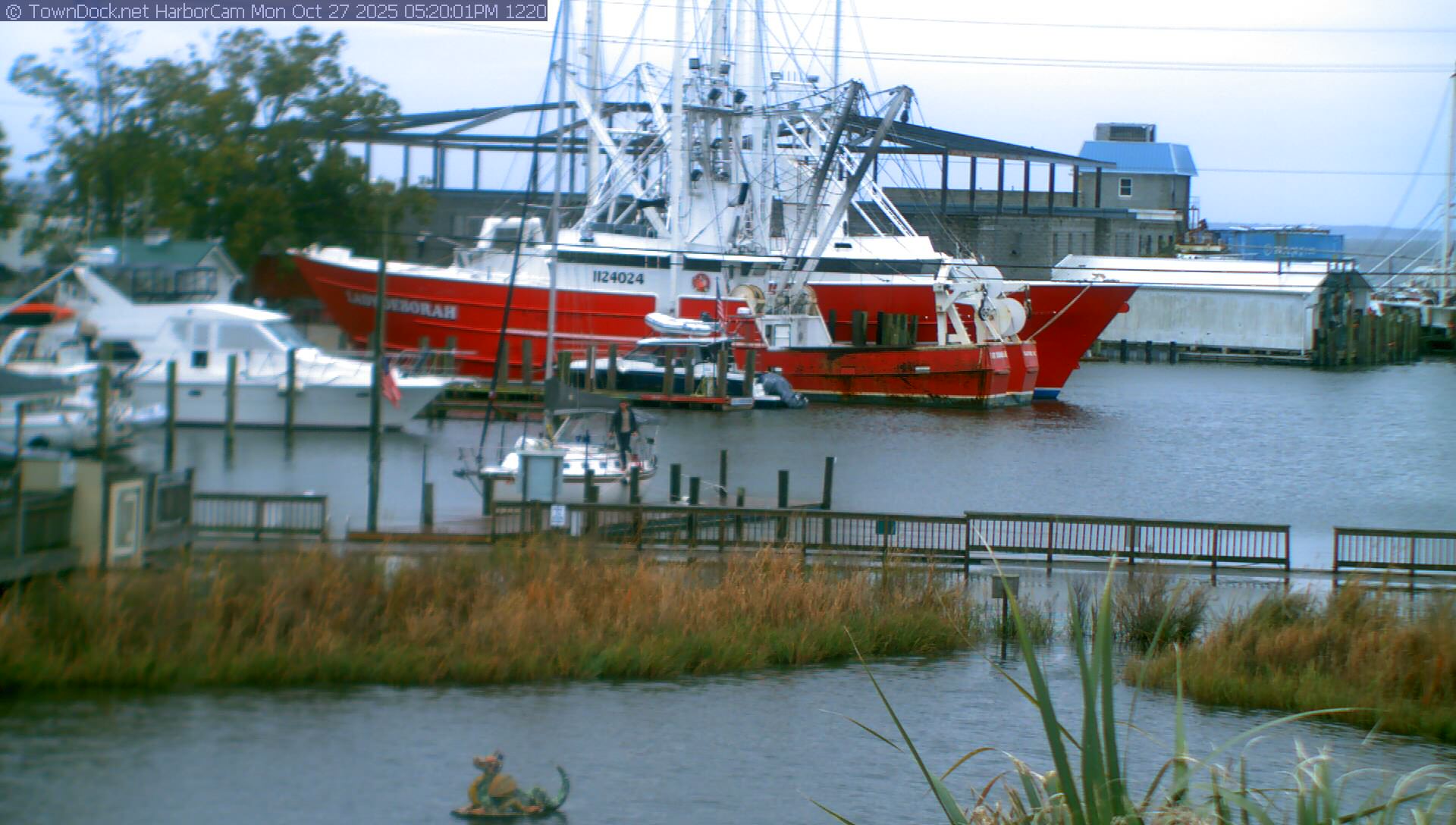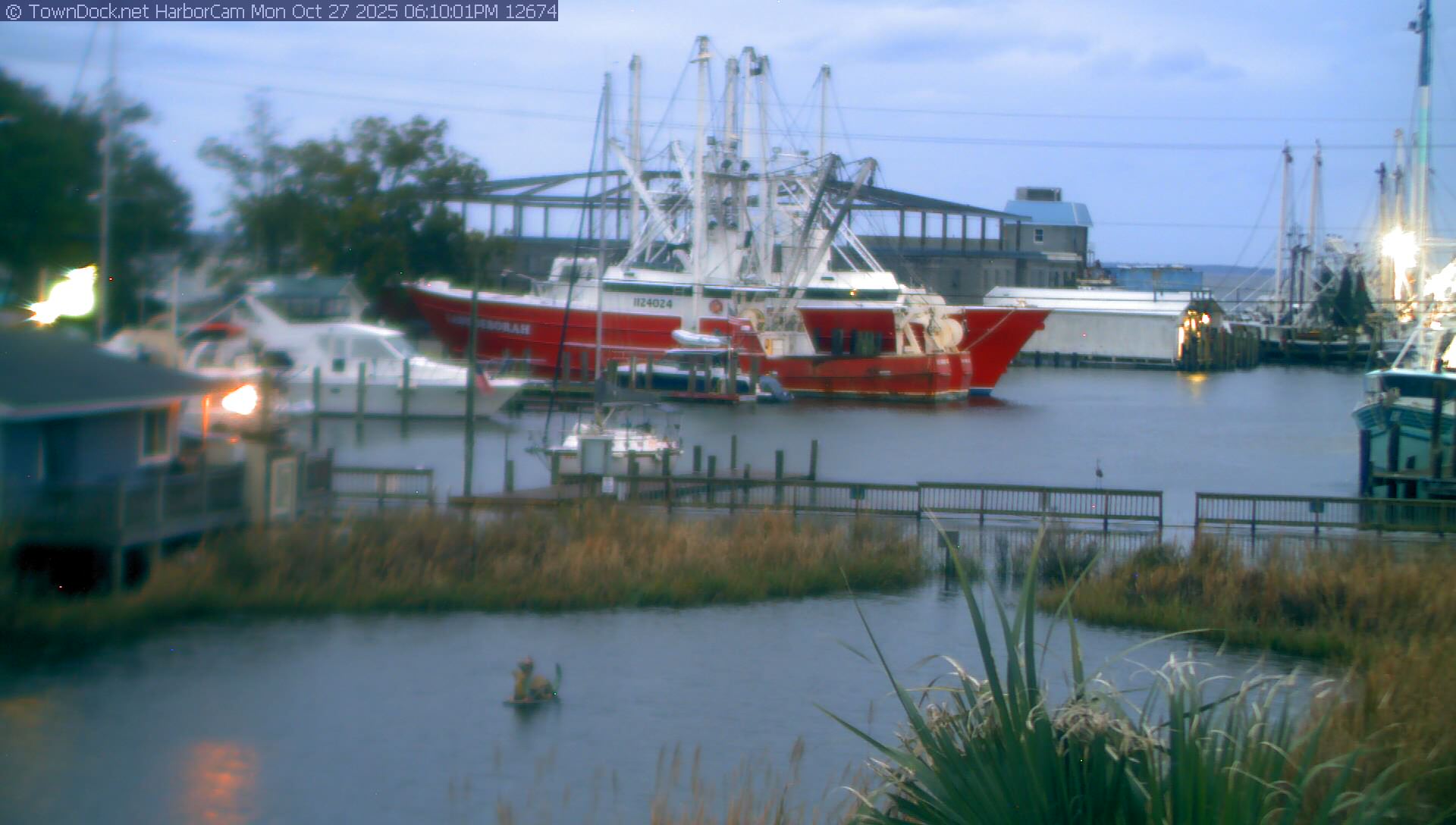 HarborCam takes a new picture of the Oriental harbor every five minutes from dawn til just before dusk. Click on the image to see a larger version. Once you see that larger version, you can click (see arrow at right) to go back in time and see recent photos. Harbor Cam currently takes photos from 6:30am to 6:40pm.