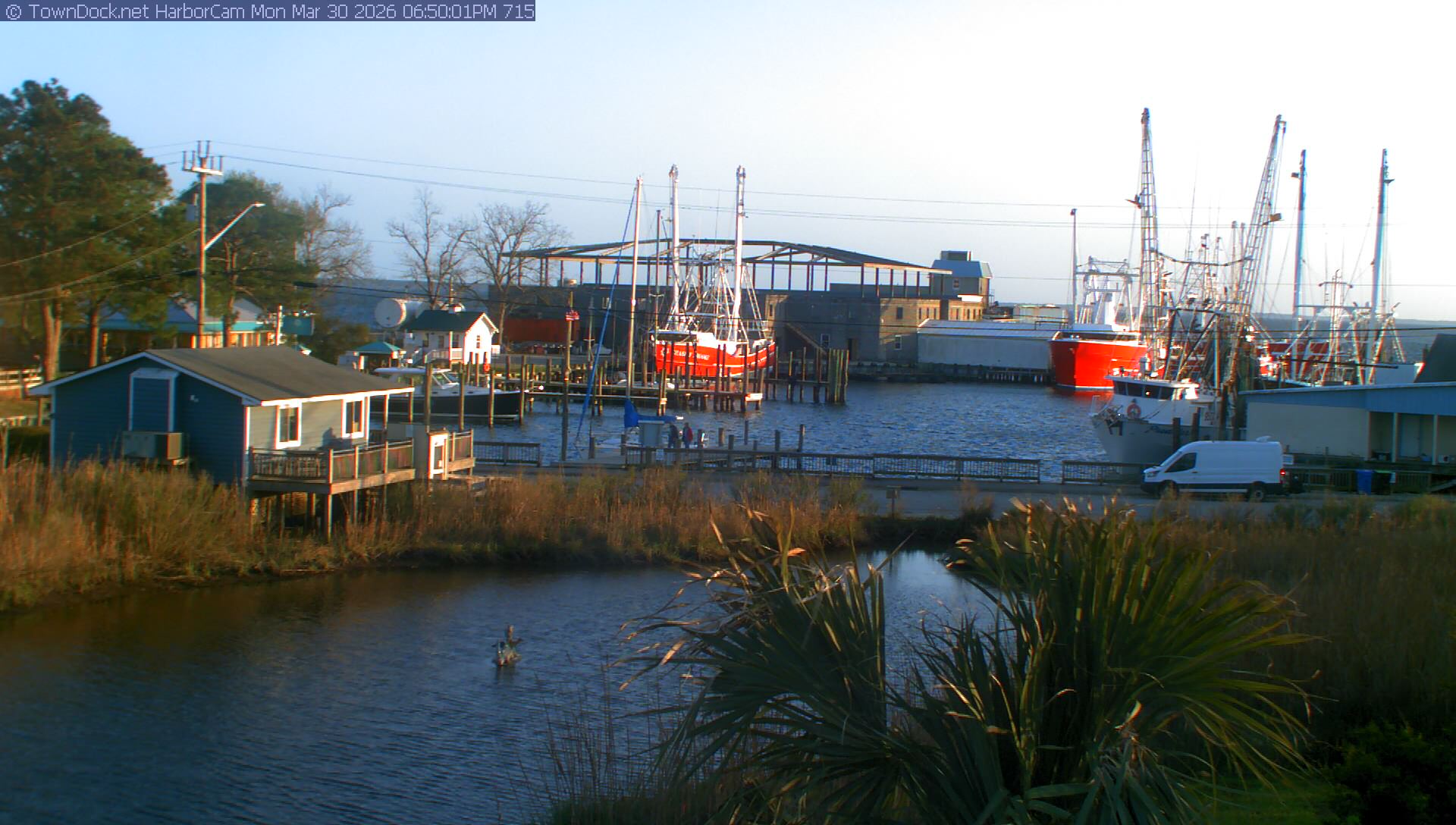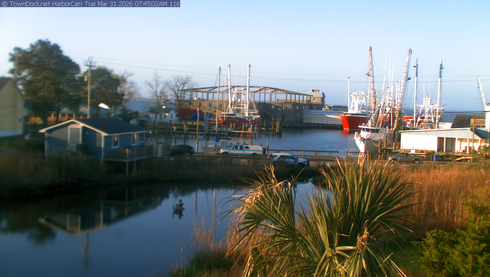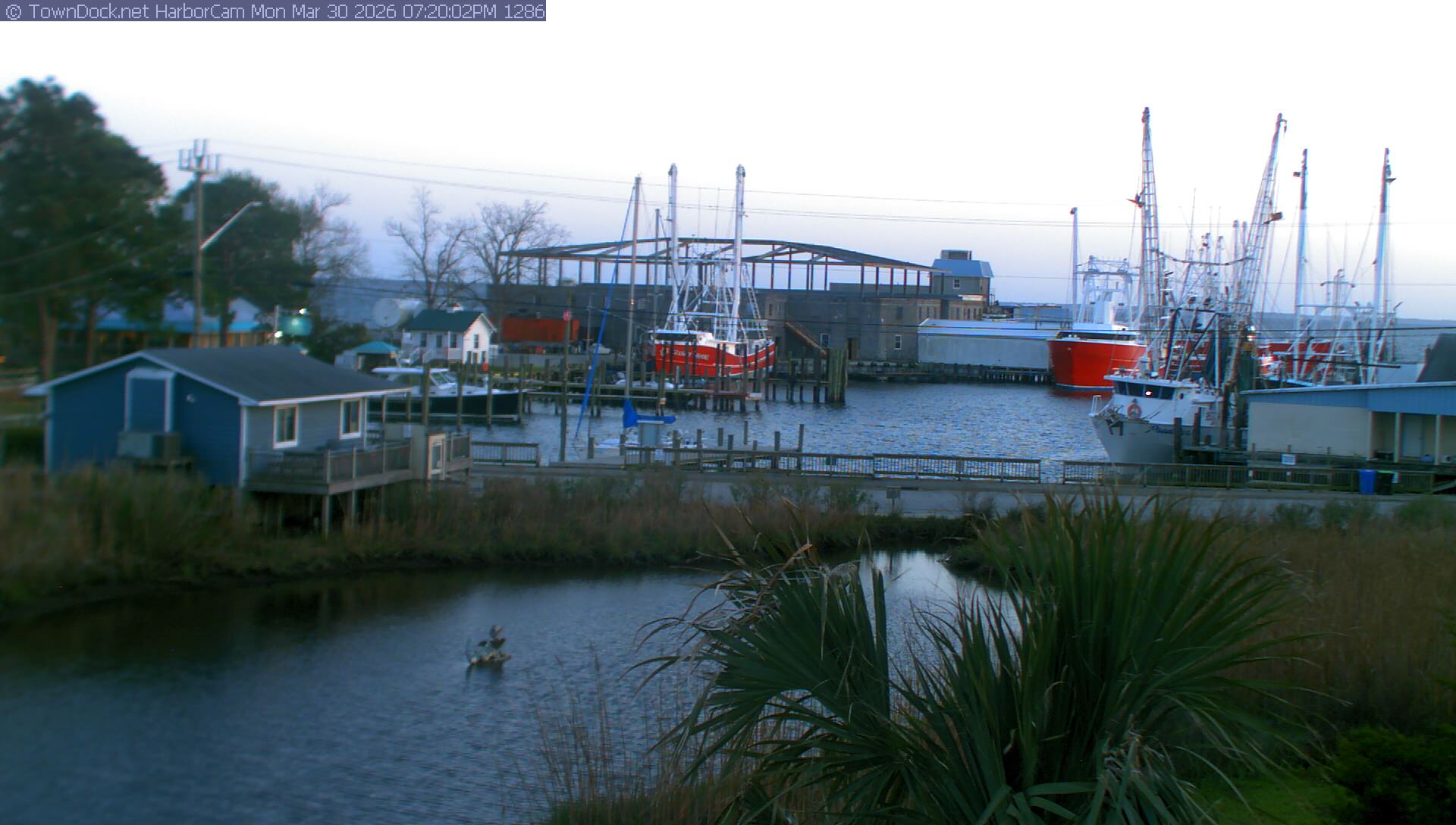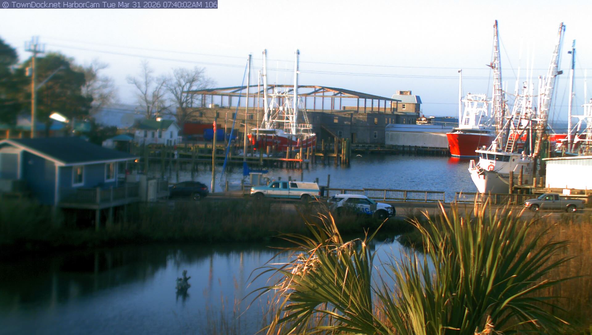 HarborCam takes a new picture of the Oriental harbor every five minutes from dawn til just before dusk. Click on the image to see a larger version. Once you see that larger version, you can click (see arrow at right) to go back in time and see recent photos. Harbor Cam currently takes photos from 7:00am to 7:00pm.