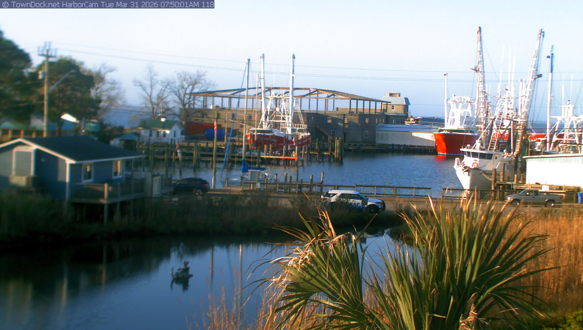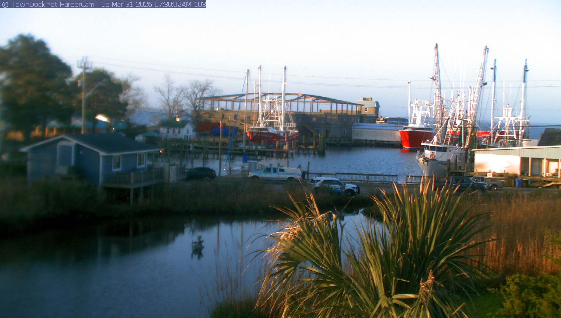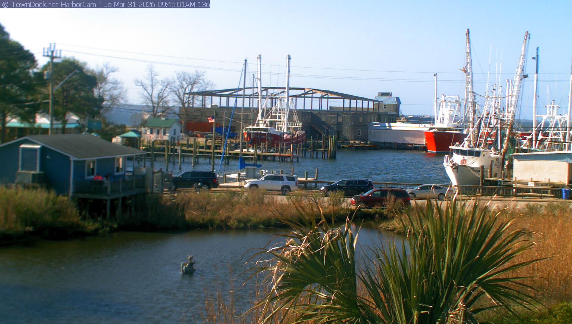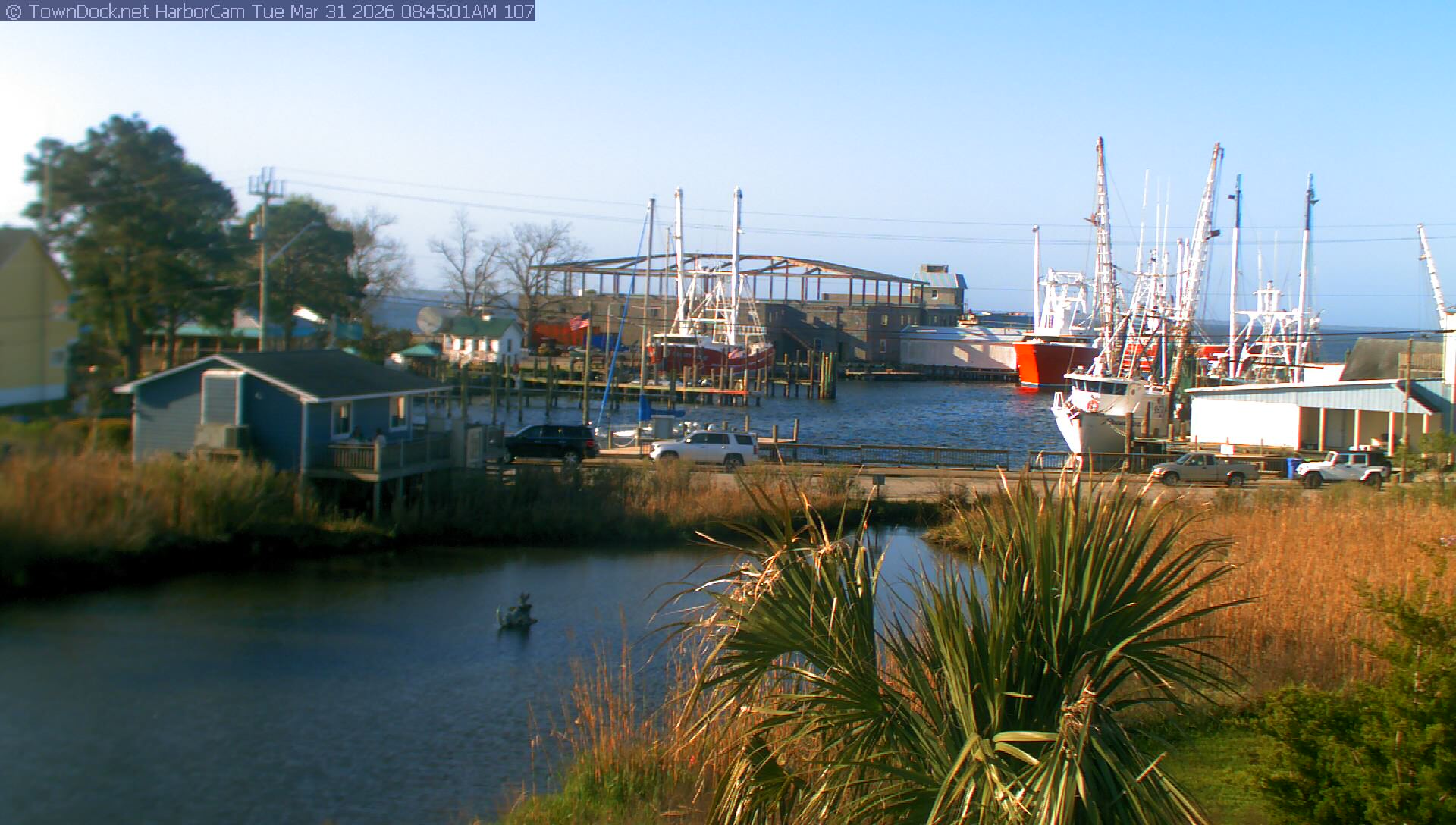 HarborCam takes a new picture of the Oriental harbor every five minutes from dawn til just before dusk. Click on the image to see a larger version. Once you see that larger version, you can click (see arrow at right) to go back in time and see recent photos. Harbor Cam currently takes photos from 7:00am to 7:00pm.