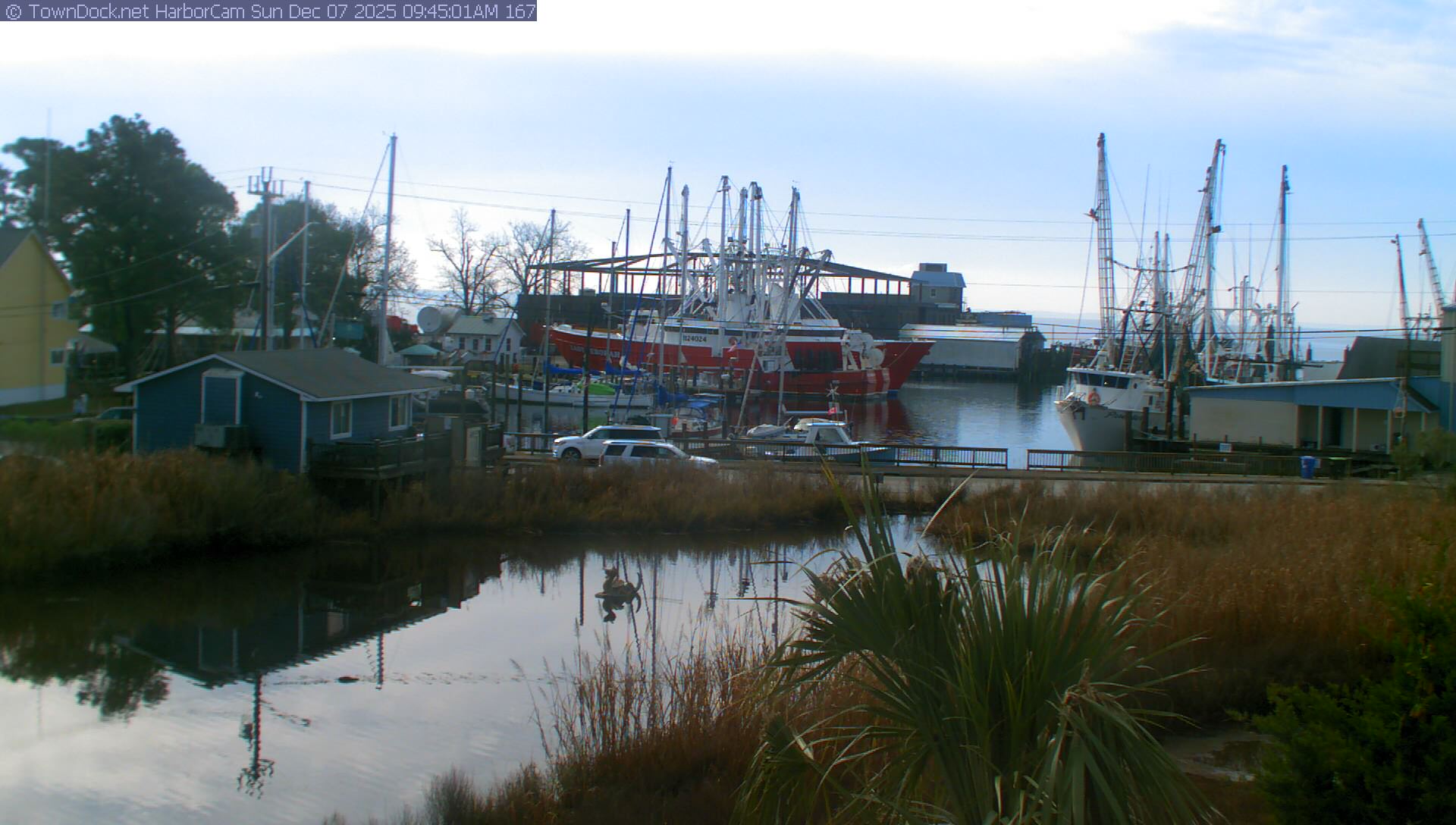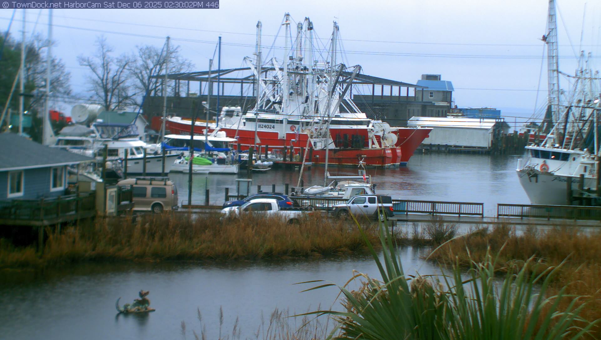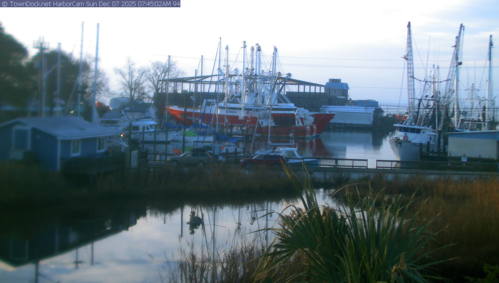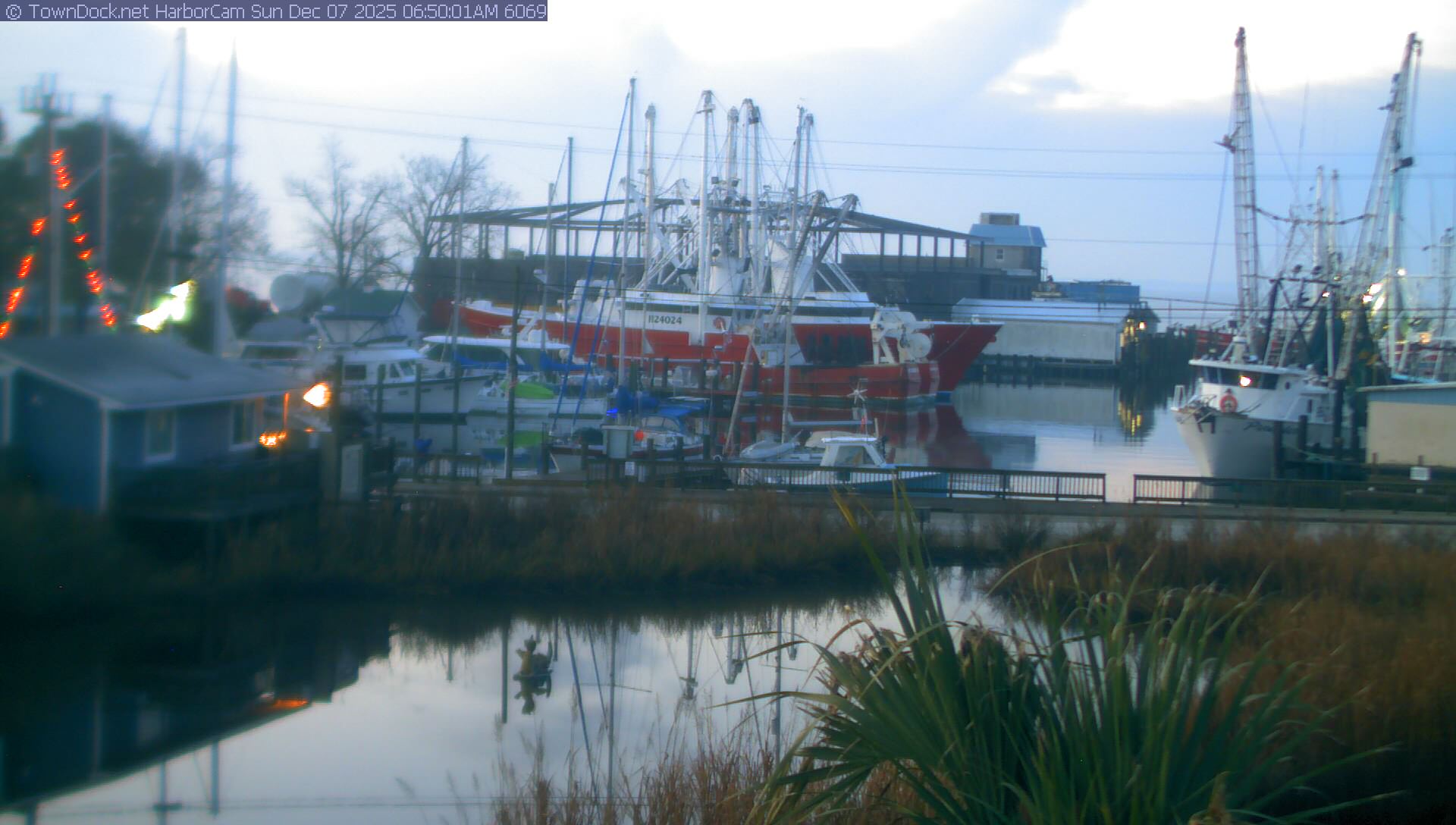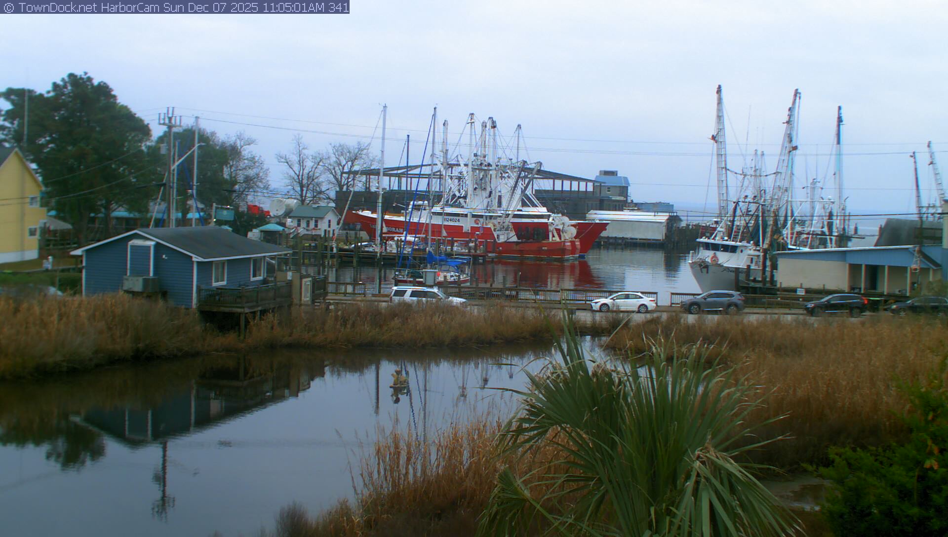 HarborCam takes a new picture of the Oriental harbor every five minutes from dawn til just before dusk. Click on the image to see a larger version. Once you see that larger version, you can click (see arrow at right) to go back in time and see recent photos. Harbor Cam currently takes photos from 6:00am to 5:20pm.