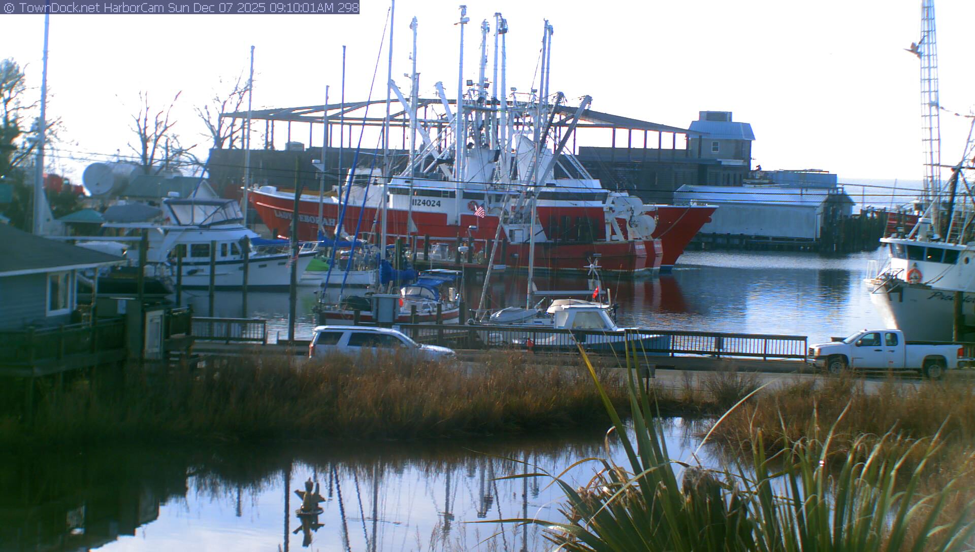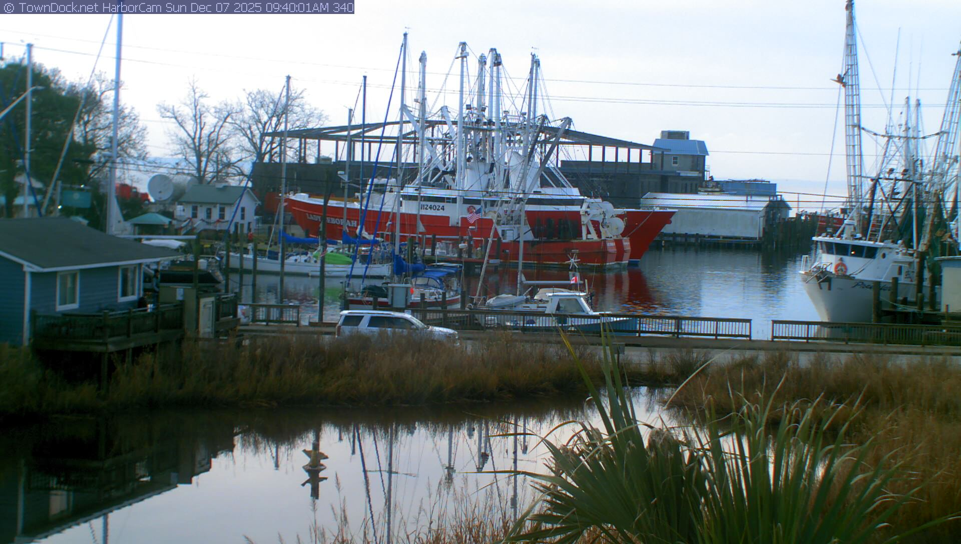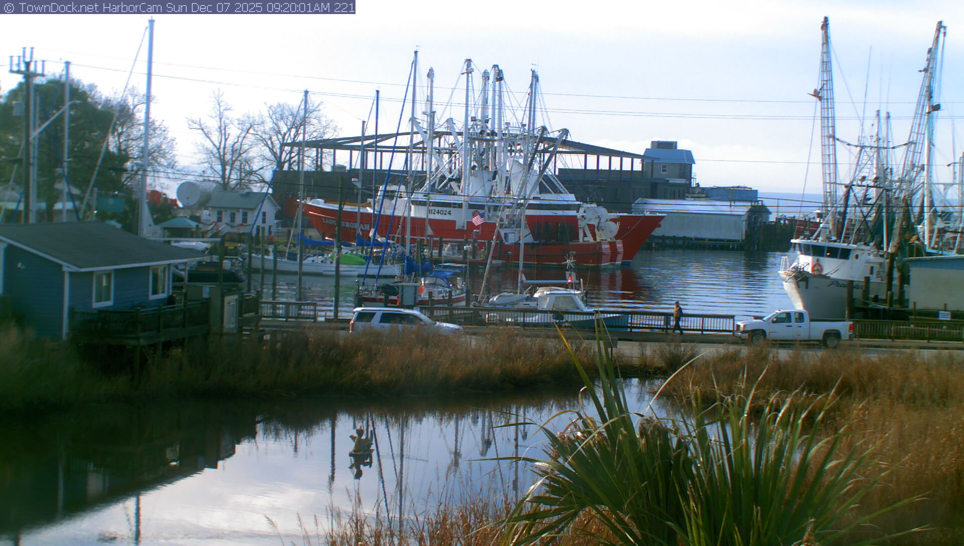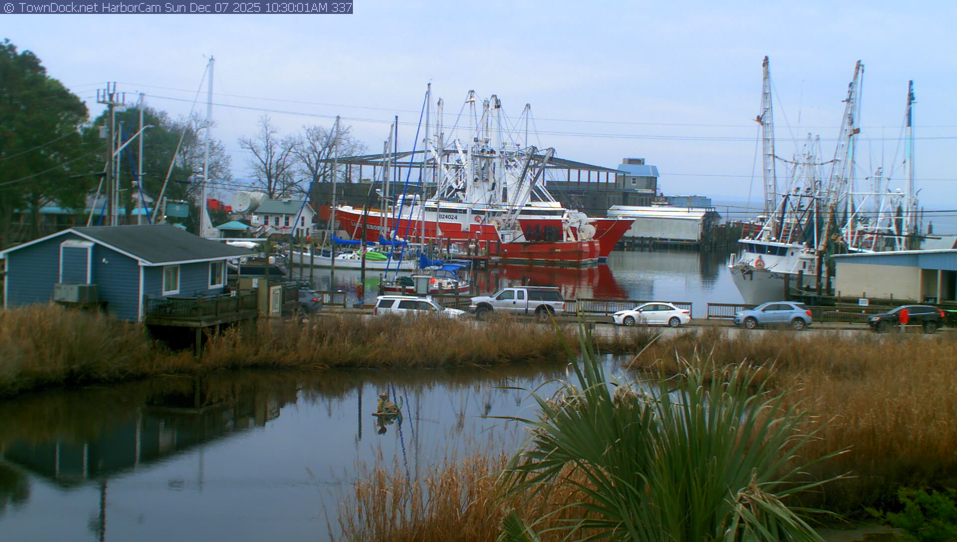 HarborCam takes a new picture of the Oriental harbor every five minutes from dawn til just before dusk. Click on the image to see a larger version. Once you see that larger version, you can click (see arrow at right) to go back in time and see recent photos. Harbor Cam currently takes photos from 6:00am to 5:20pm.