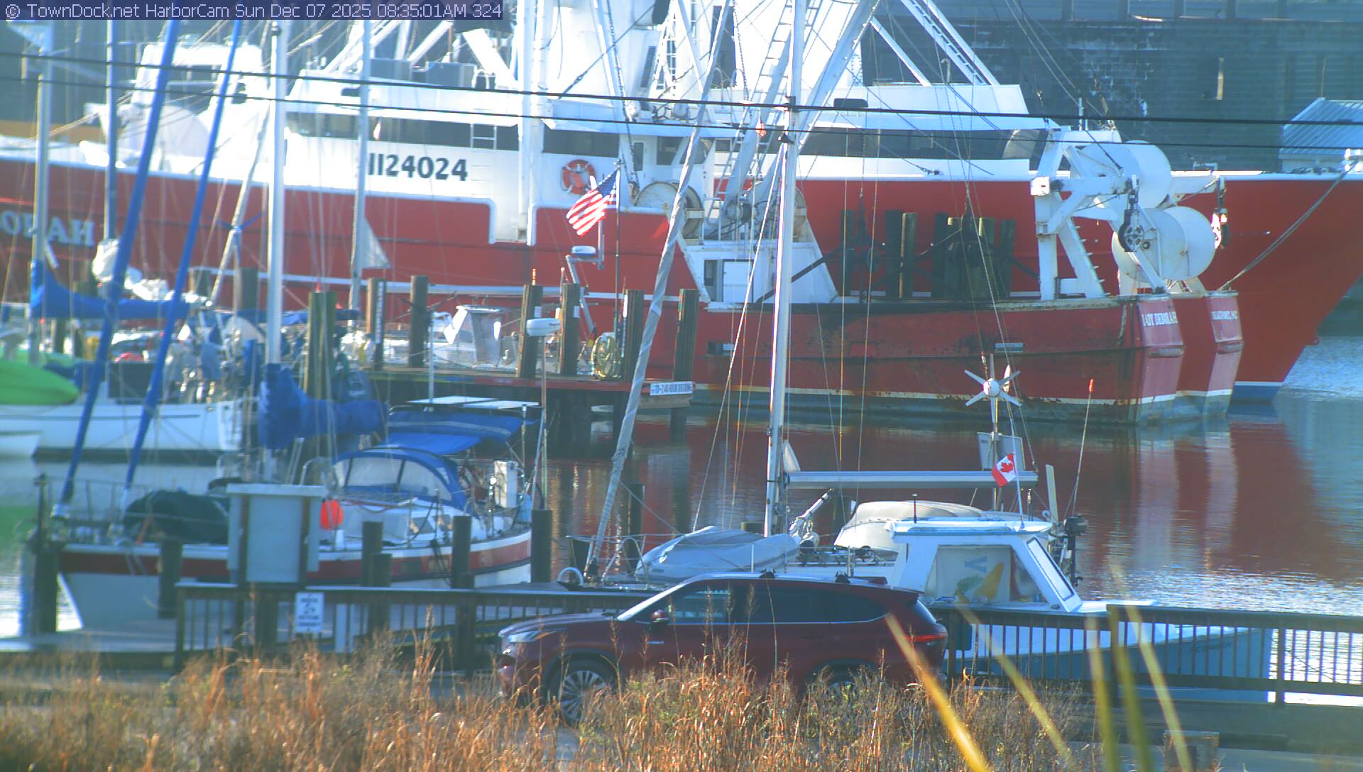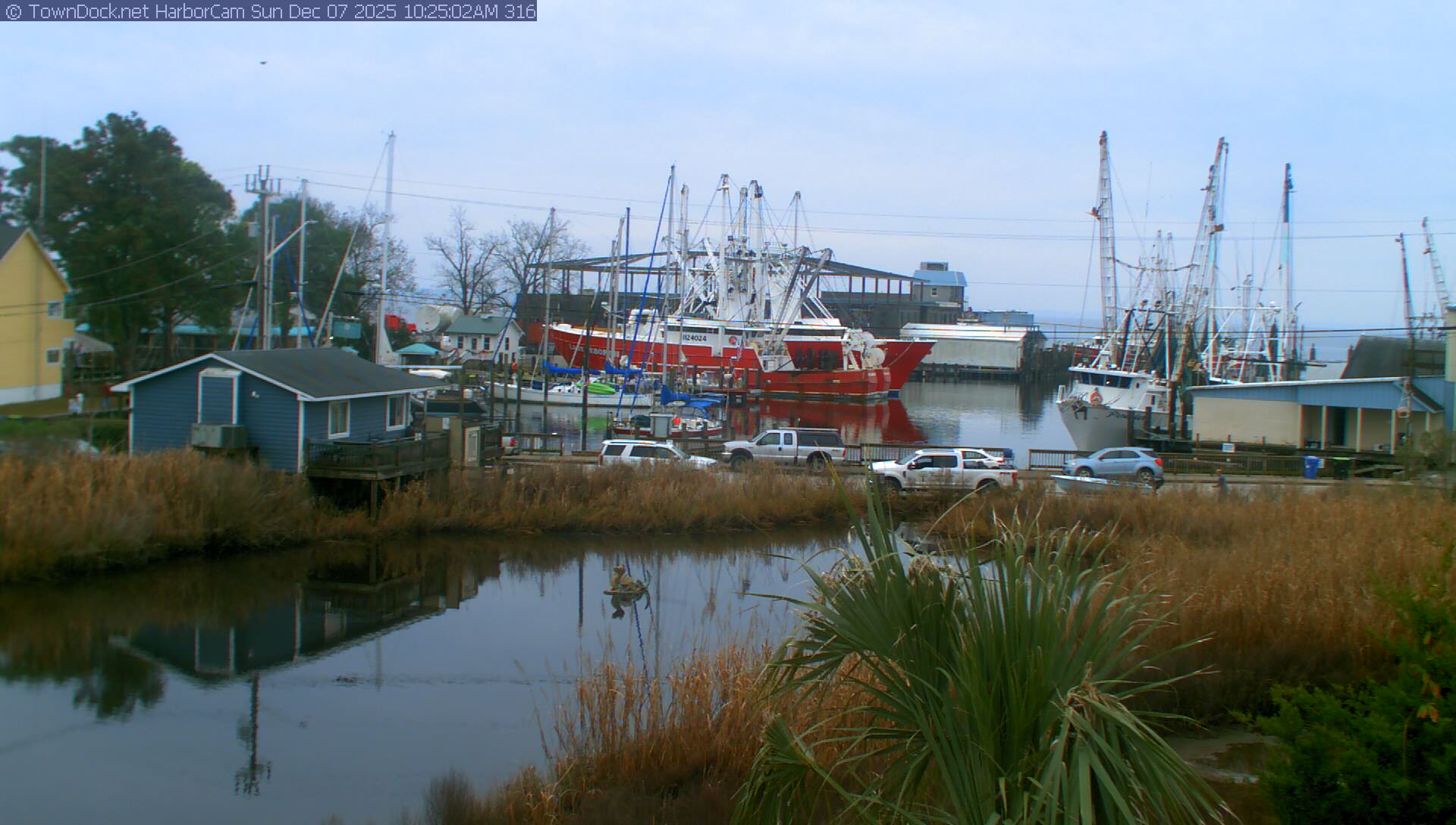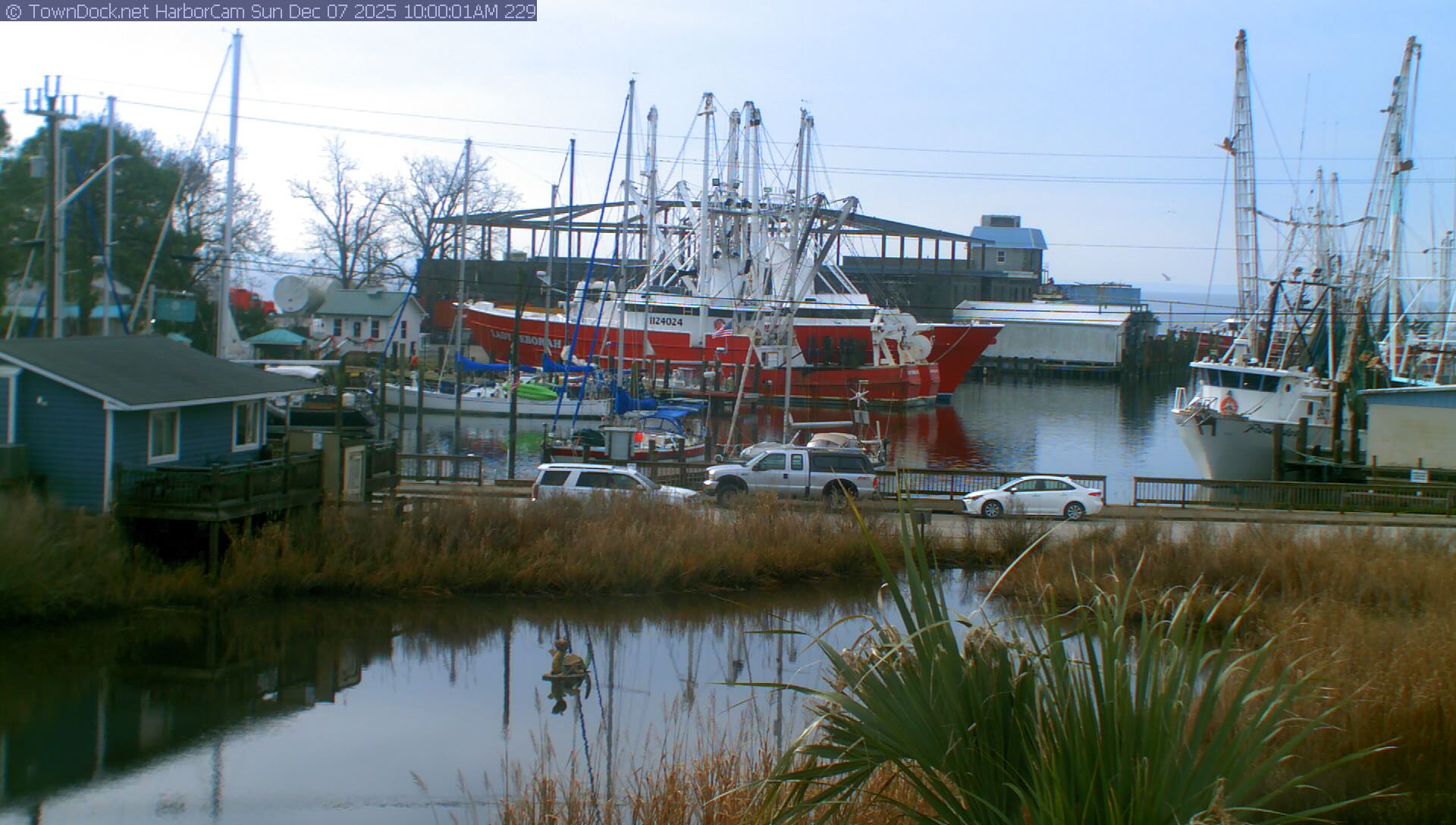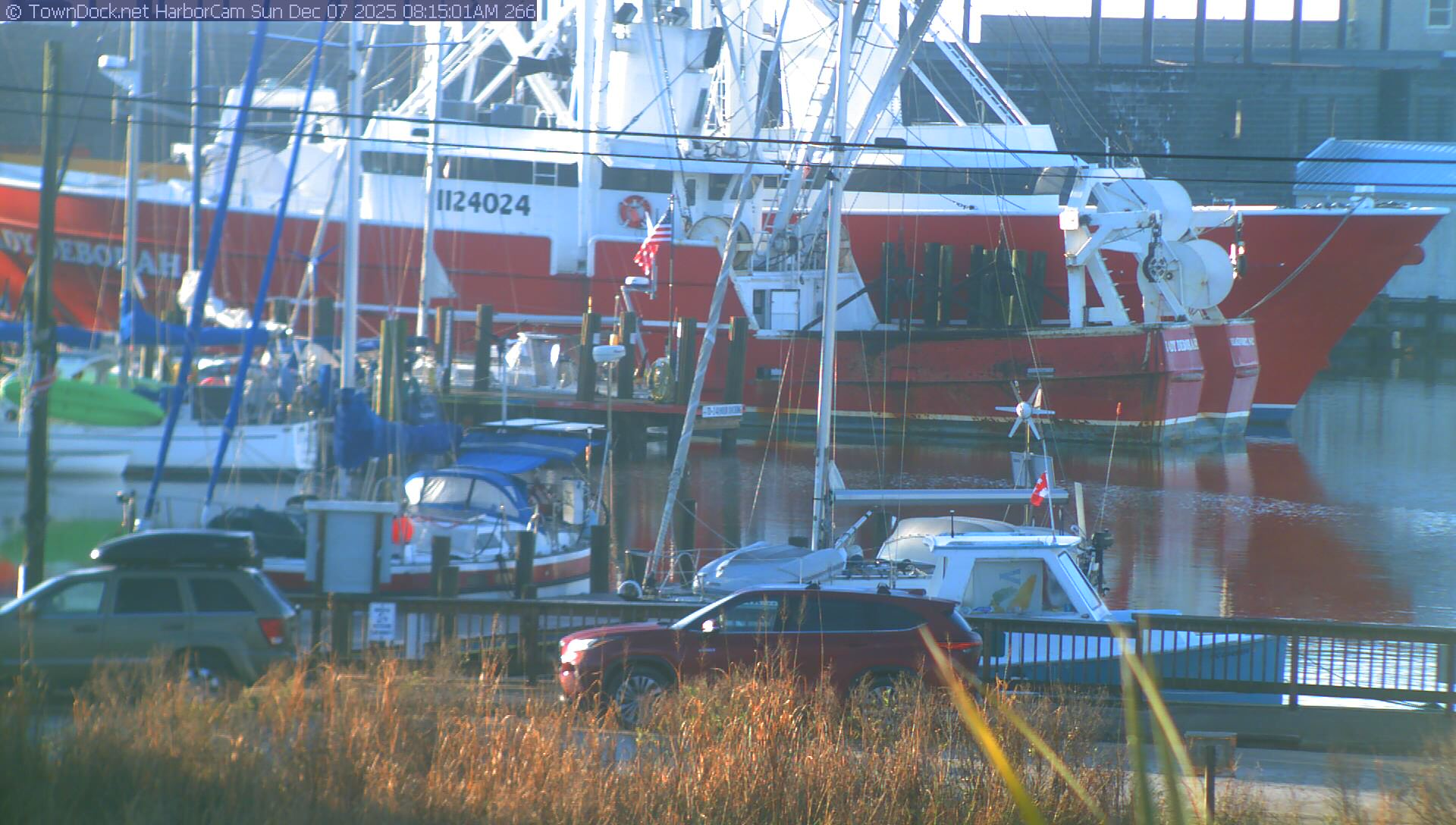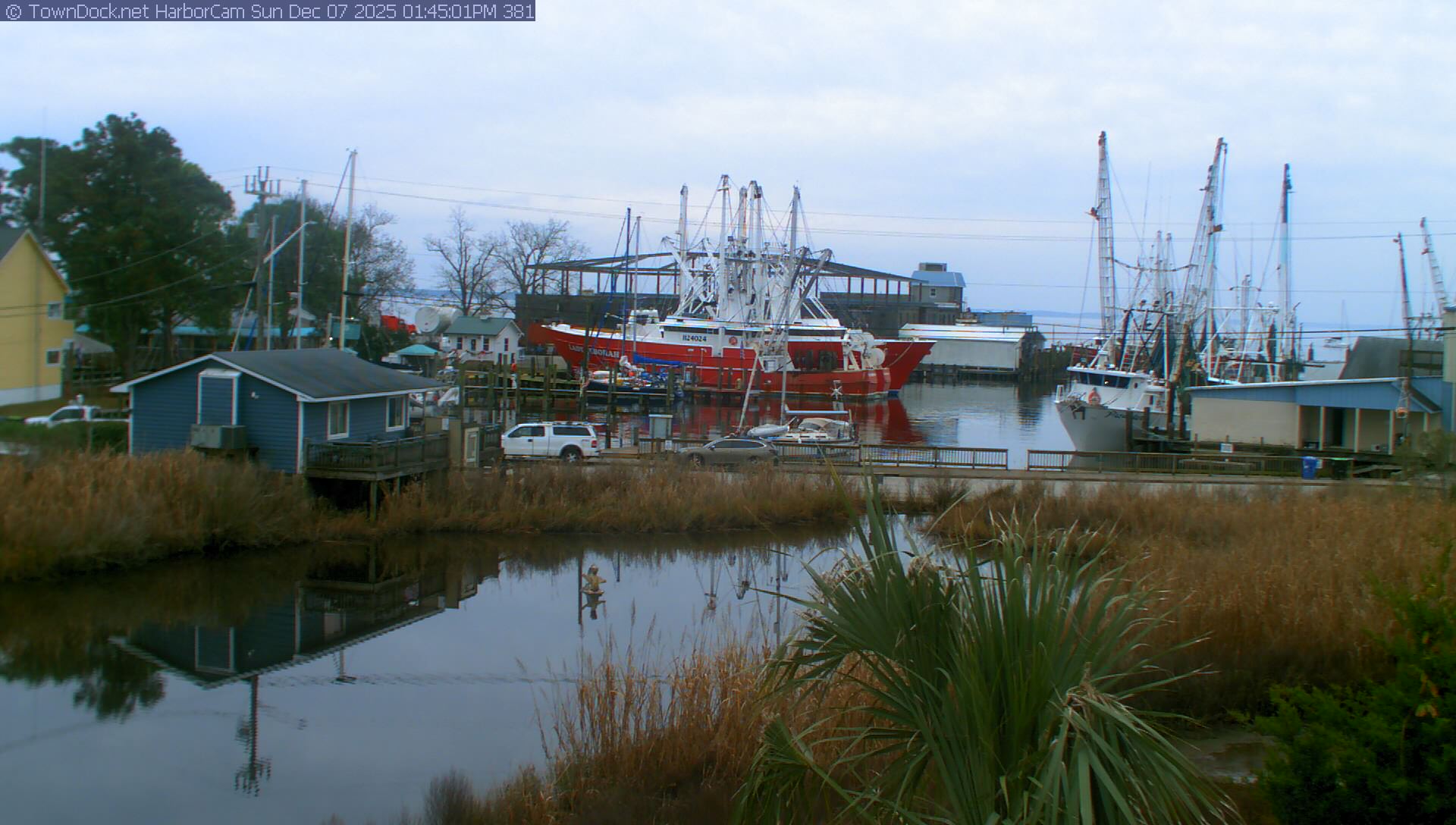 HarborCam takes a new picture of the Oriental harbor every five minutes from dawn til just before dusk. Click on the image to see a larger version. Once you see that larger version, you can click (see arrow at right) to go back in time and see recent photos. Harbor Cam currently takes photos from 6:00am to 5:20pm.