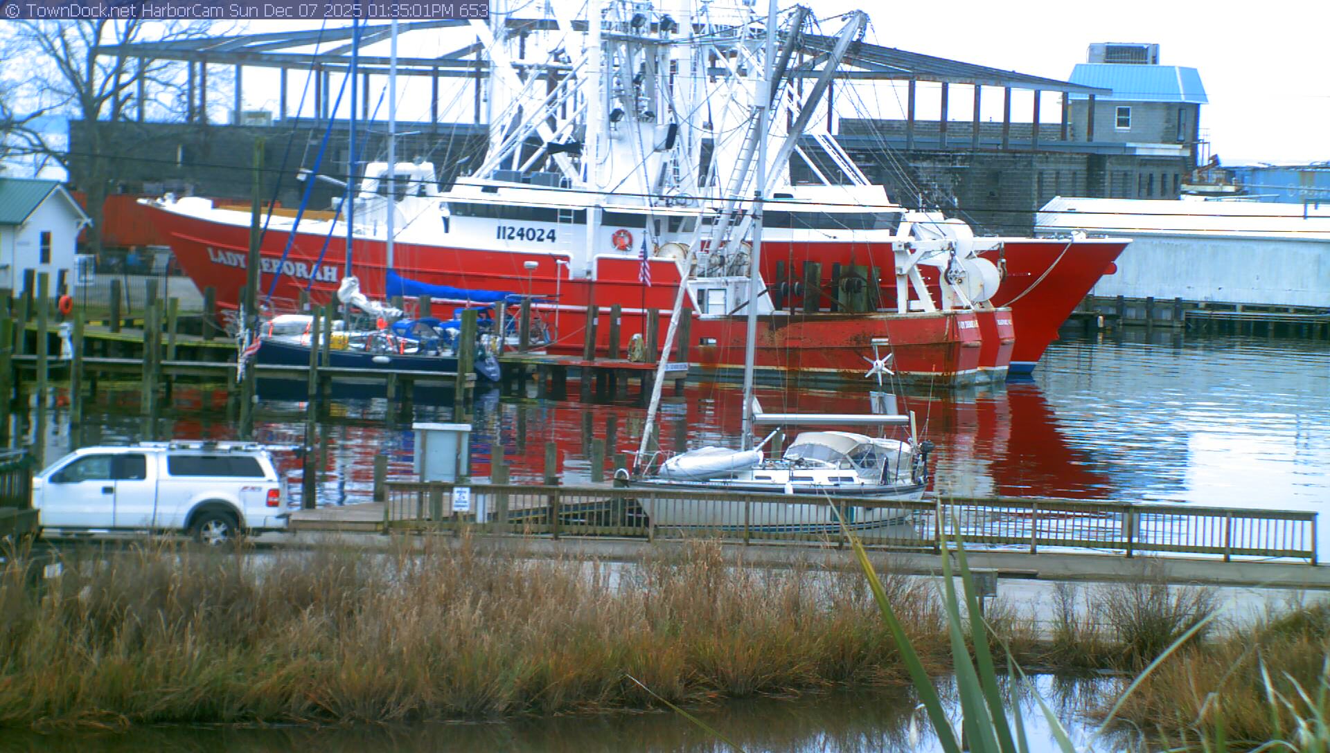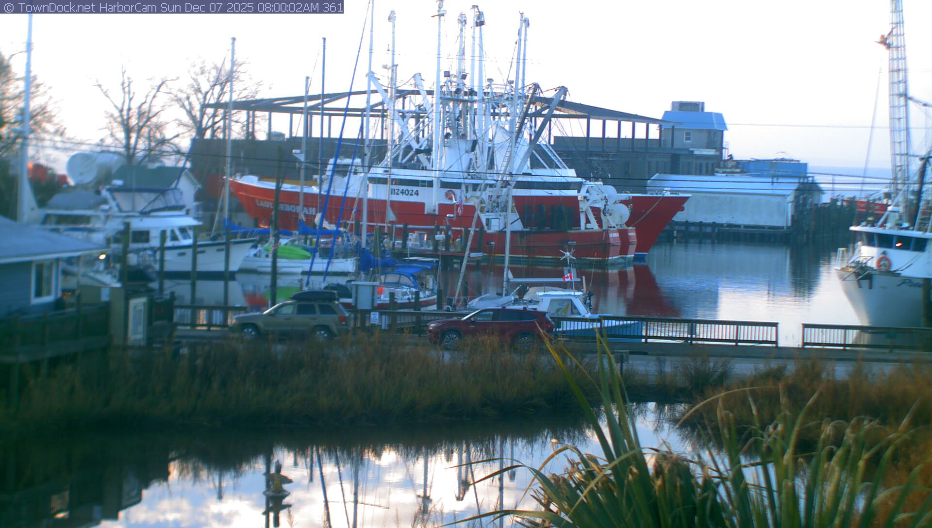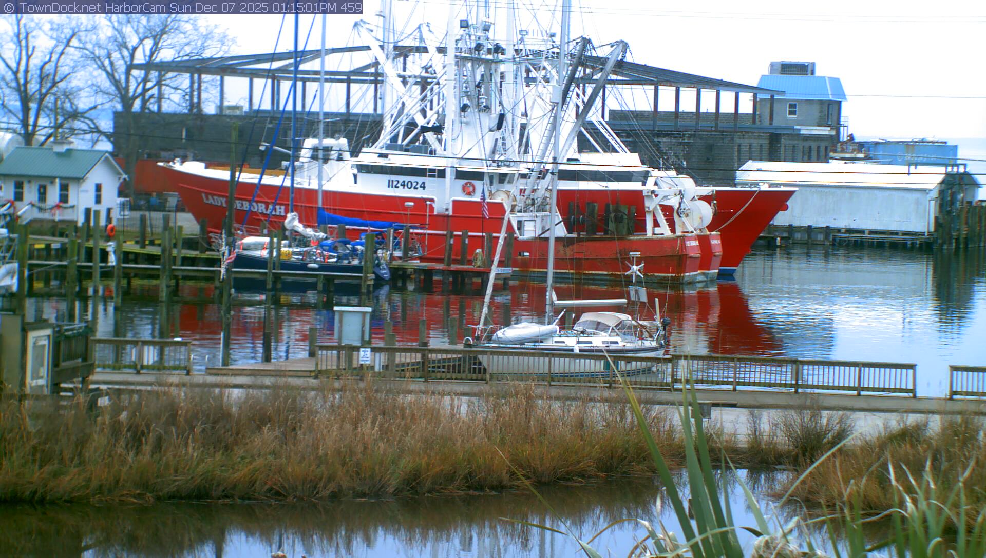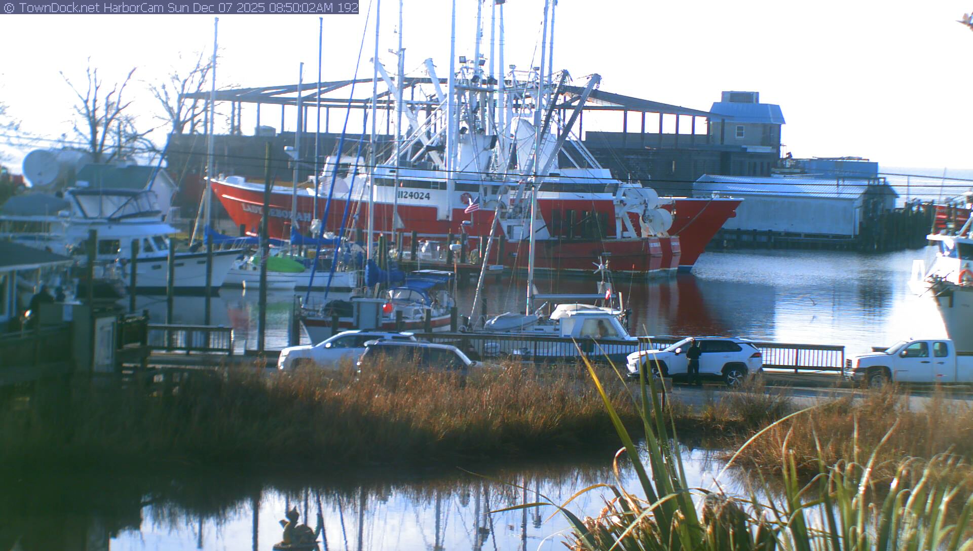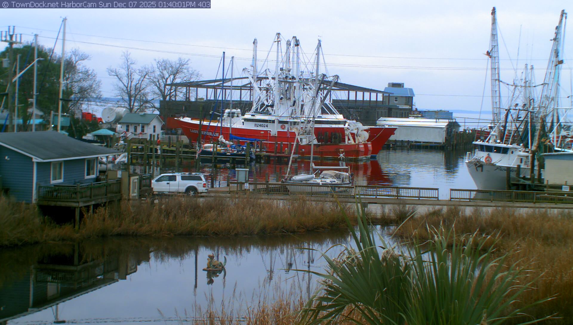 HarborCam takes a new picture of the Oriental harbor every five minutes from dawn til just before dusk. Click on the image to see a larger version. Once you see that larger version, you can click (see arrow at right) to go back in time and see recent photos. Harbor Cam currently takes photos from 6:00am to 5:20pm.