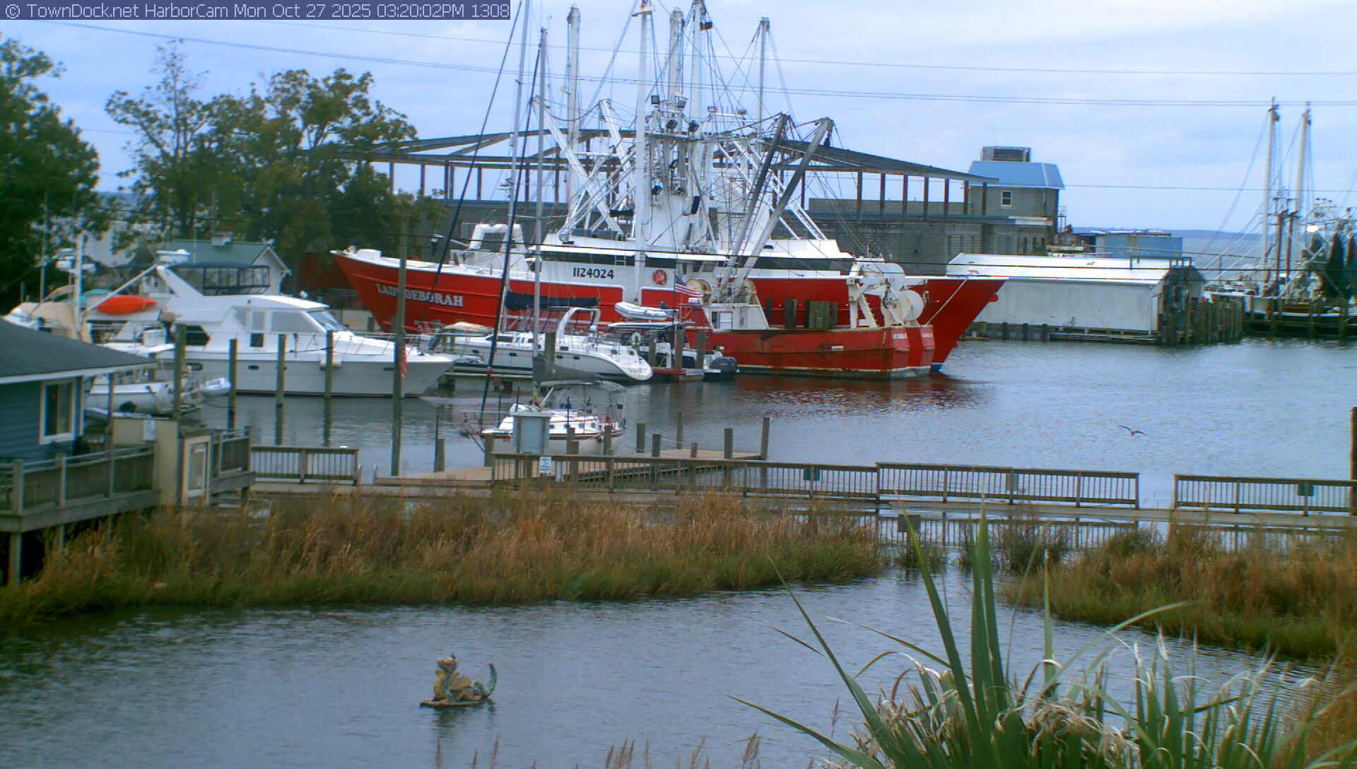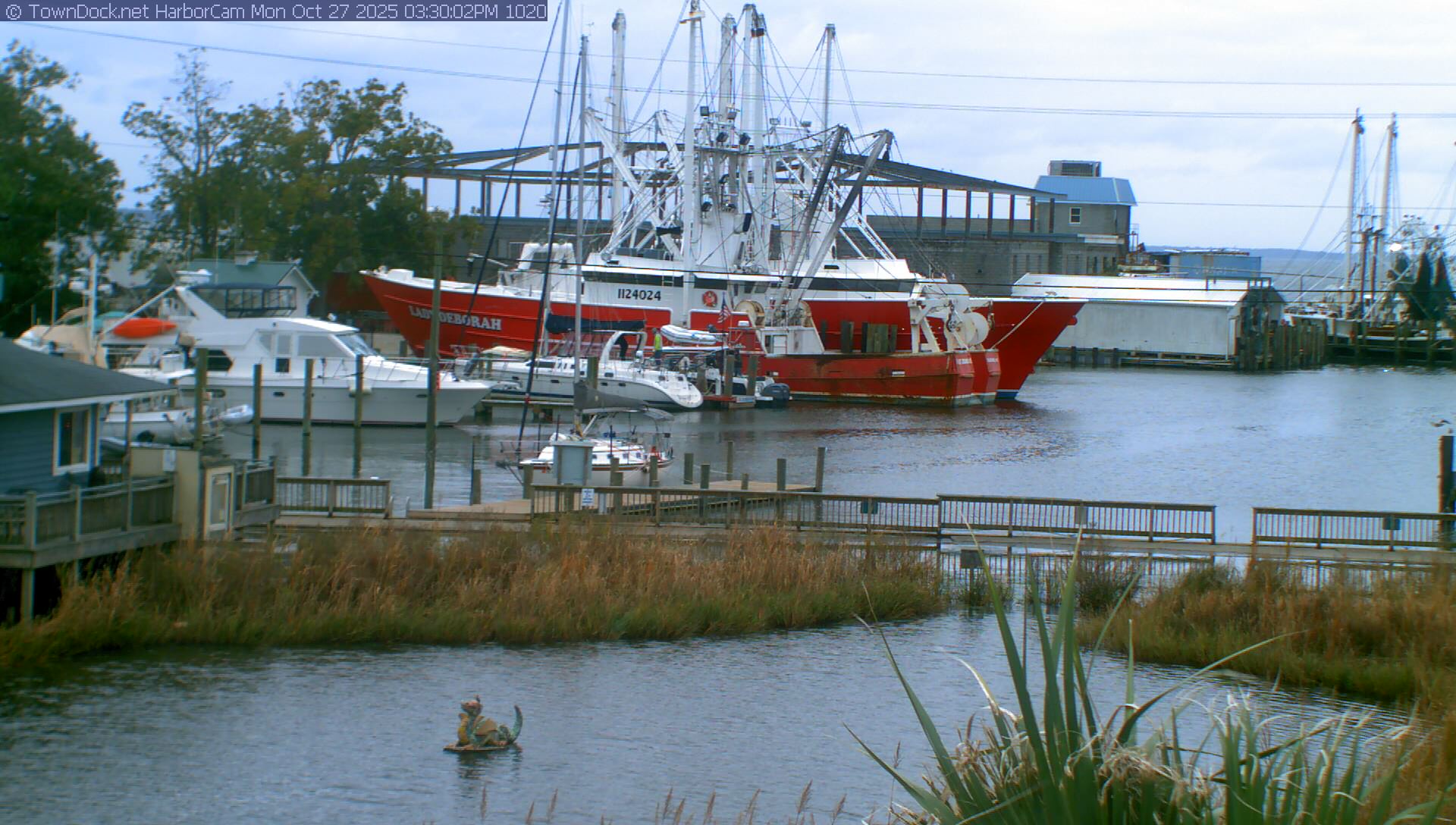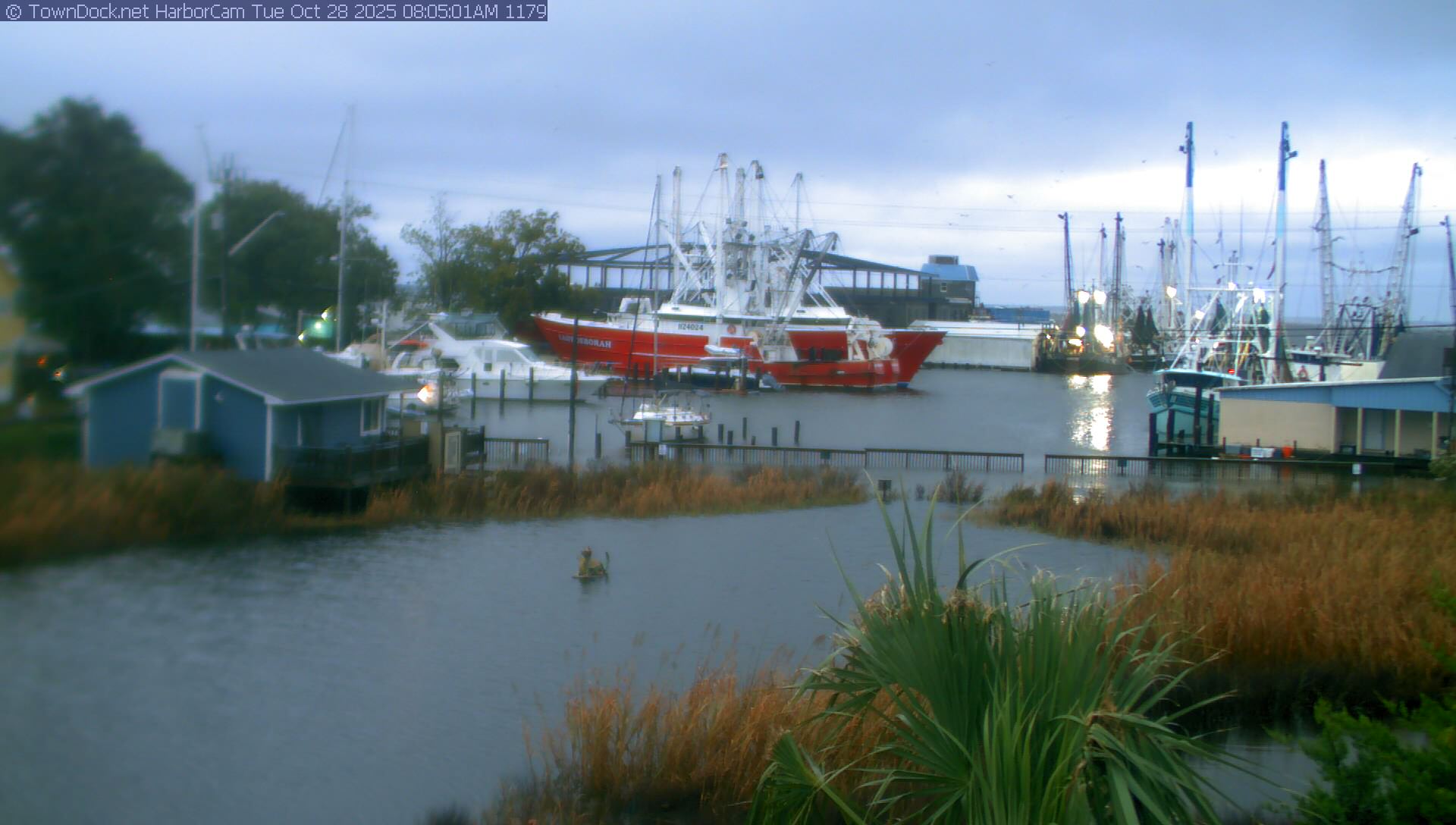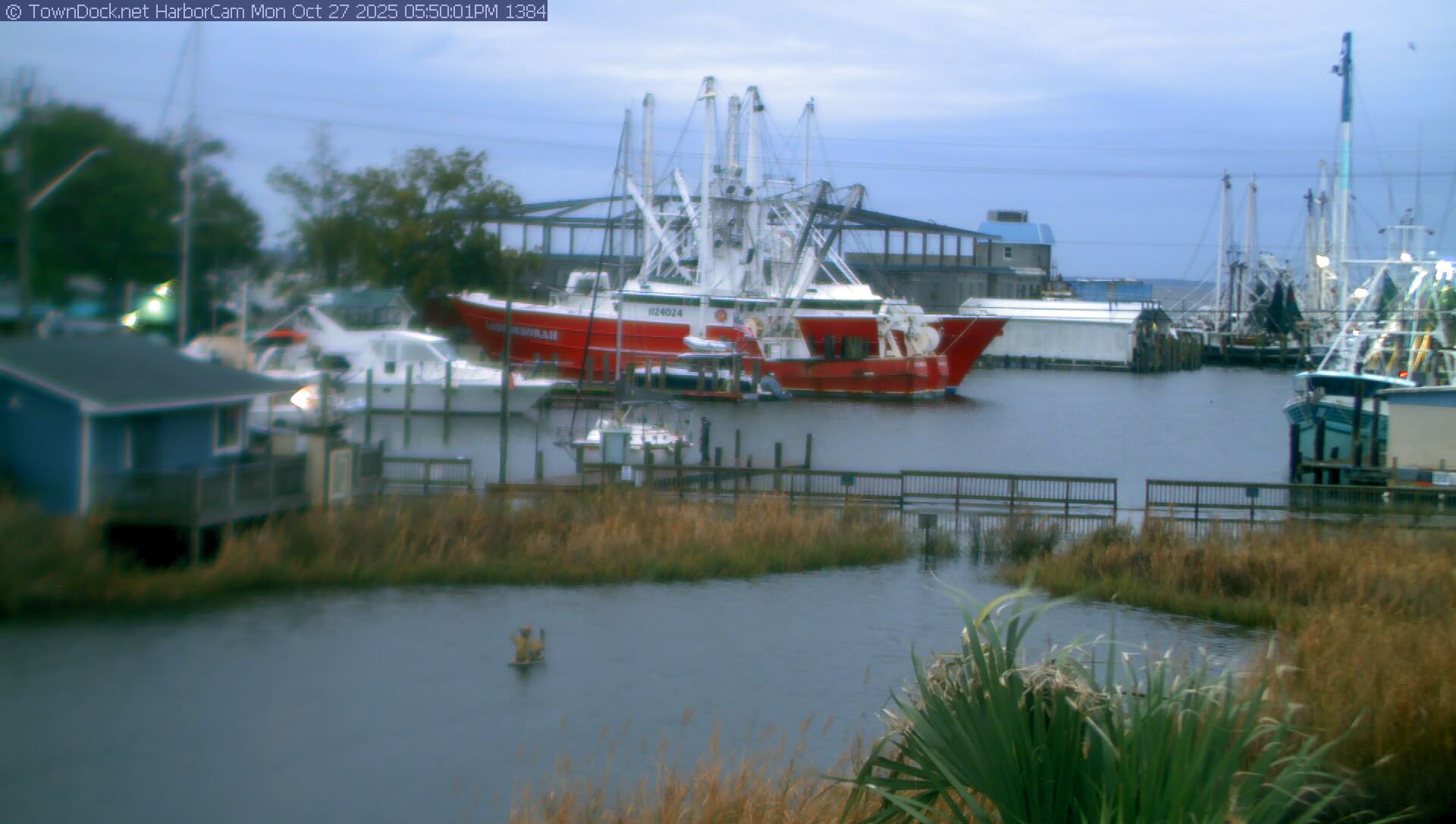 HarborCam takes a new picture of the Oriental harbor every five minutes from dawn til just before dusk. Click on the image to see a larger version. Once you see that larger version, you can click (see arrow at right) to go back in time and see recent photos. Harbor Cam currently takes photos from 6:30am to 6:40pm.