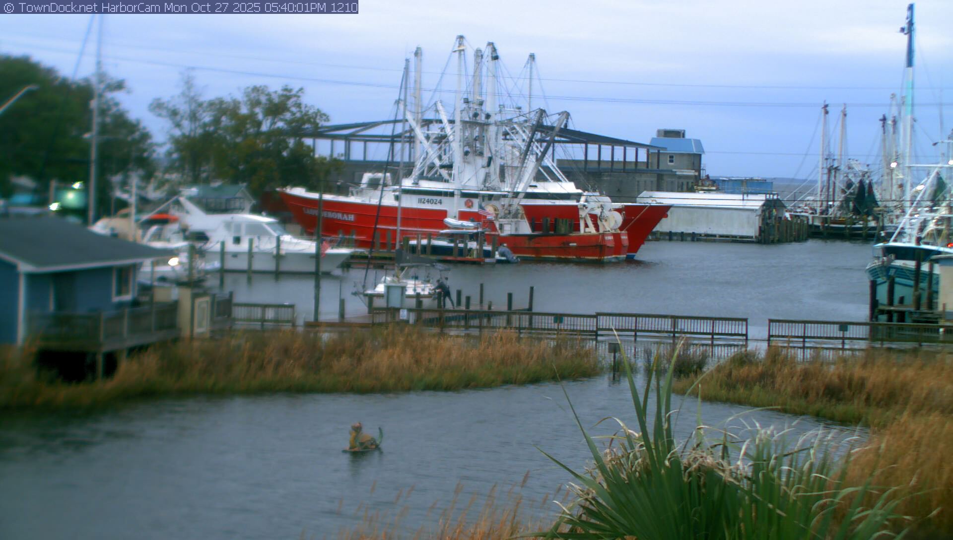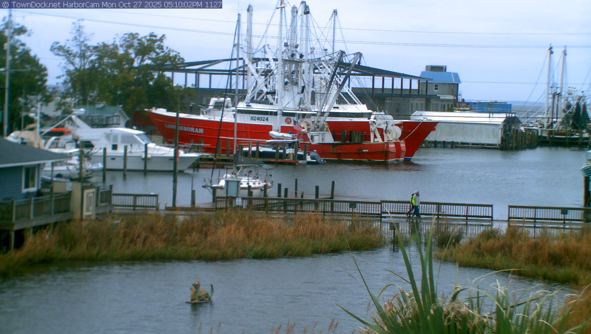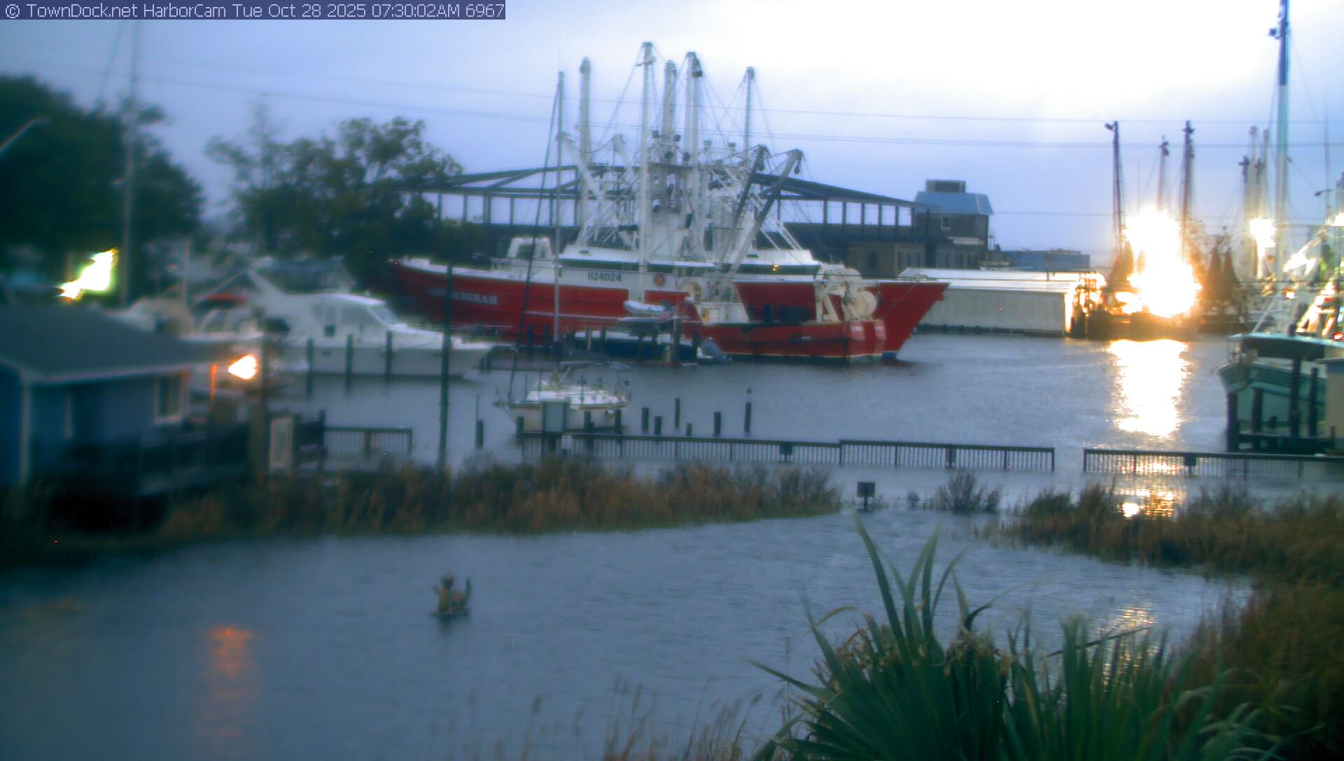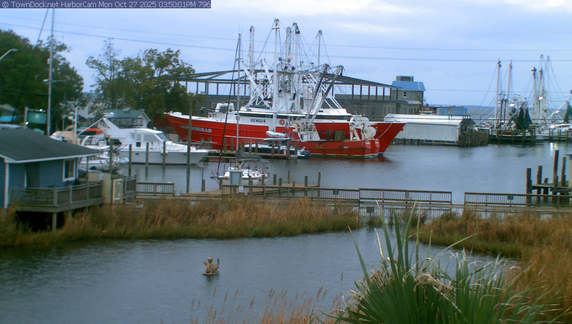 HarborCam takes a new picture of the Oriental harbor every five minutes from dawn til just before dusk. Click on the image to see a larger version. Once you see that larger version, you can click (see arrow at right) to go back in time and see recent photos. Harbor Cam currently takes photos from 6:30am to 6:40pm.