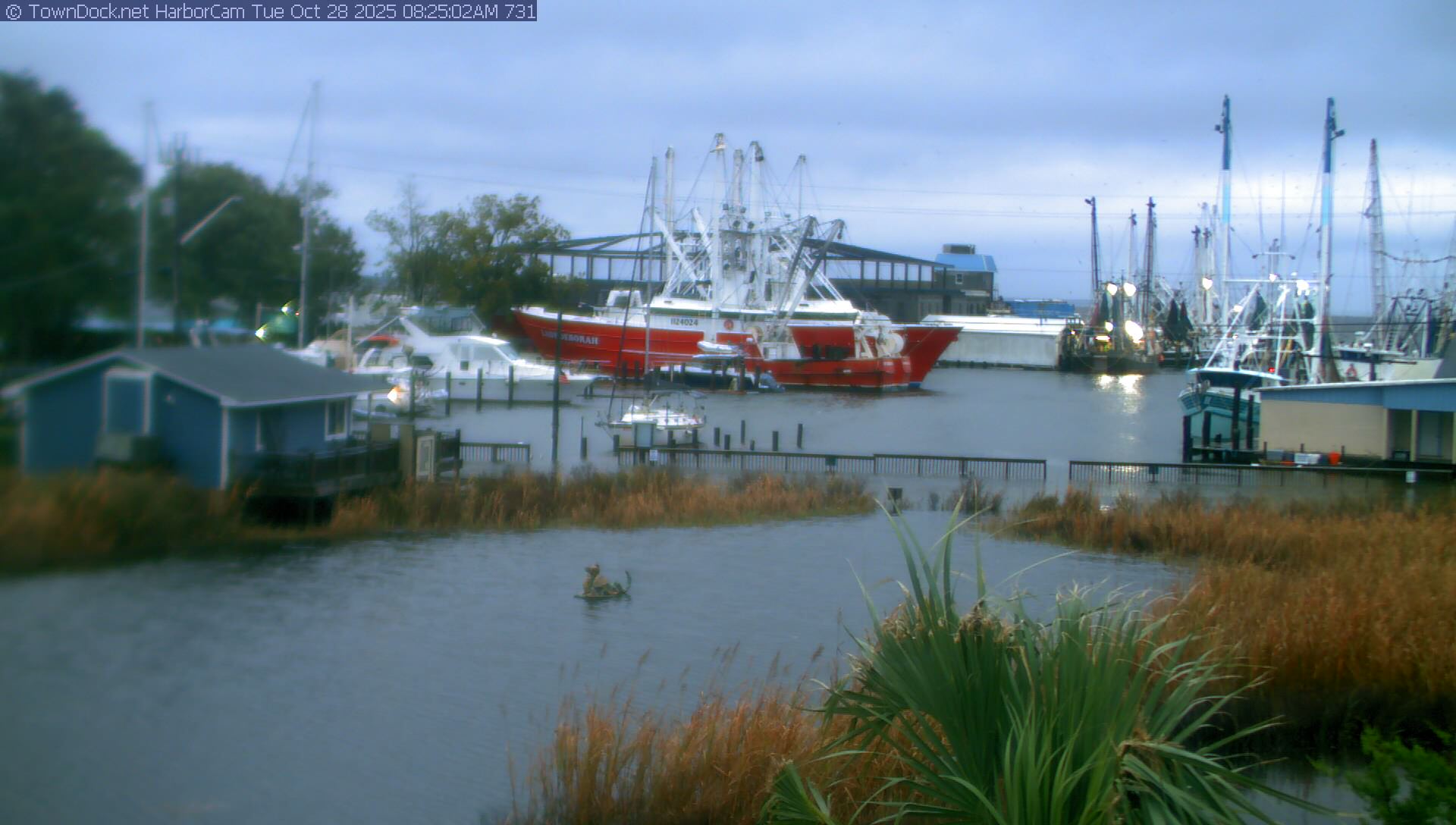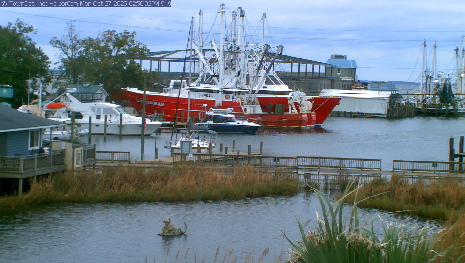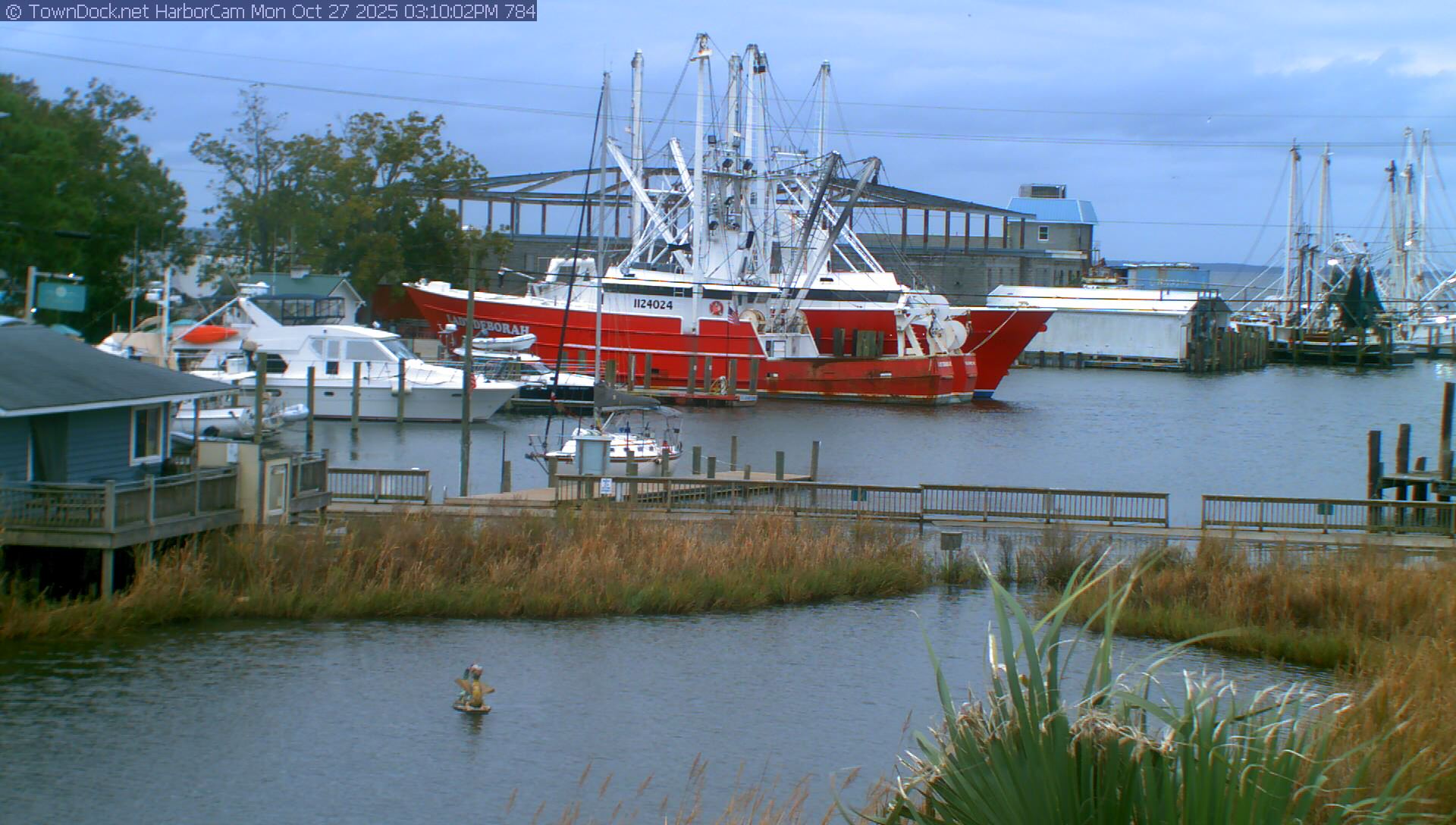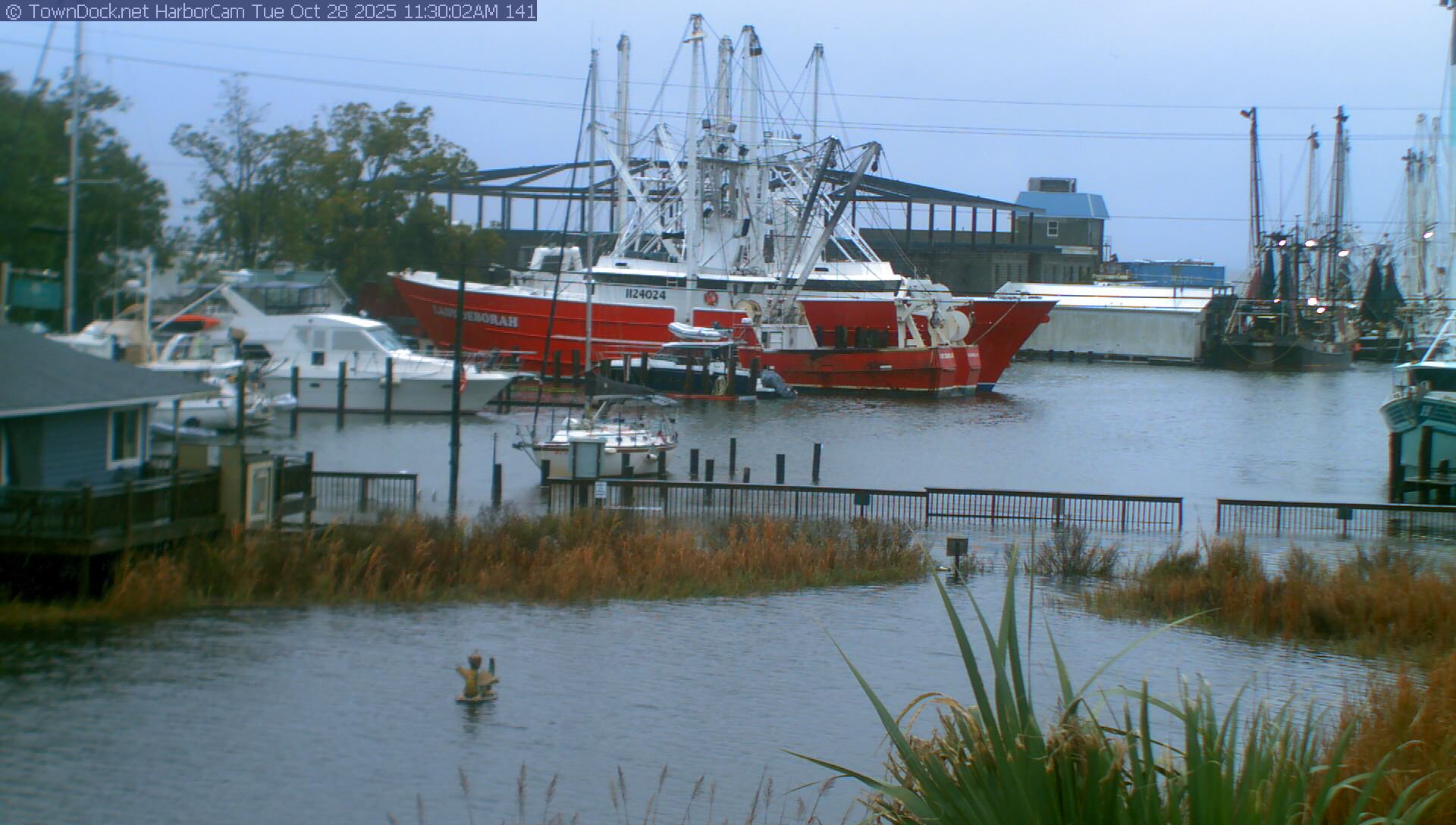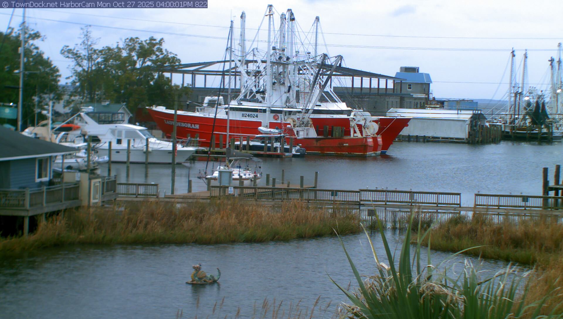 HarborCam takes a new picture of the Oriental harbor every five minutes from dawn til just before dusk. Click on the image to see a larger version. Once you see that larger version, you can click (see arrow at right) to go back in time and see recent photos. Harbor Cam currently takes photos from 6:30am to 6:40pm.