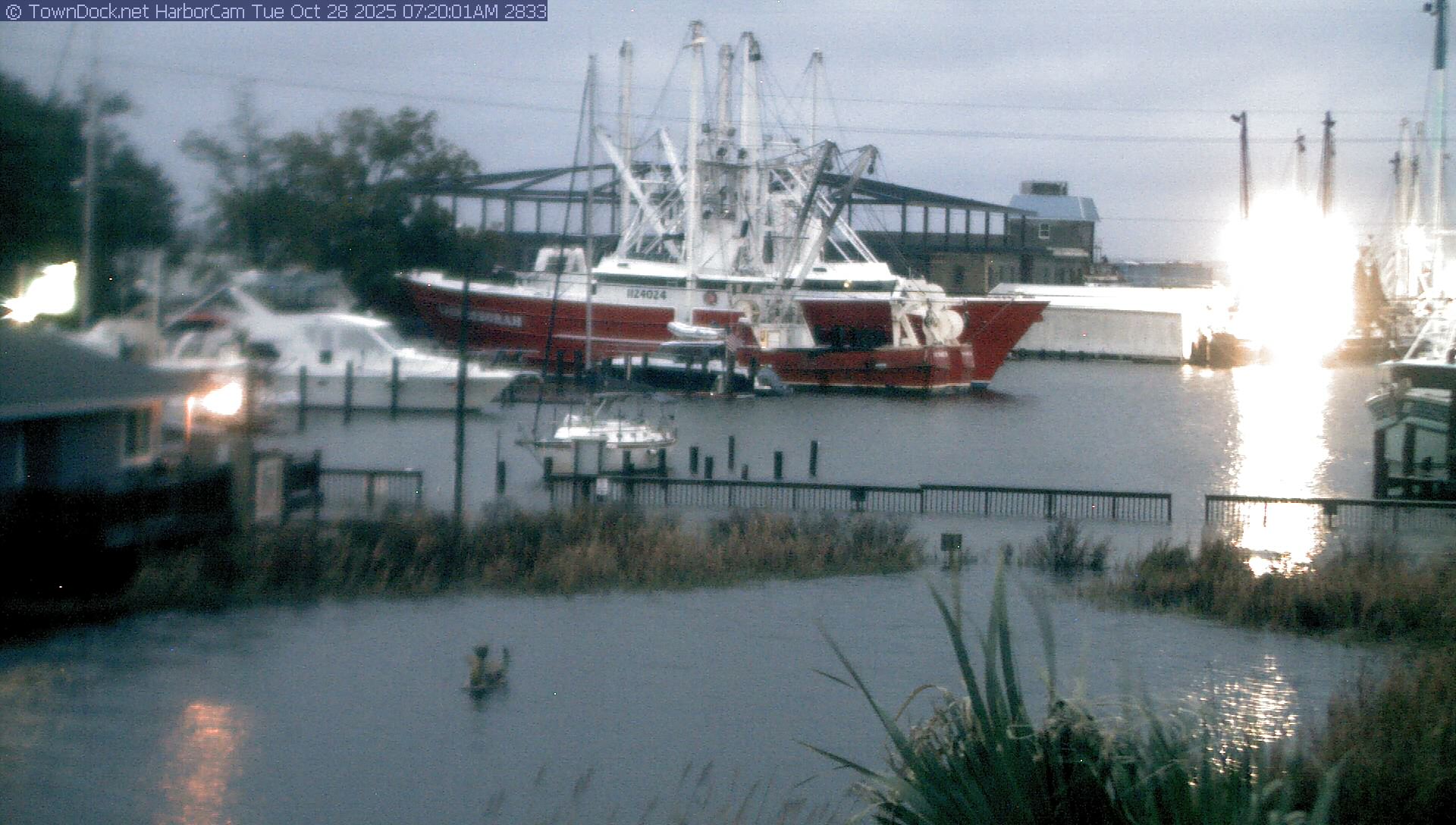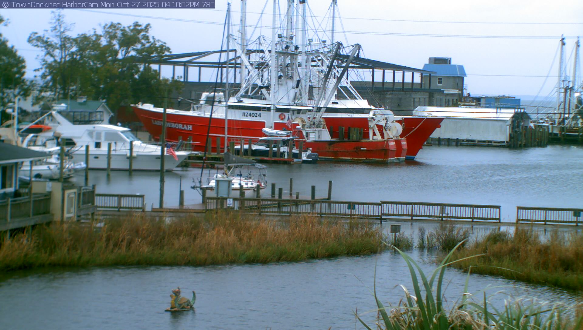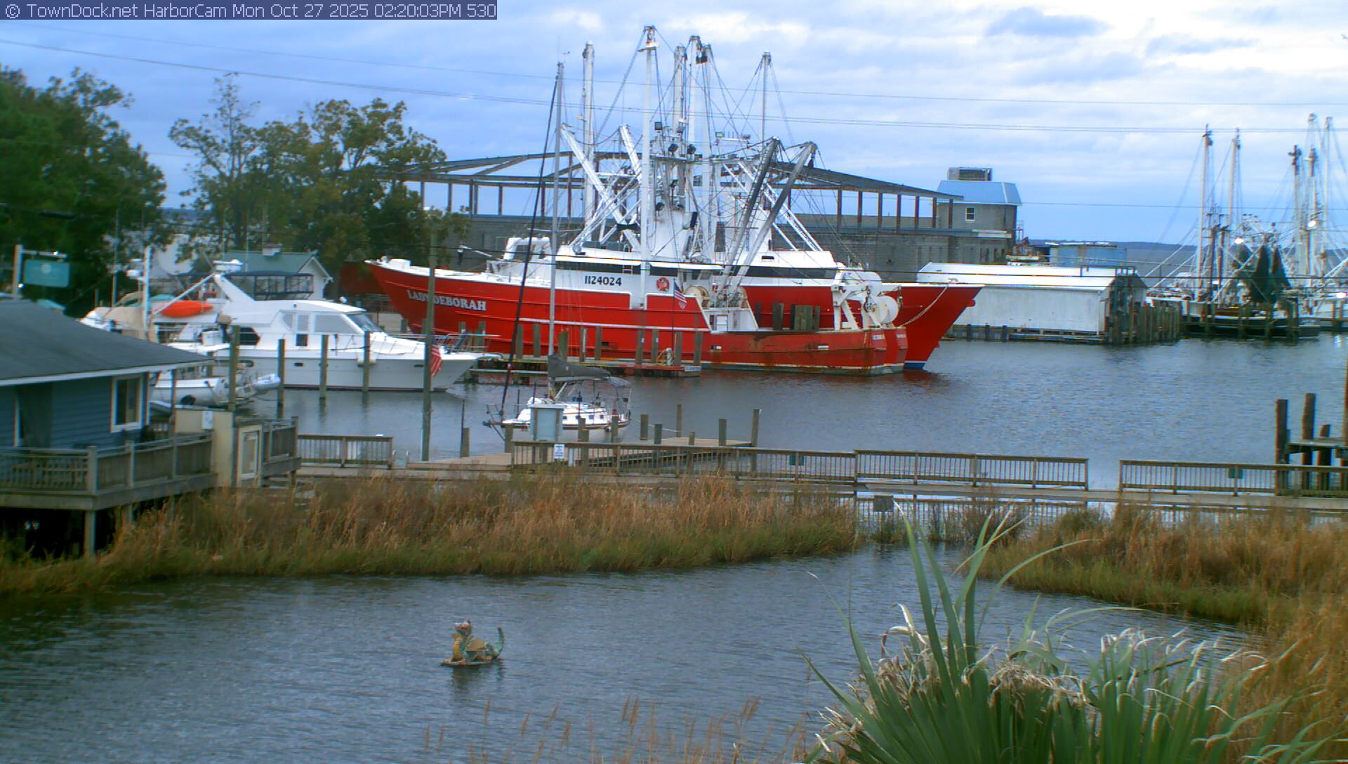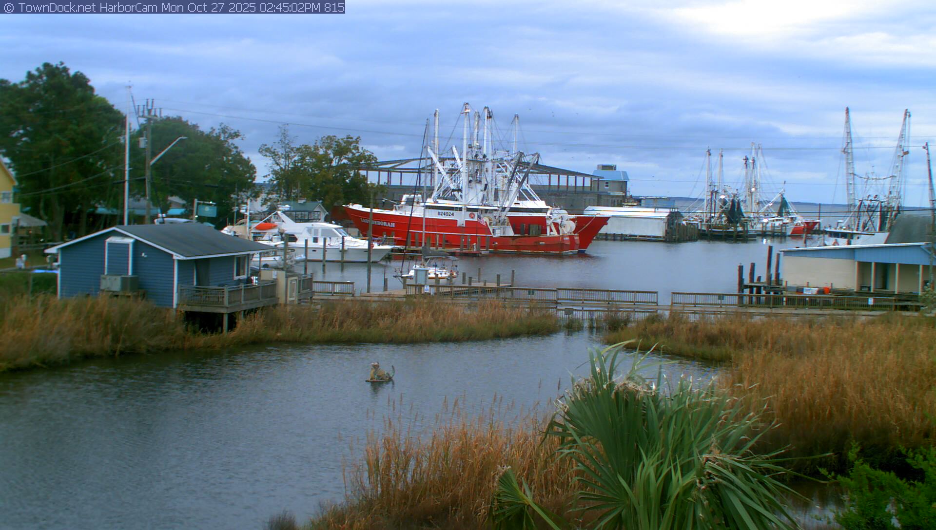 HarborCam takes a new picture of the Oriental harbor every five minutes from dawn til just before dusk. Click on the image to see a larger version. Once you see that larger version, you can click (see arrow at right) to go back in time and see recent photos. Harbor Cam currently takes photos from 6:30am to 6:40pm.