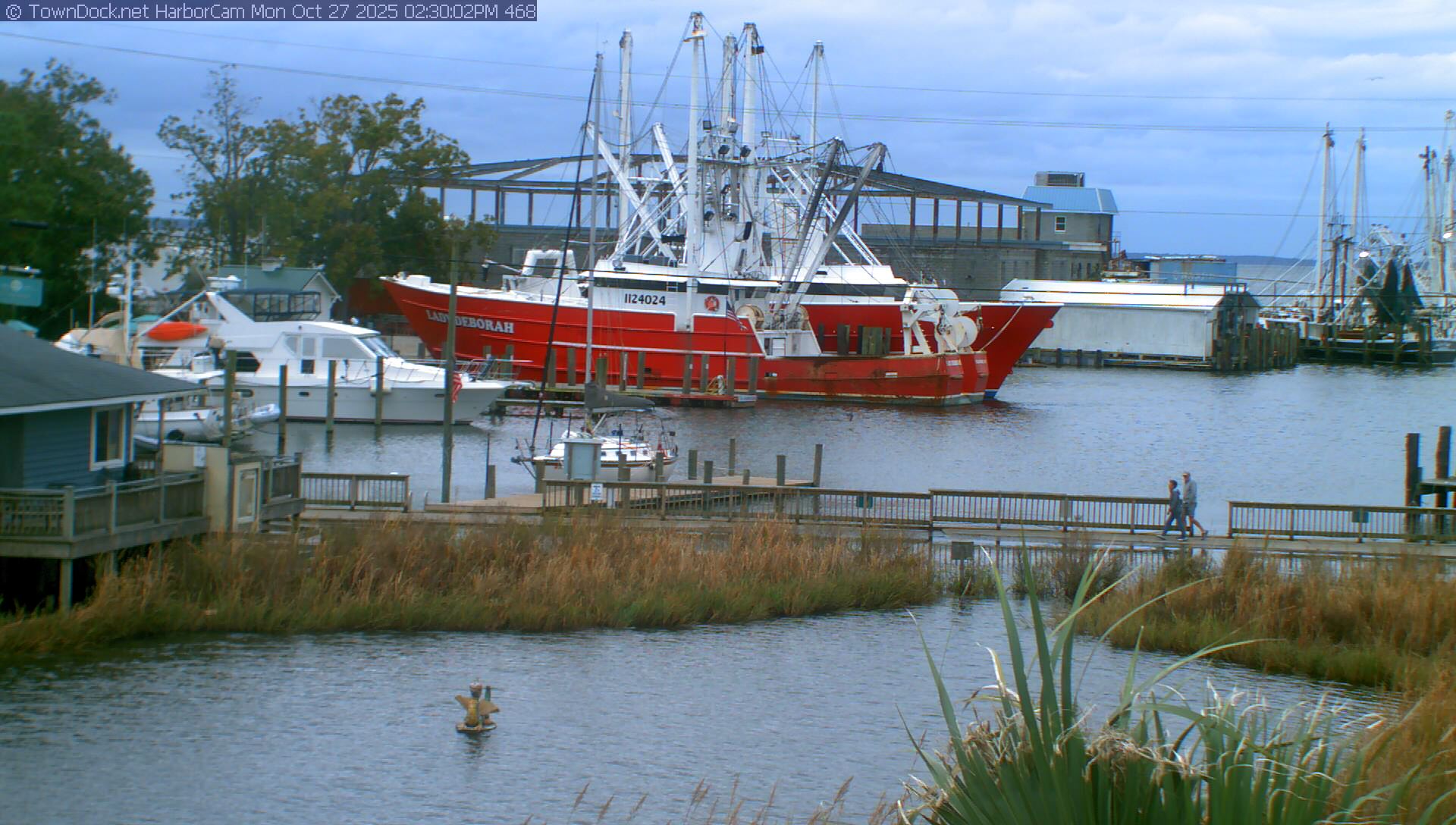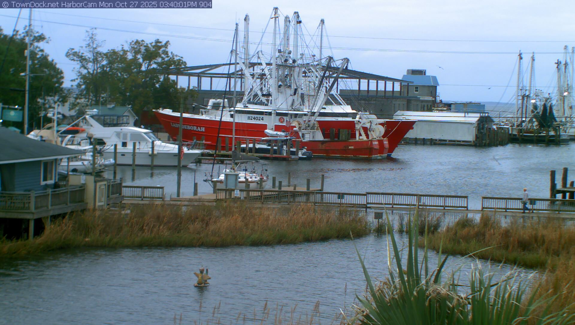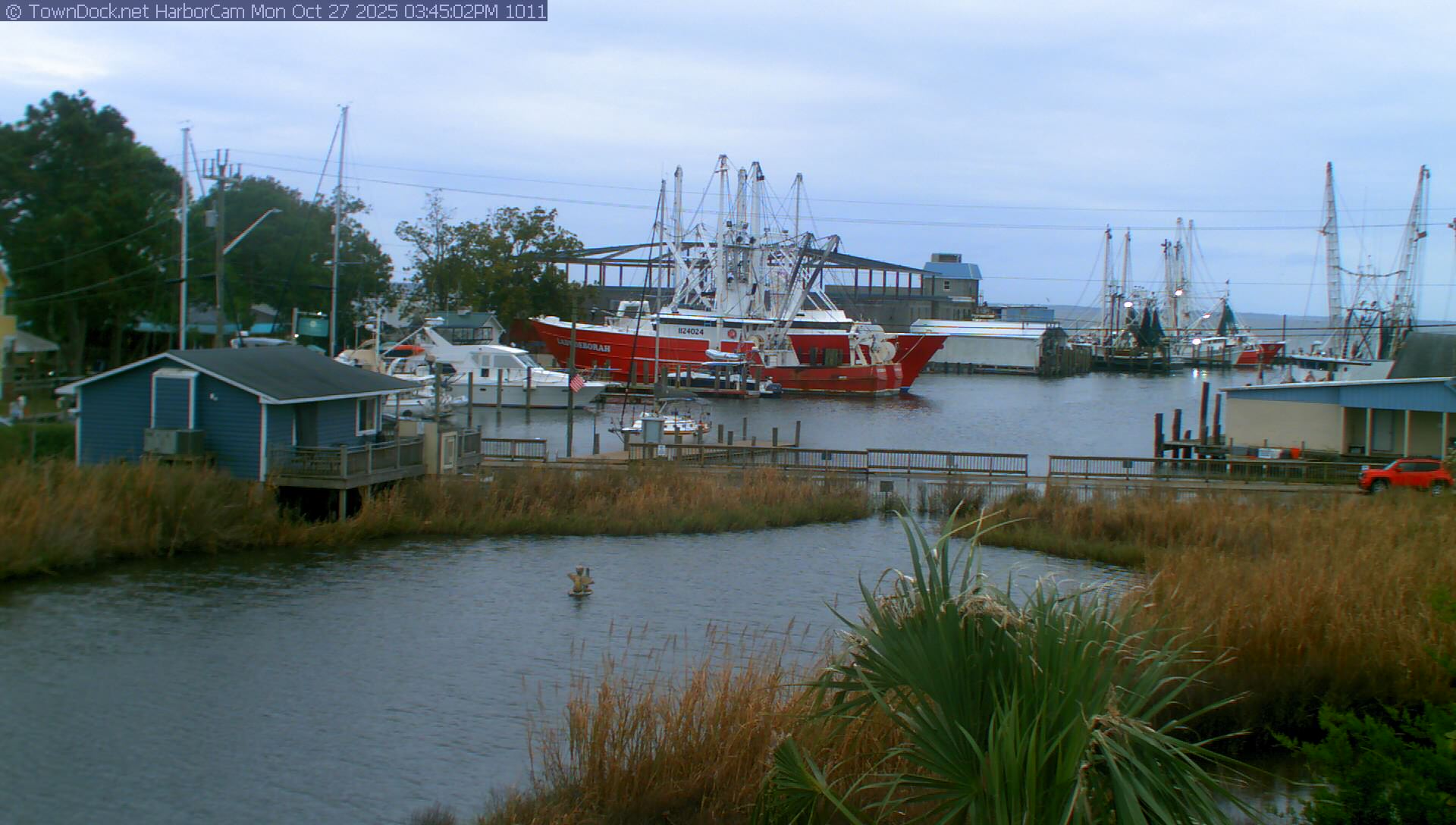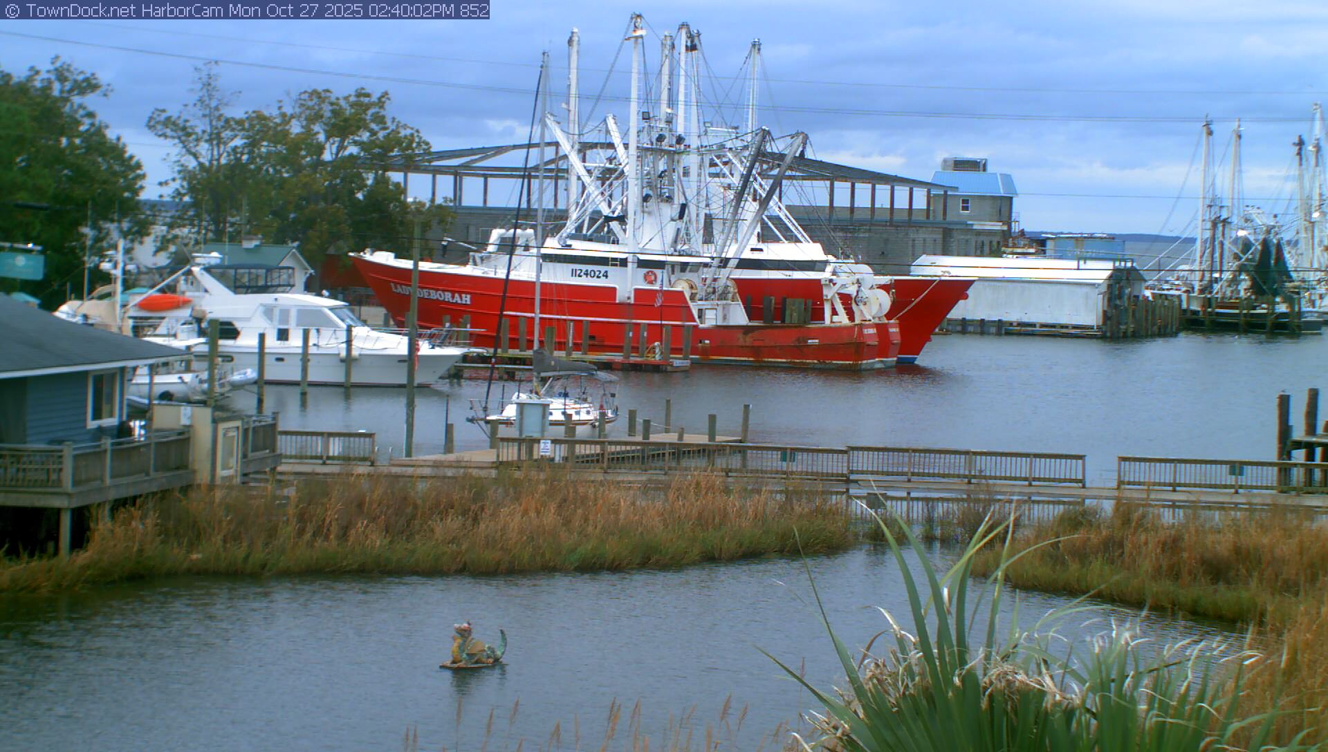 HarborCam takes a new picture of the Oriental harbor every five minutes from dawn til just before dusk. Click on the image to see a larger version. Once you see that larger version, you can click (see arrow at right) to go back in time and see recent photos. Harbor Cam currently takes photos from 6:30am to 6:40pm.