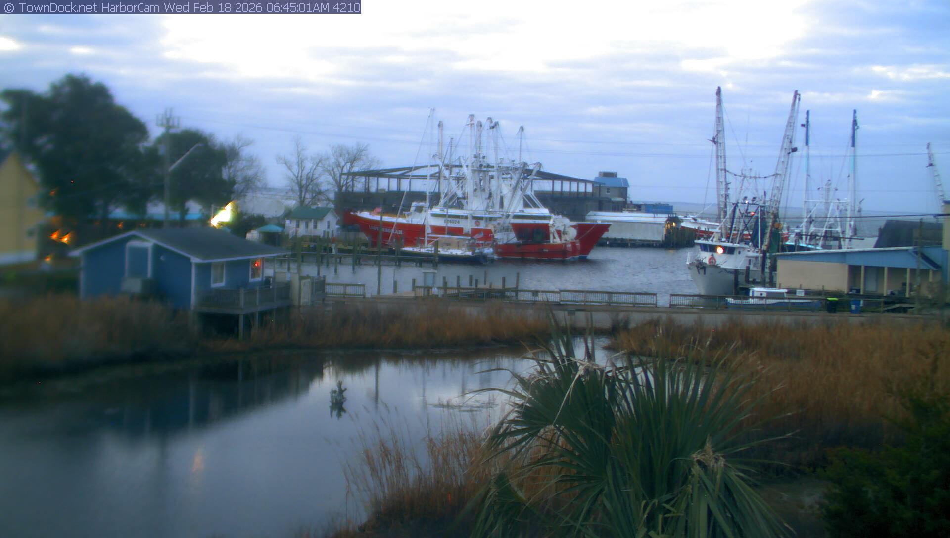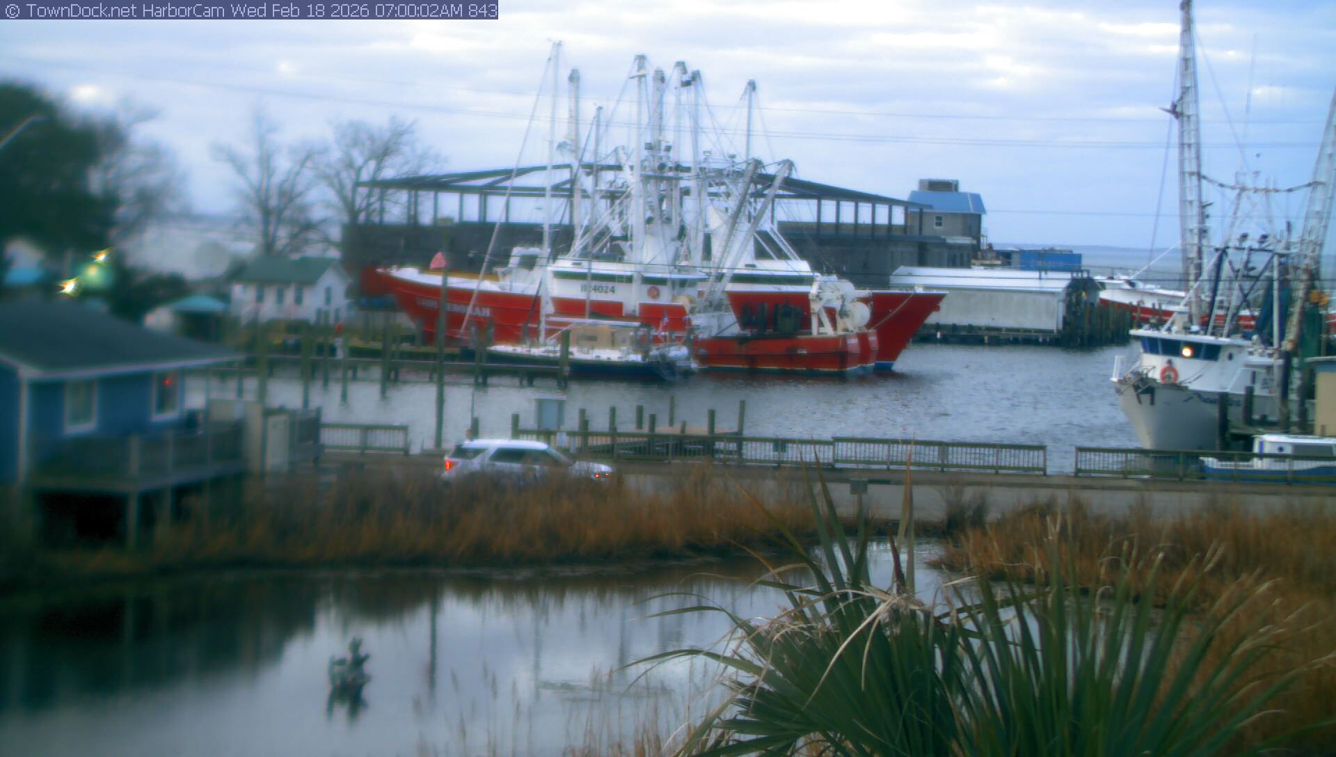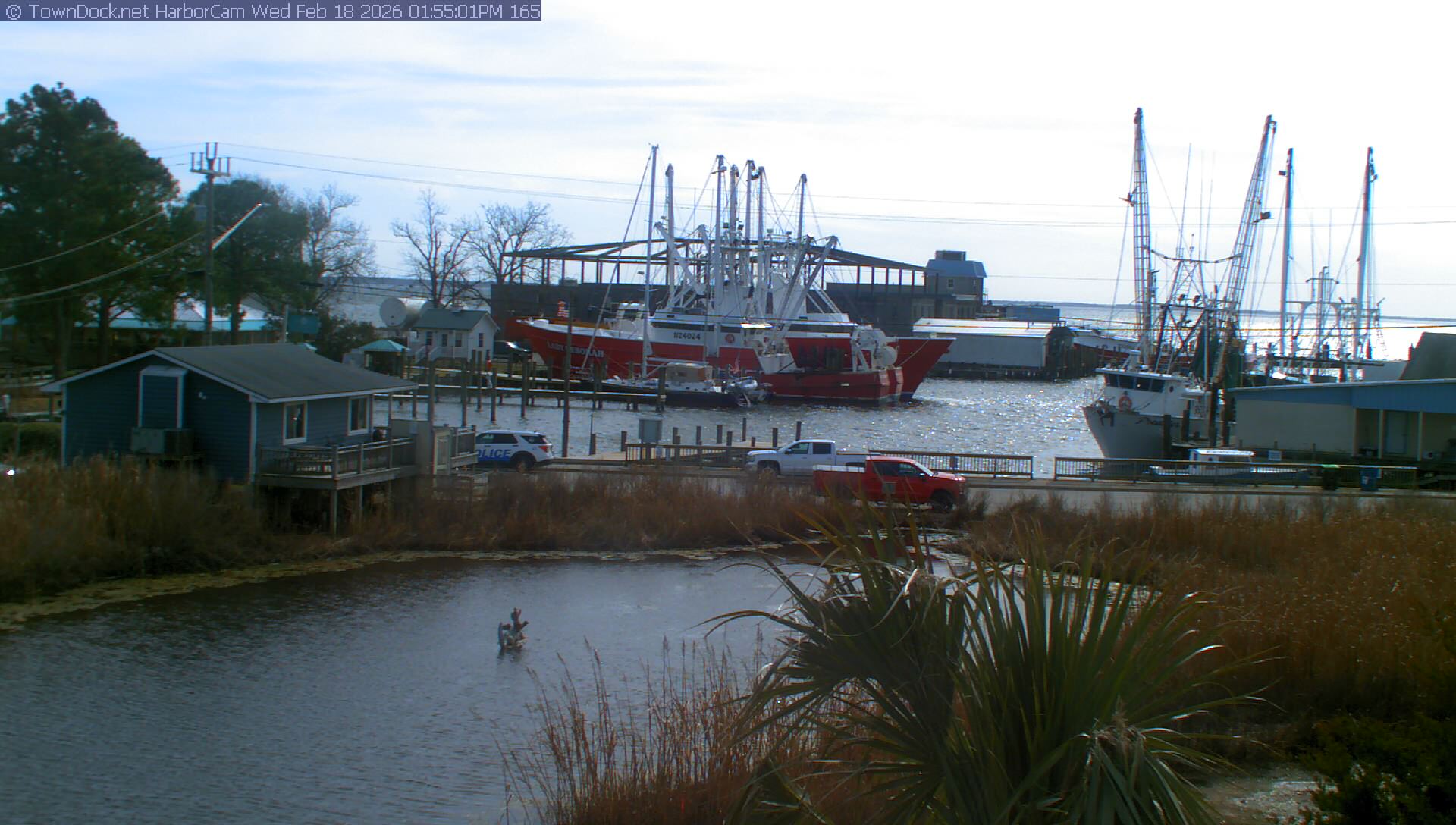 HarborCam takes a new picture of the Oriental harbor every five minutes from dawn til just before dusk. Click on the image to see a larger version. Once you see that larger version, you can click (see arrow at right) to go back in time and see recent photos. Harbor Cam currently takes photos from 6:30am to 5:30pm.