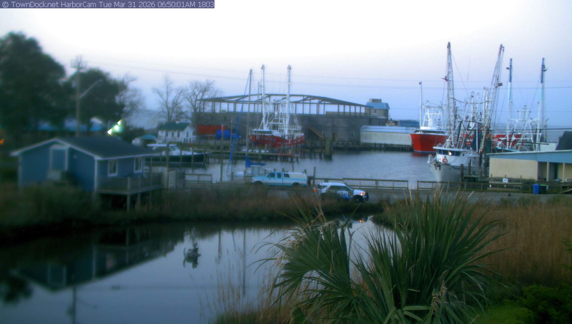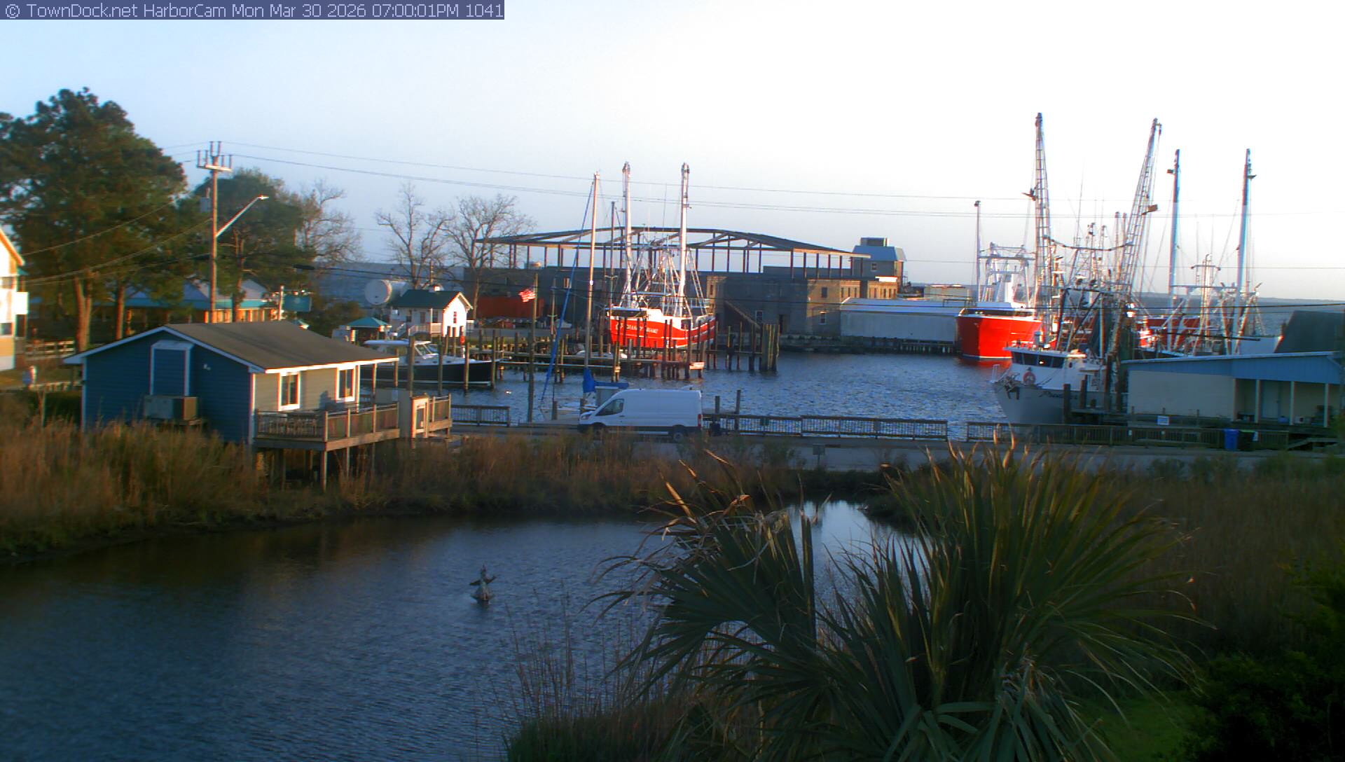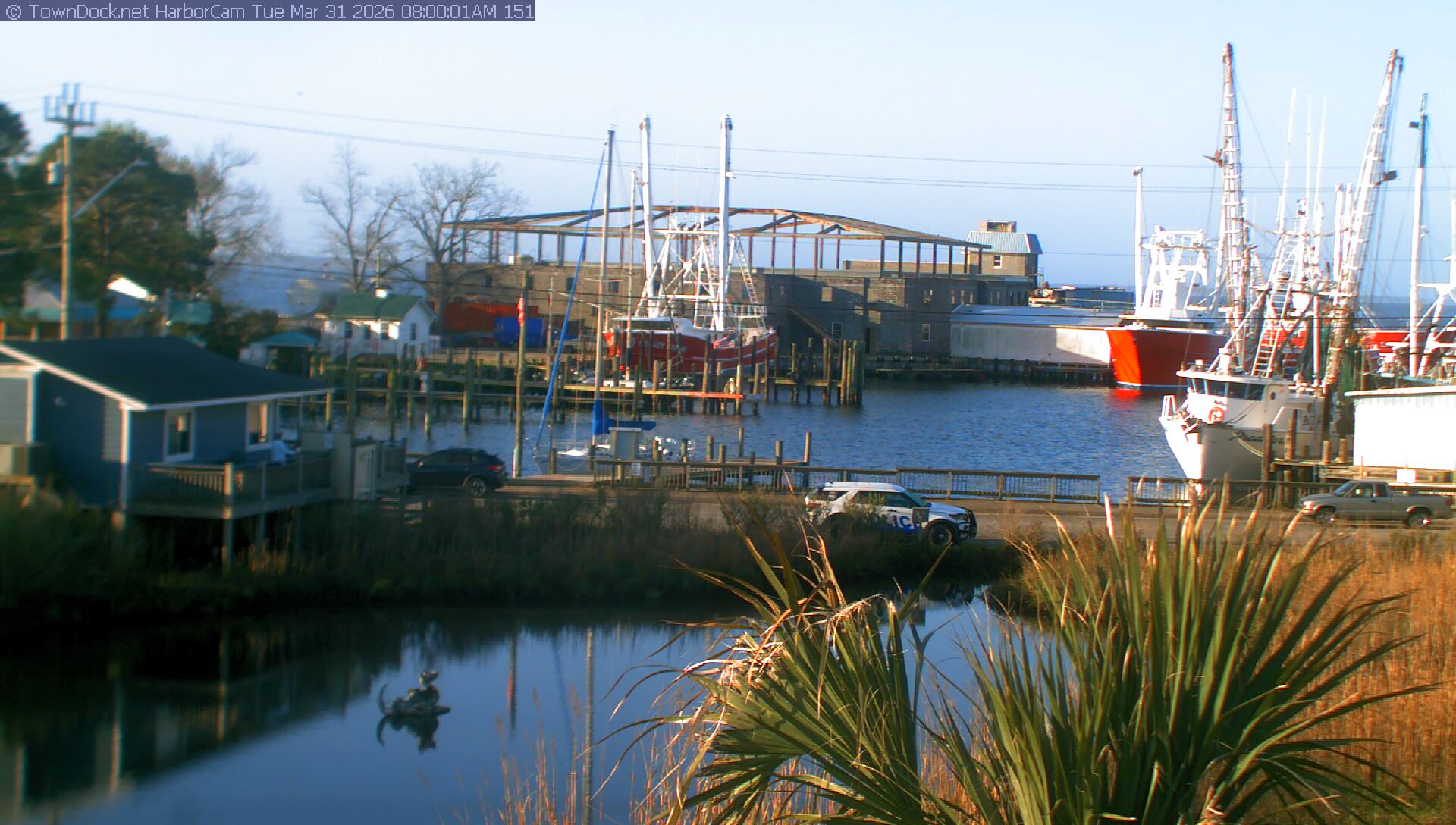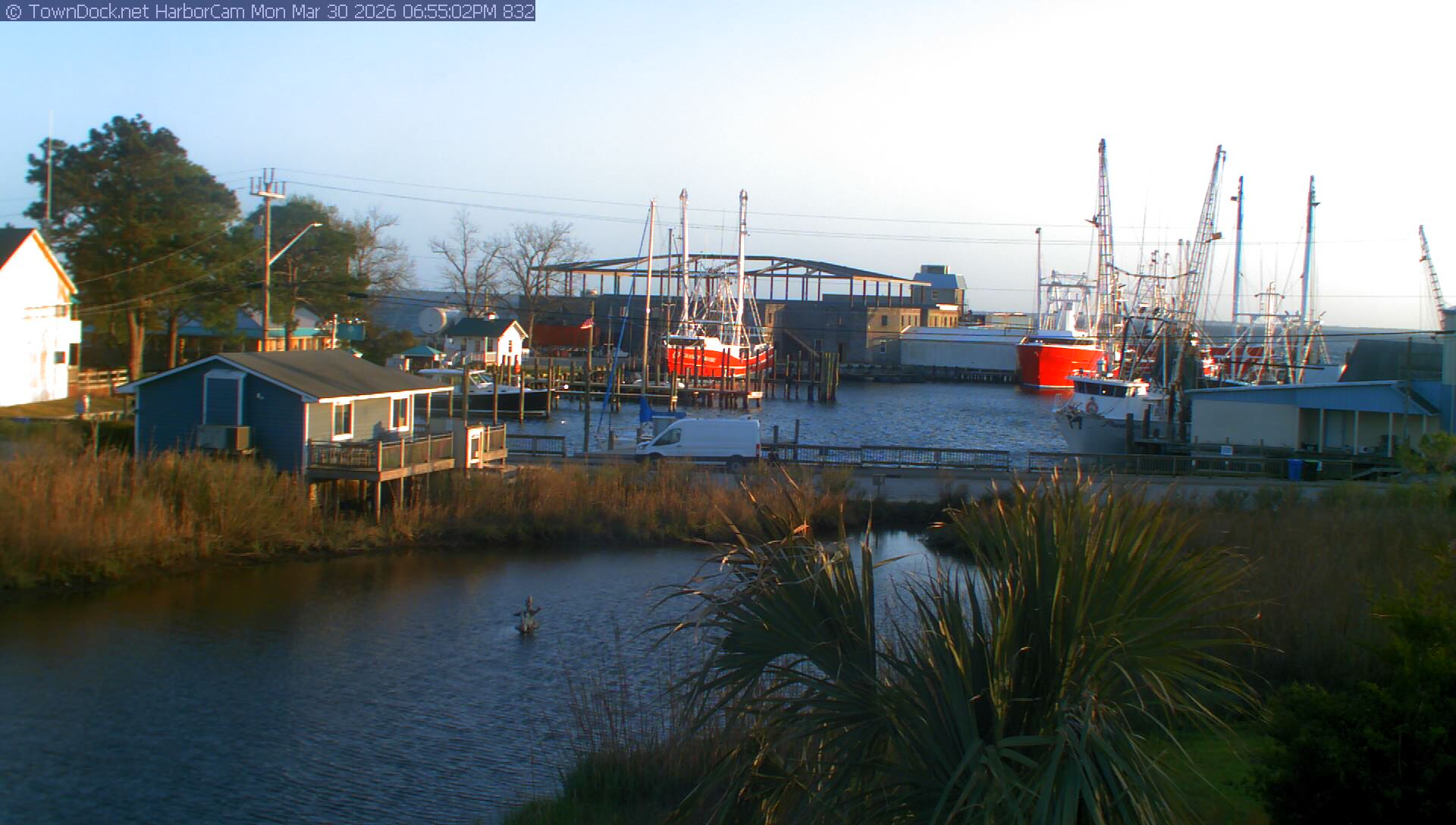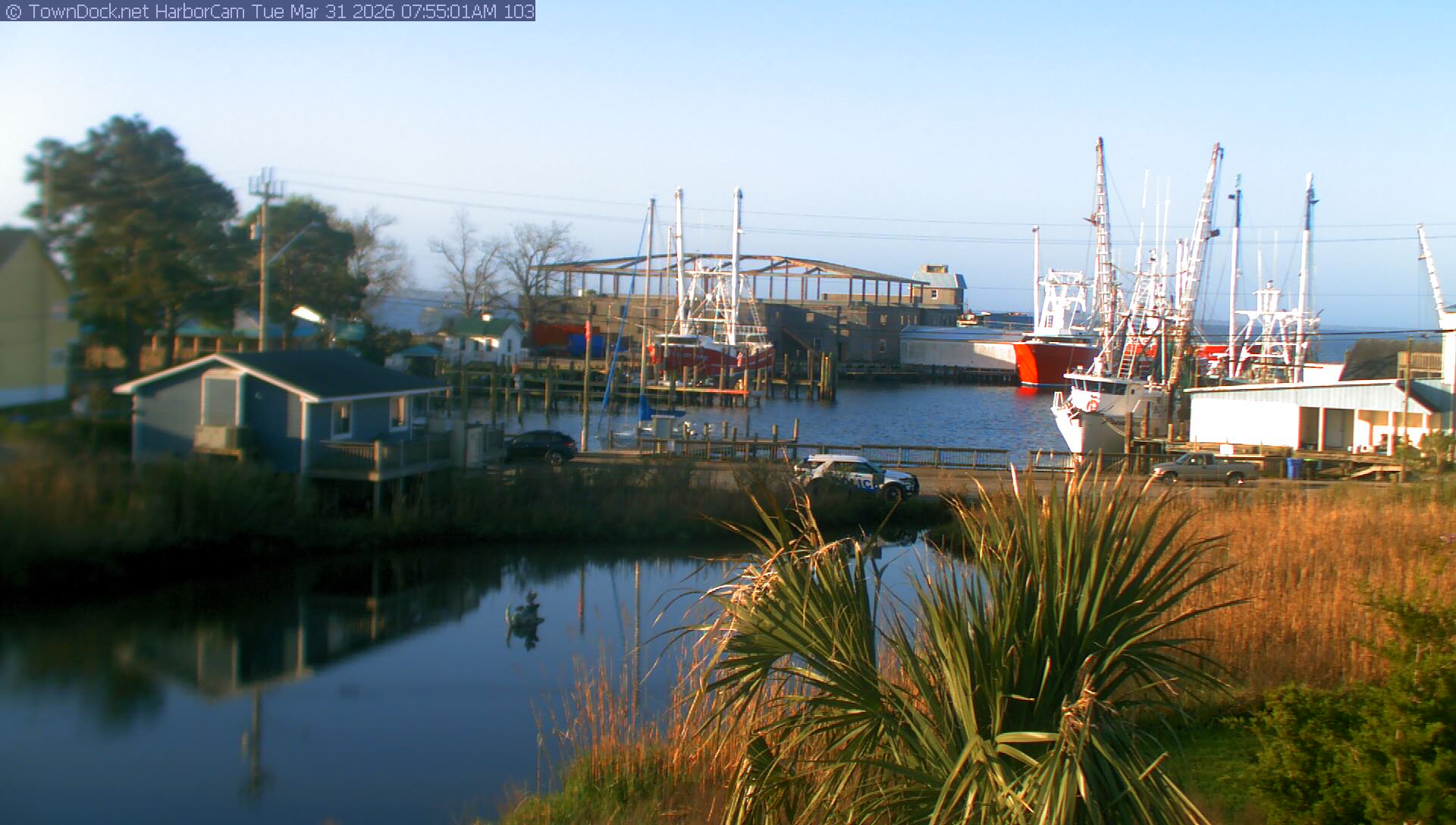 HarborCam takes a new picture of the Oriental harbor every five minutes from dawn til just before dusk. Click on the image to see a larger version. Once you see that larger version, you can click (see arrow at right) to go back in time and see recent photos. Harbor Cam currently takes photos from 7:00am to 7:00pm.