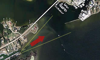 PecamCam looks at the channel entrance to Pecan Grove Marina. All boats entering or leaving the marina pass through the channel, along with the fishing boats from Endurance Seafood.