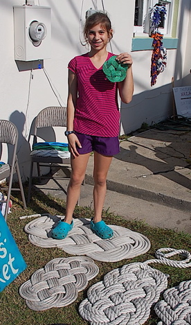 NIcole, of Nicole’s Turks Head Mats, and some of the work she’s done with recycled dock line. (She makes table mats from the newer line.)