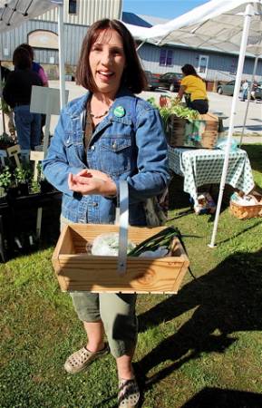 Faithful customer, Melissa Lavalle who has rarely missed a market in a year and a half. She carries her haul in a basket made by Bill Evans of W3 (Will’s Wood Works.)