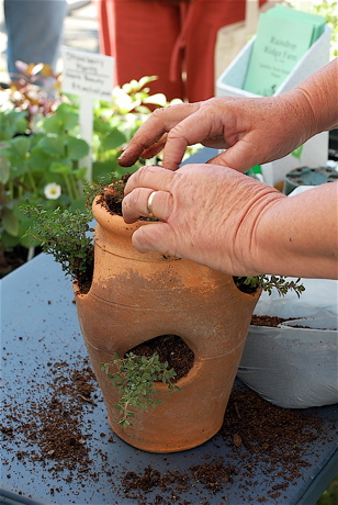 Dorita Boyd of Raindrop Ridge Herb Farms sold herbs at the April 4, 2009 market and showed how to successfully grown thyme in a strawberry planter.