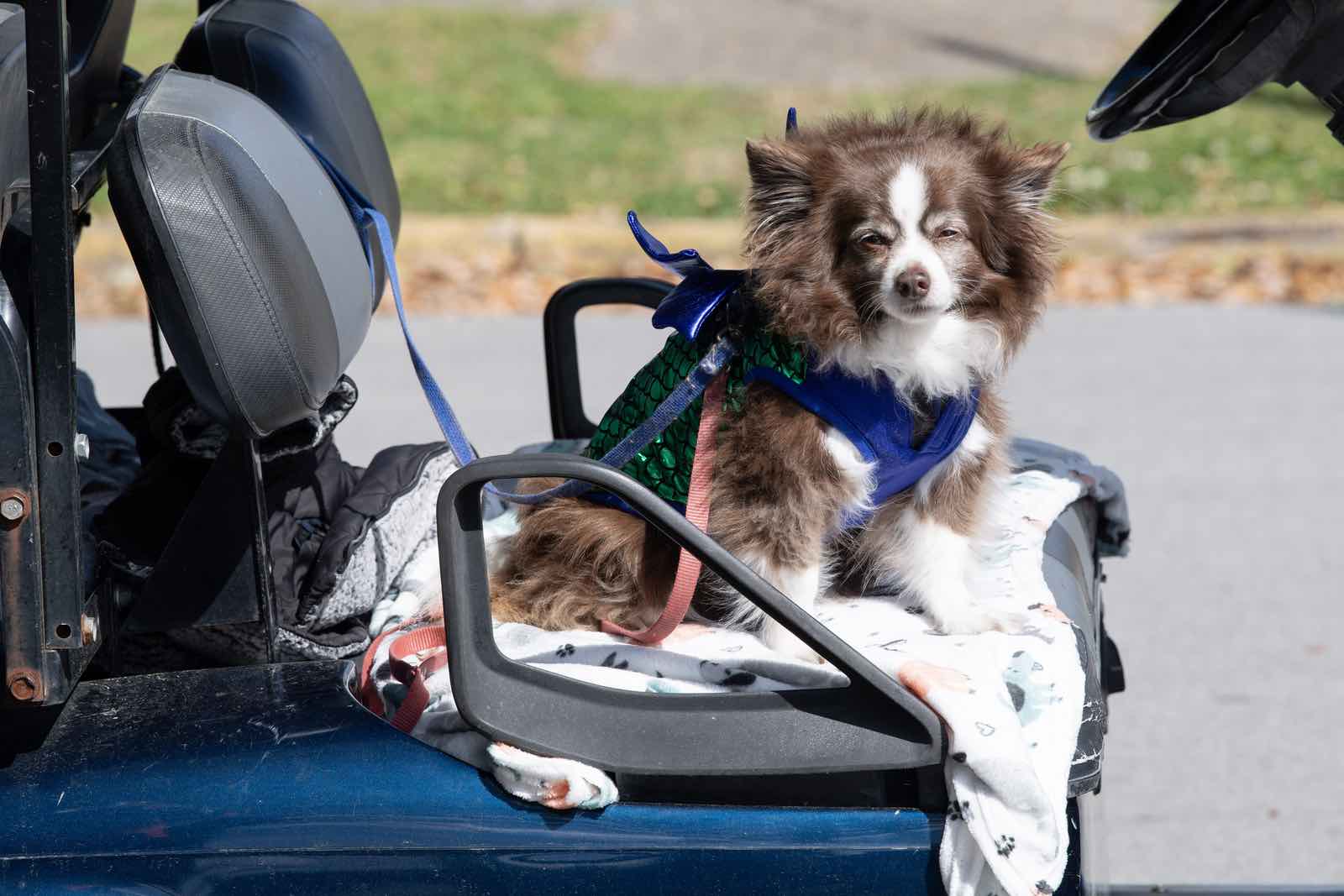 Bogey takes in the crowd from his perch on a golf cart. (Joe Clark photo)Proceeds benefit PAWS in their mission of “helping the helpless” animals of Pamlico County.