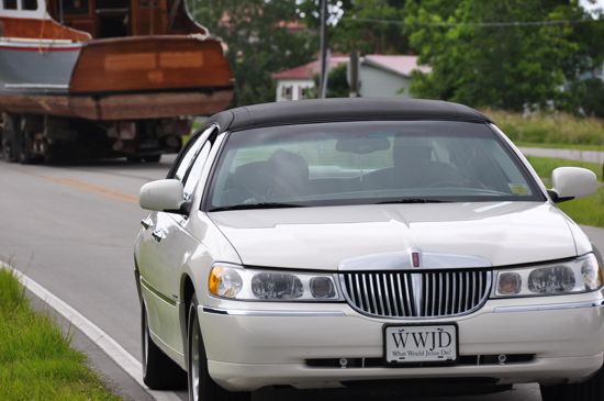 There was a rare traffic jam just outside Oriental Wednesday afternoon. A 70-year old wooden boat on a trailer got stuck coming out of a driveway, and along with the truck cab pulling it, blocked both lanes of Oriental Road just on the other side of the bridge.