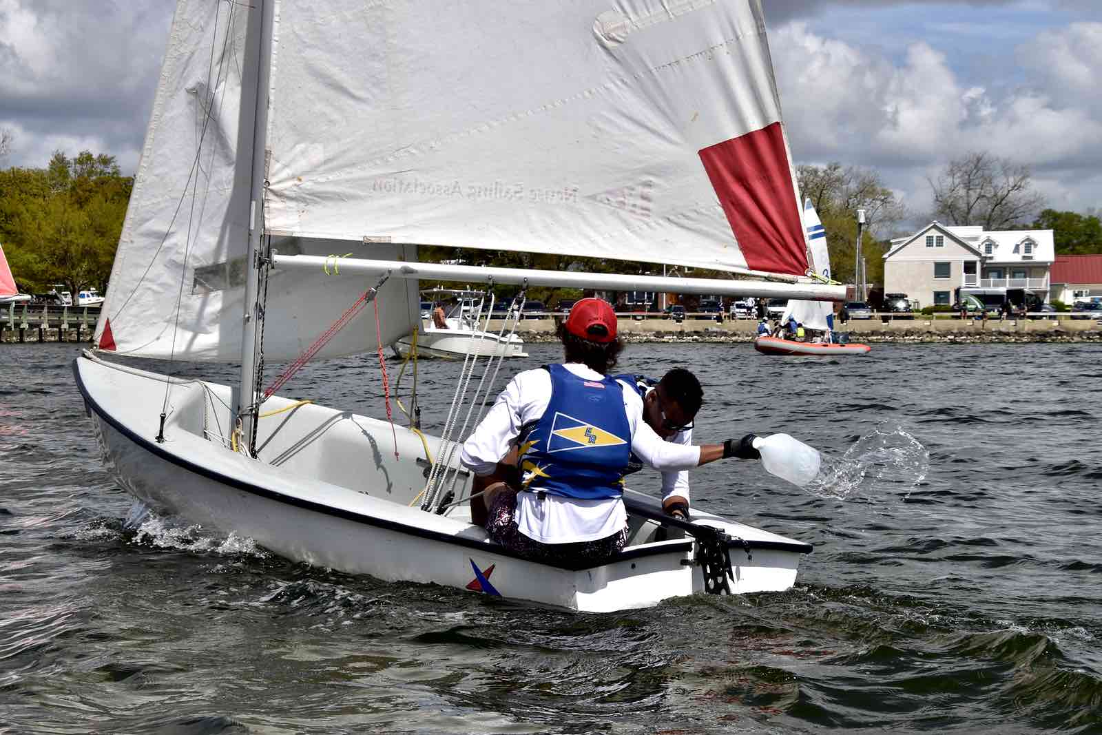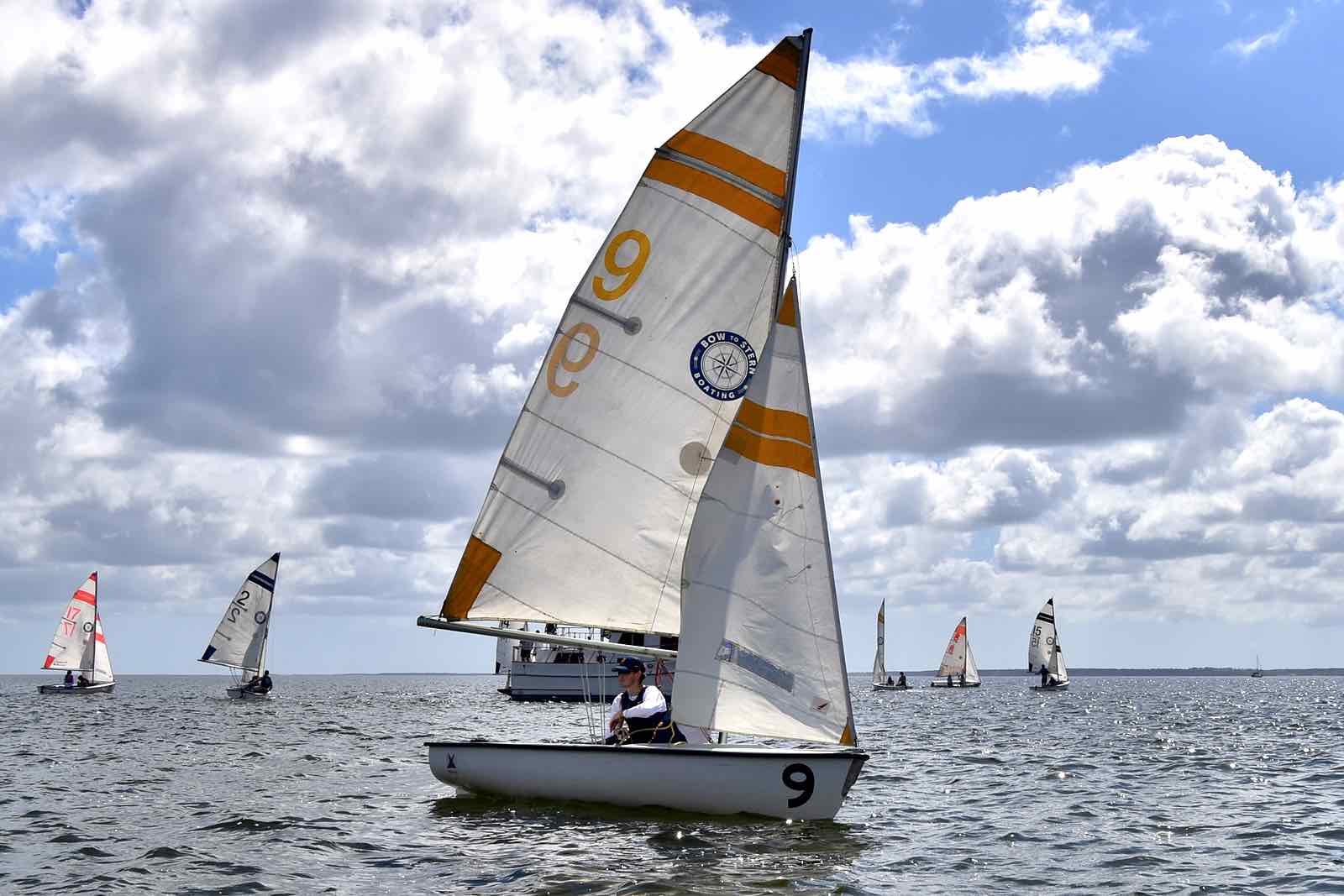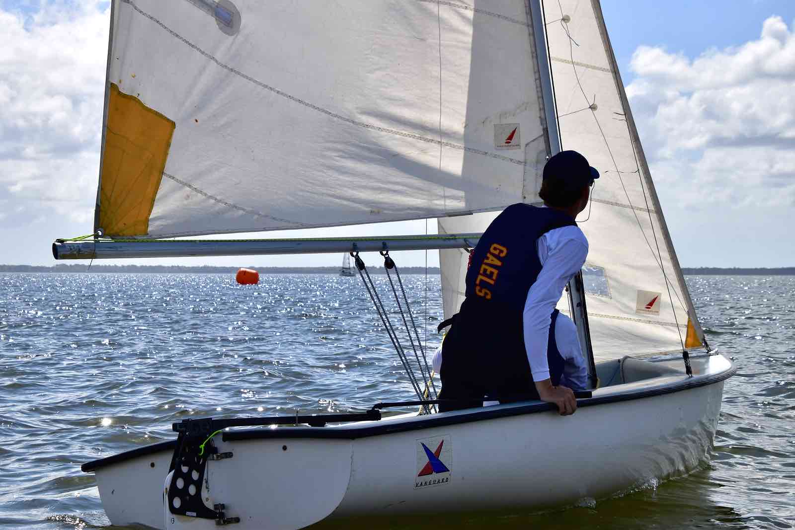 Canadian crew The Queen’s Gaels sails away from the mark. They took second place overall.It was an opportunity for sailors to show off their skills, from sailing in light winds on a roomy river course to competing in a tight formation among white caps in the narrow creek.