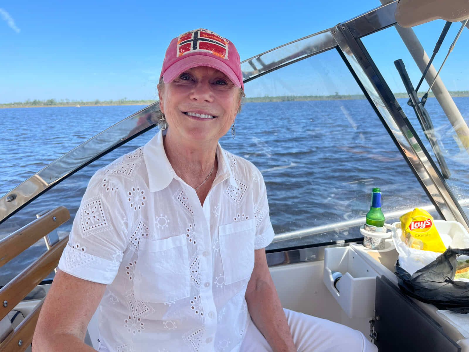 Cathy, onboard Tango. (Drew Peretsky Photo)Most recently Cathy was a volunteer at HeartWorks in Bayboro. Karen Prince, Executive Director at HeartWorks said, “Always a bright, smiling presence, Cathy inspired confidence in her HeartWorks students by giving them hope, creative literacy learning opportunities and joyful positivity. Typical of her inspirational teaching methods, her latest project involved co-writing a book with a struggling young student.”