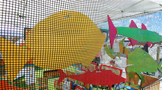 Across the harbor from where netted fish are brought in, a different netting and different fish.![]()