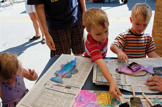 Fish fry, small fry. The “Pigments of Imagination” booth had dozens of children stopping by to press fish on to paper.