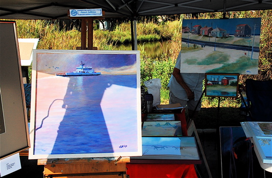 Despite the heat and the sudden spike in gas prices, the 2nd Annual Celebration of Fine Arts drew a steady crowd of visitors to the harbor area of Oriental Saturday. Marlene Miller, who with Judy Wayland organized the event, says the several dozen artists who were showing their work on the grounds of the Oriental Marina and one block of Hodges Street near the waterfront, were happy with the turnout and sales.