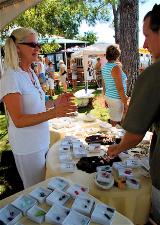Judy Wayland, one of the organizers of the art show, with her jewelry.